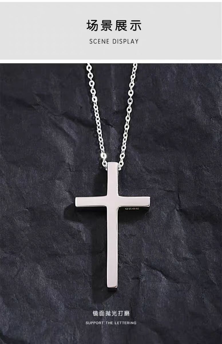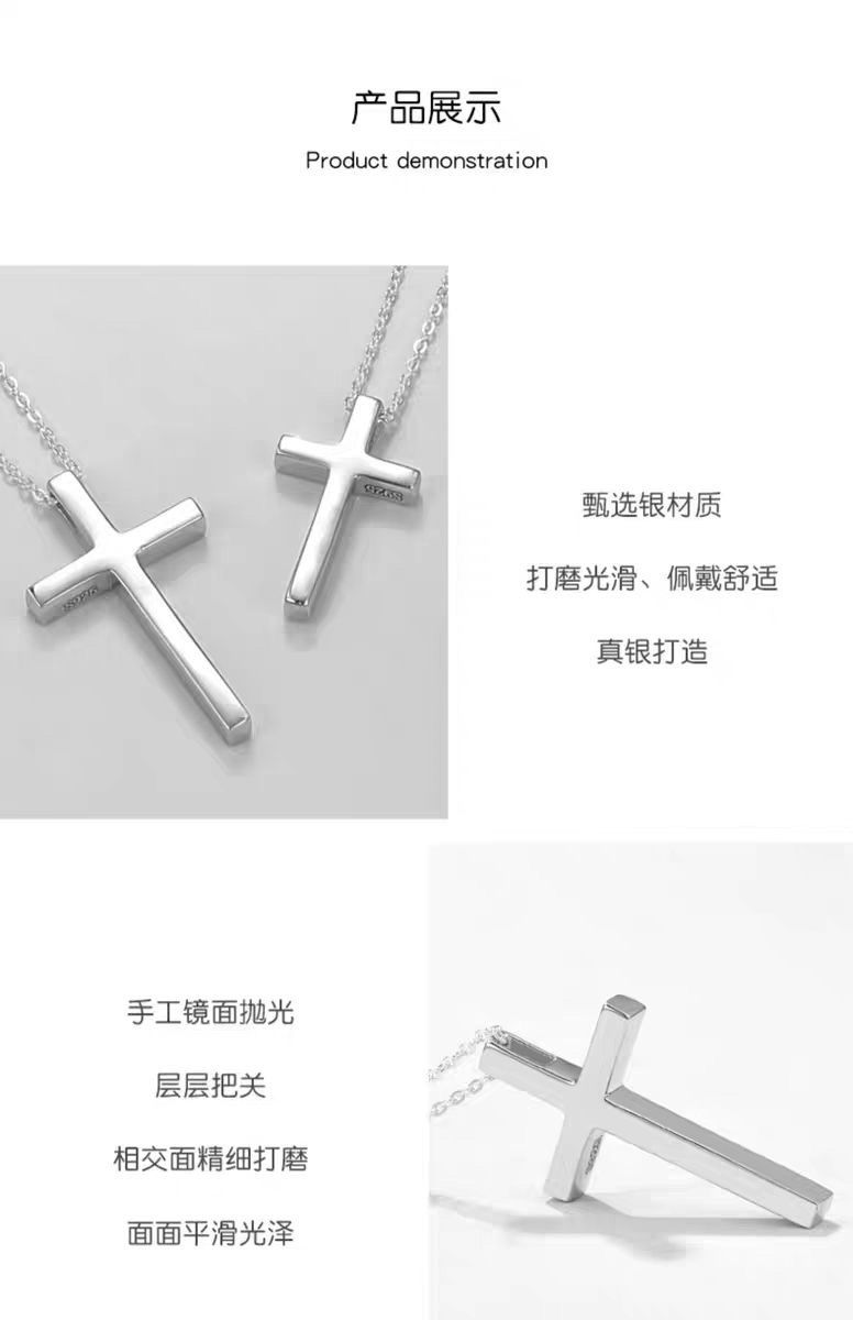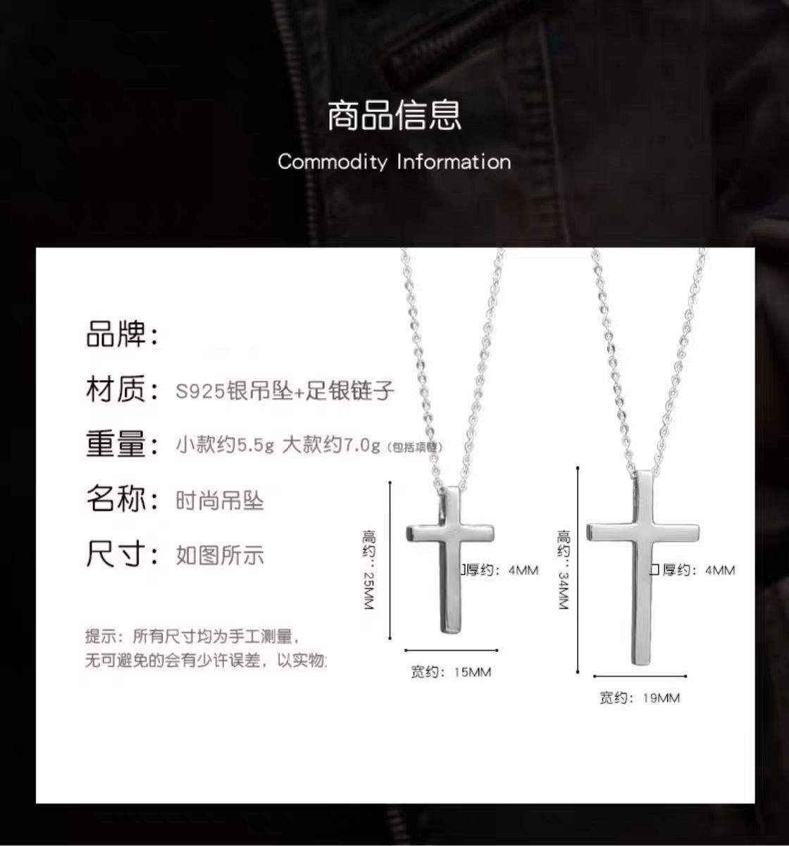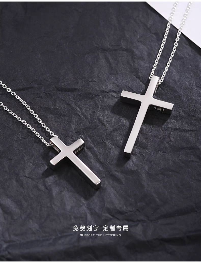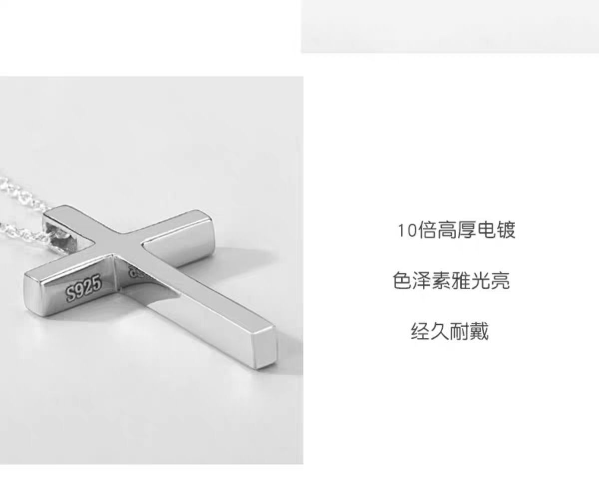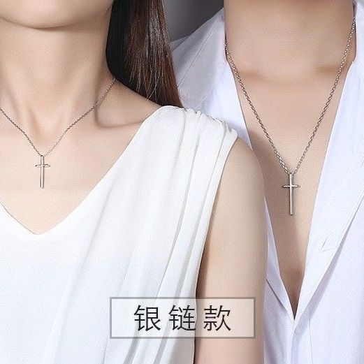 s925纯银十字架项链男女吊坠高级情侣项链个性时尚情侣项链送女友