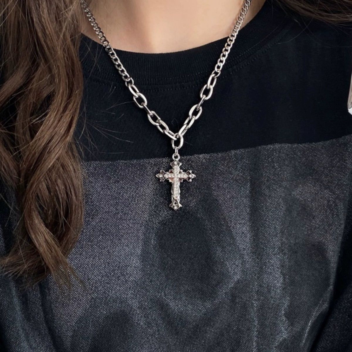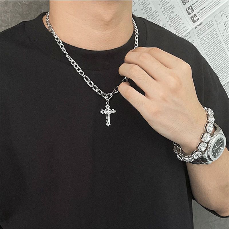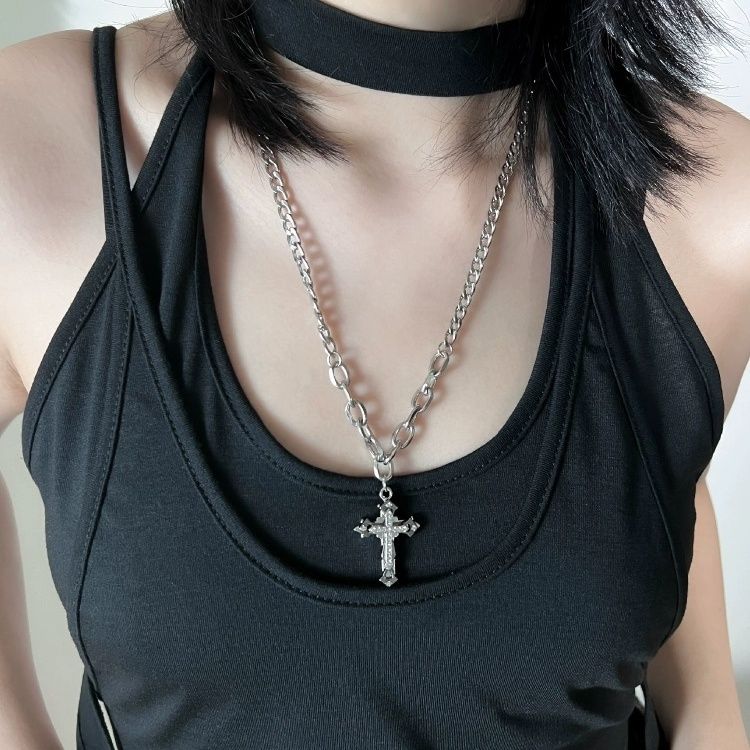 【不掉色】十字架钛钢项链男女潮小众高级设计爆款男士毛衣卫衣链