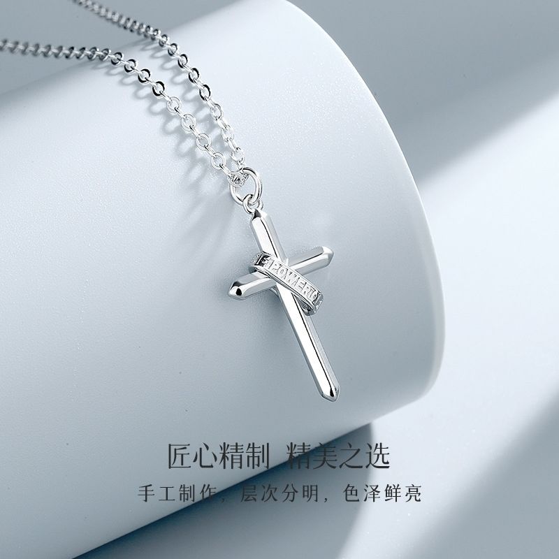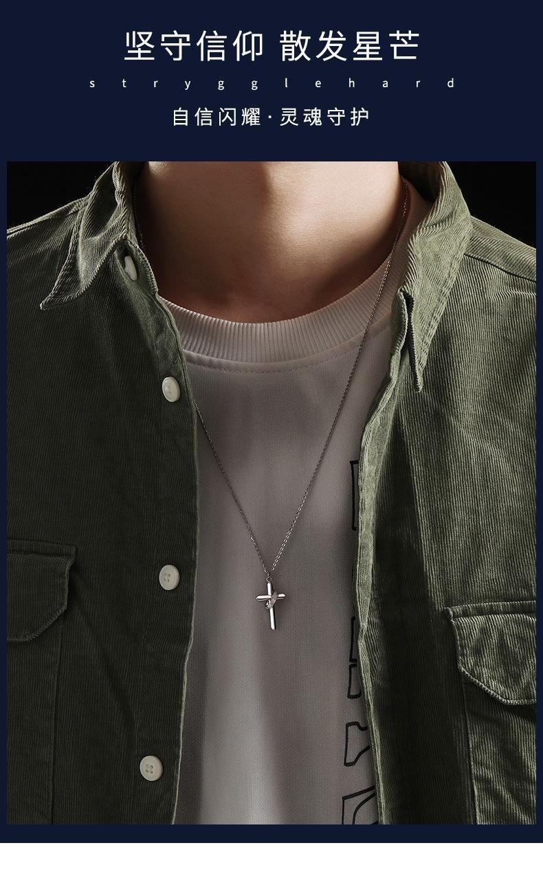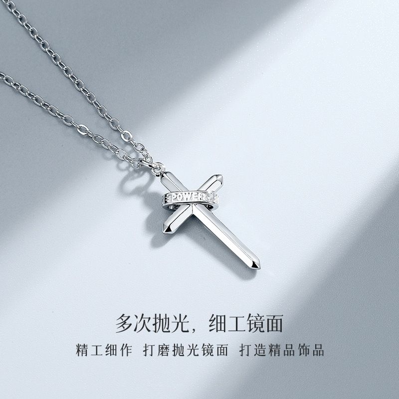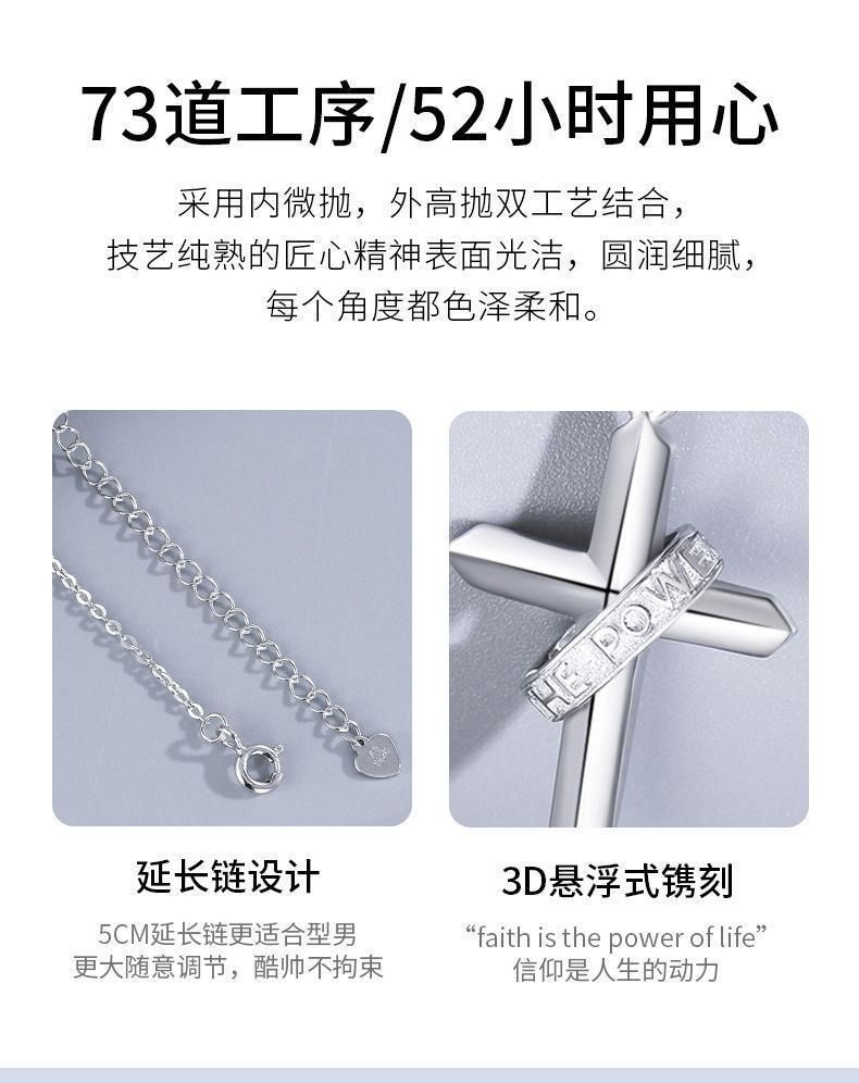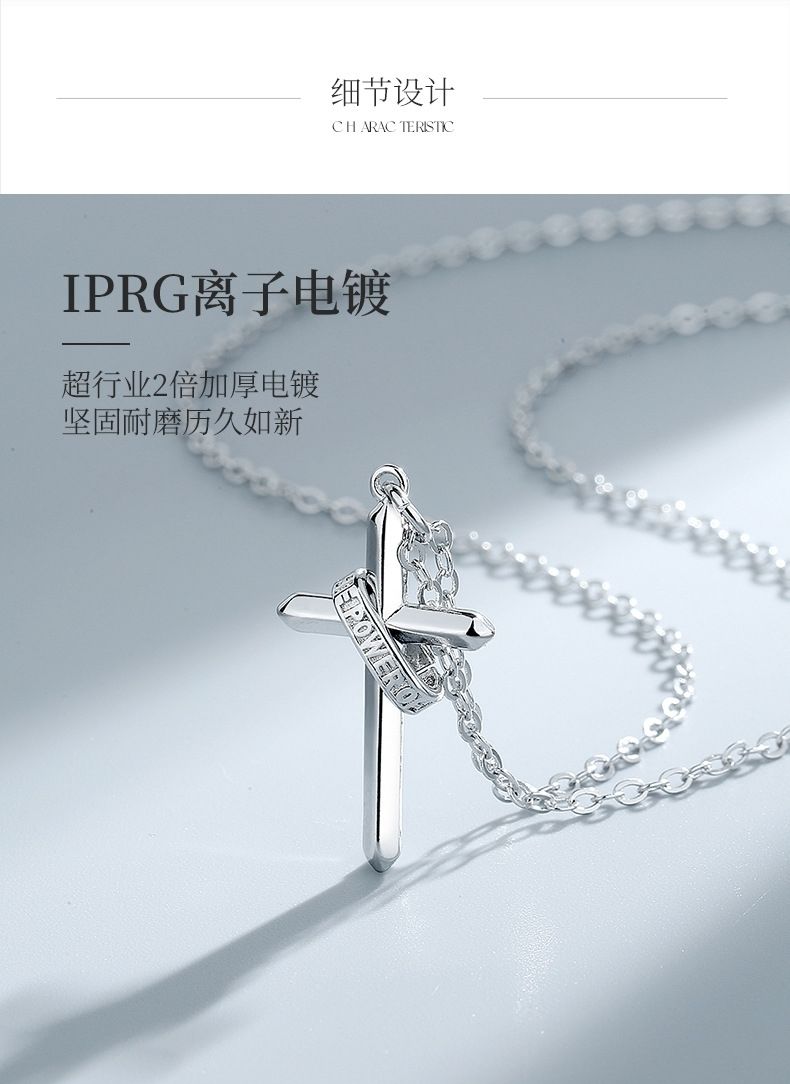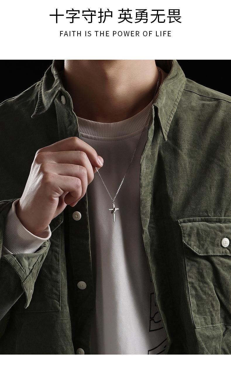 s925纯银色十字架项链不掉色钛钢男生潮版吊坠配送男朋友生日礼物