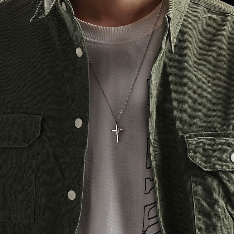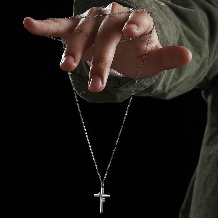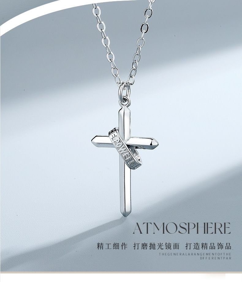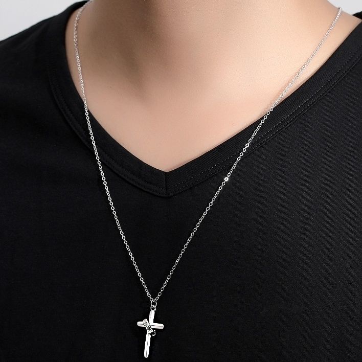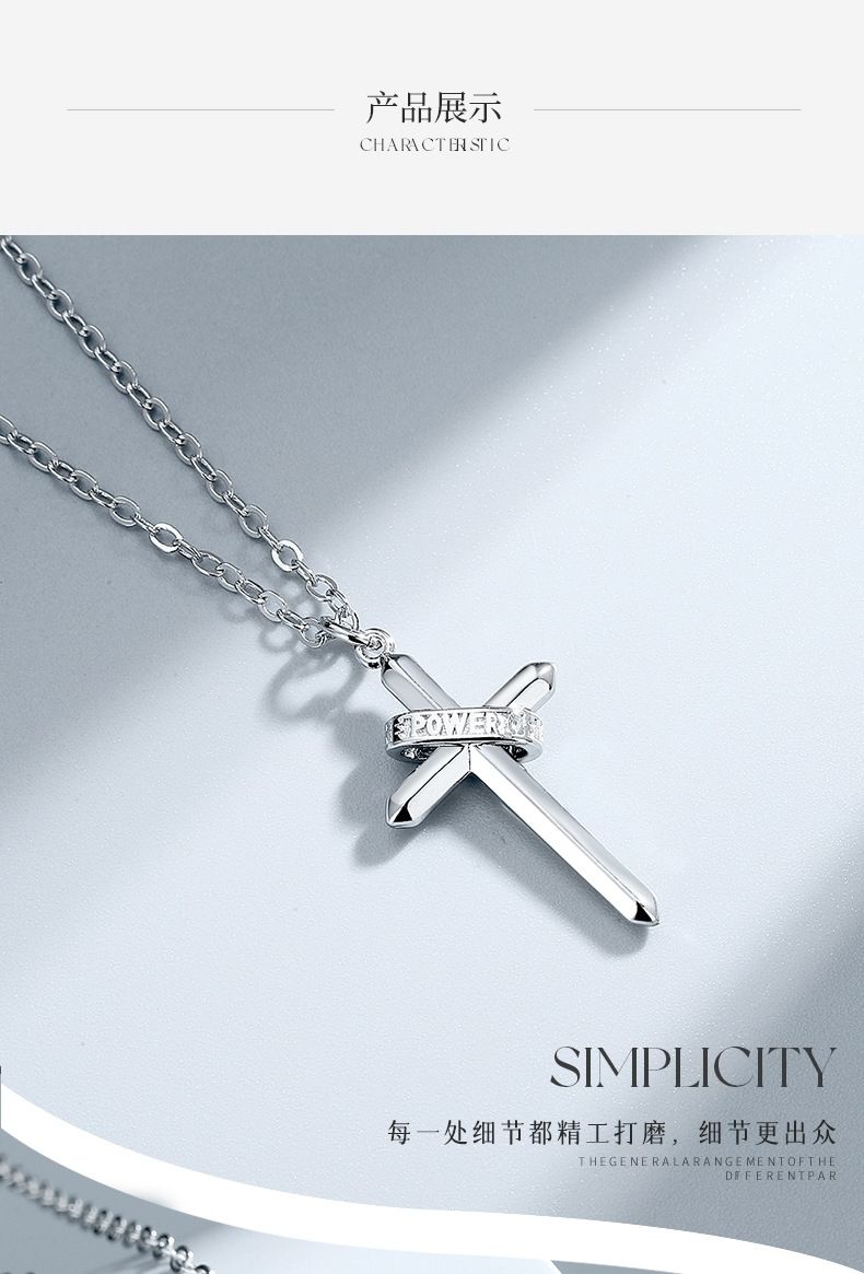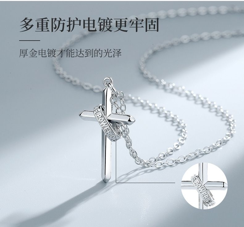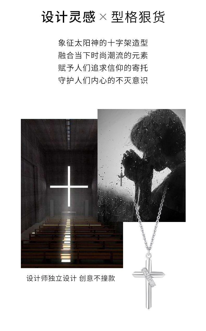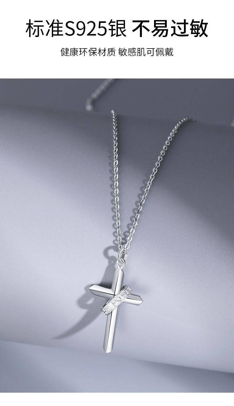 s925纯银色十字架项链不掉色钛钢男生潮版吊坠配送男朋友生日礼物