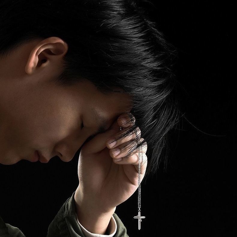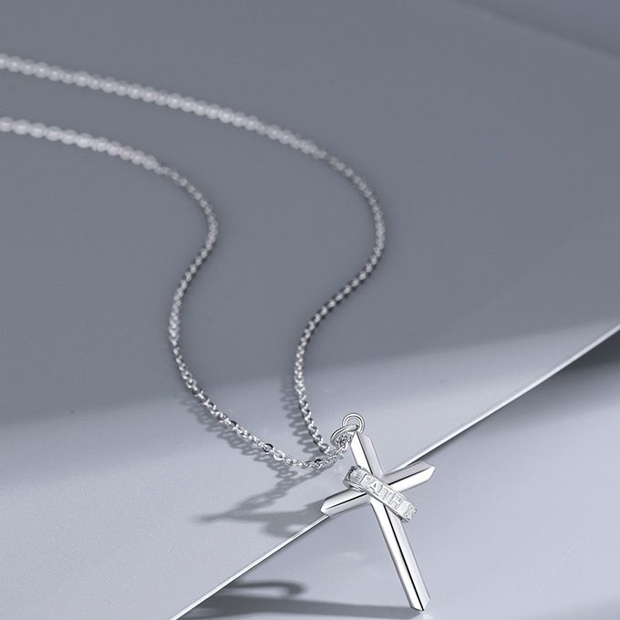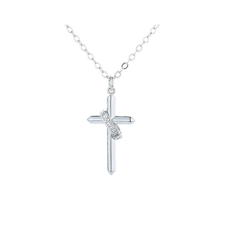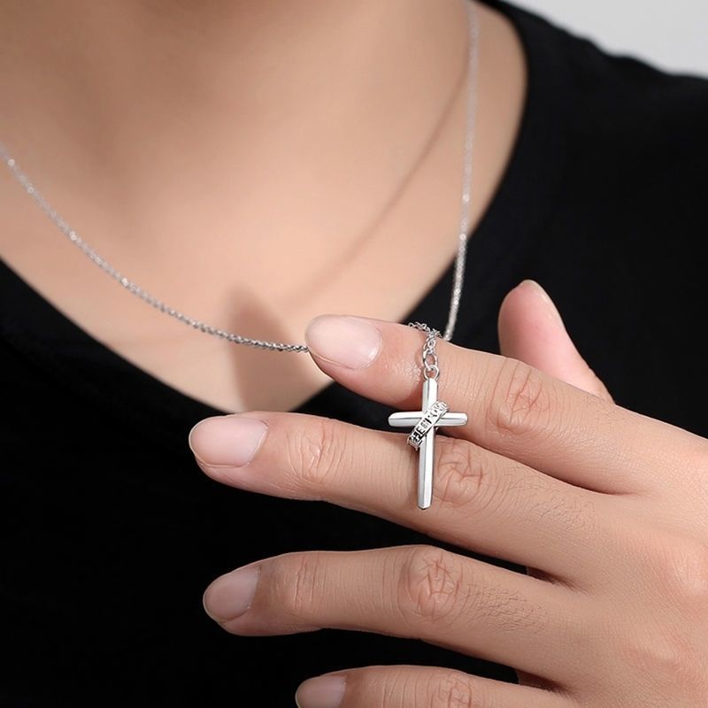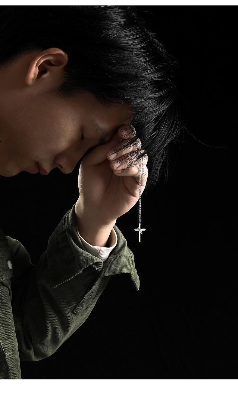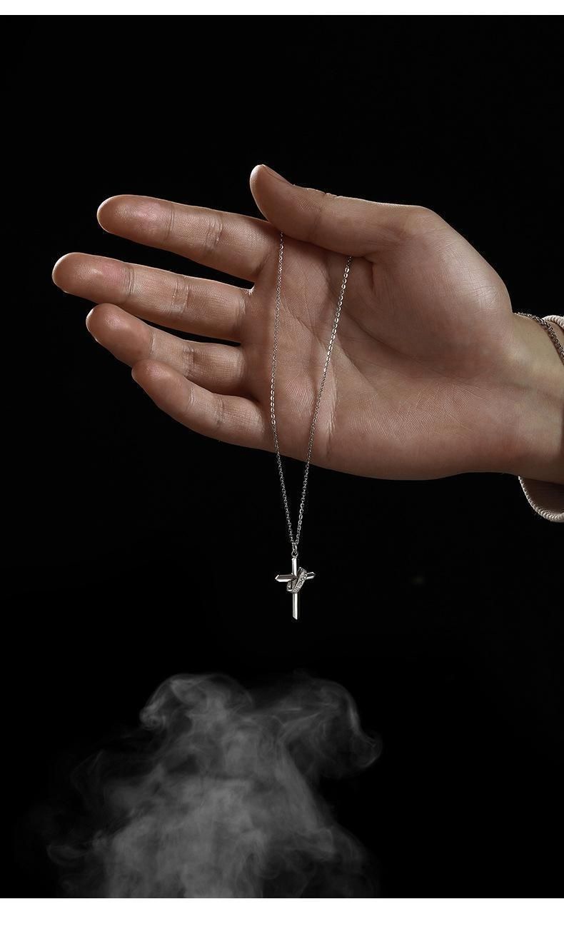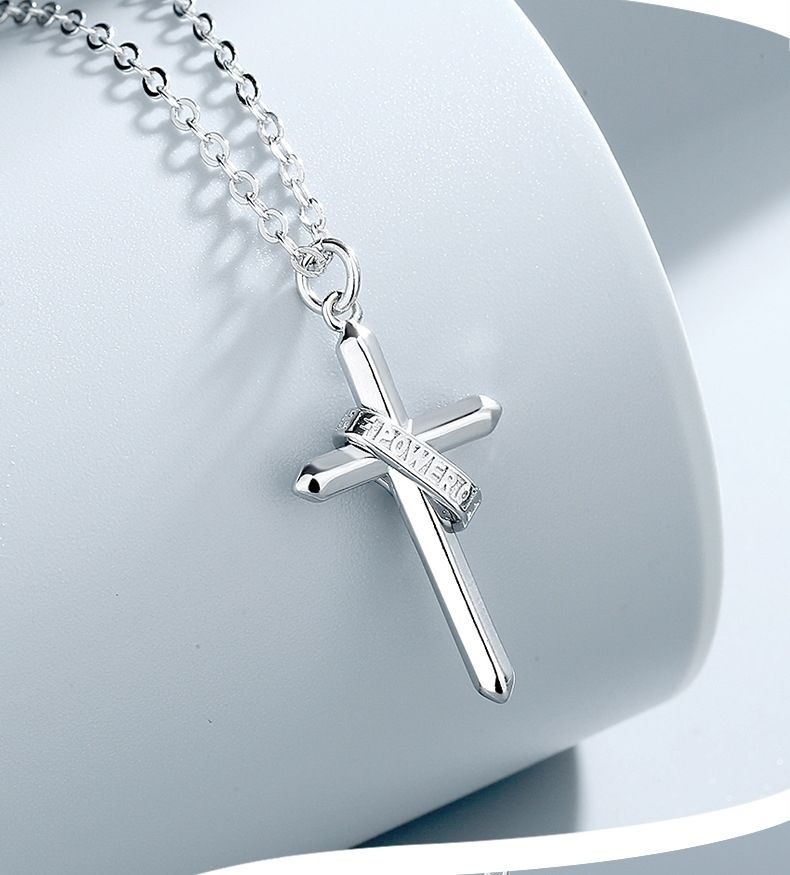 s925纯银色十字架项链不掉色钛钢男生潮版吊坠配送男朋友生日礼物