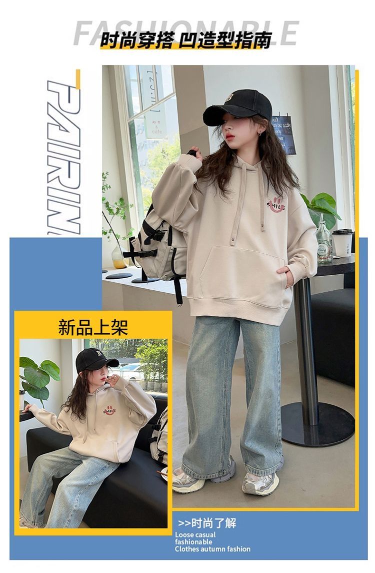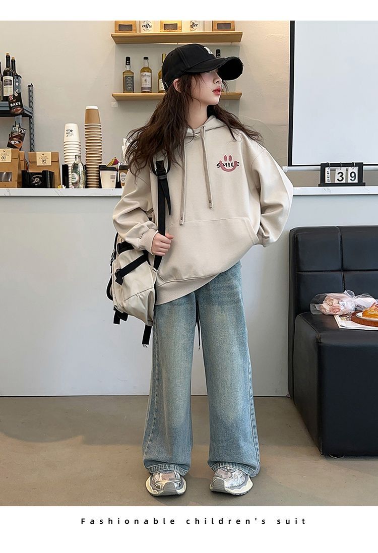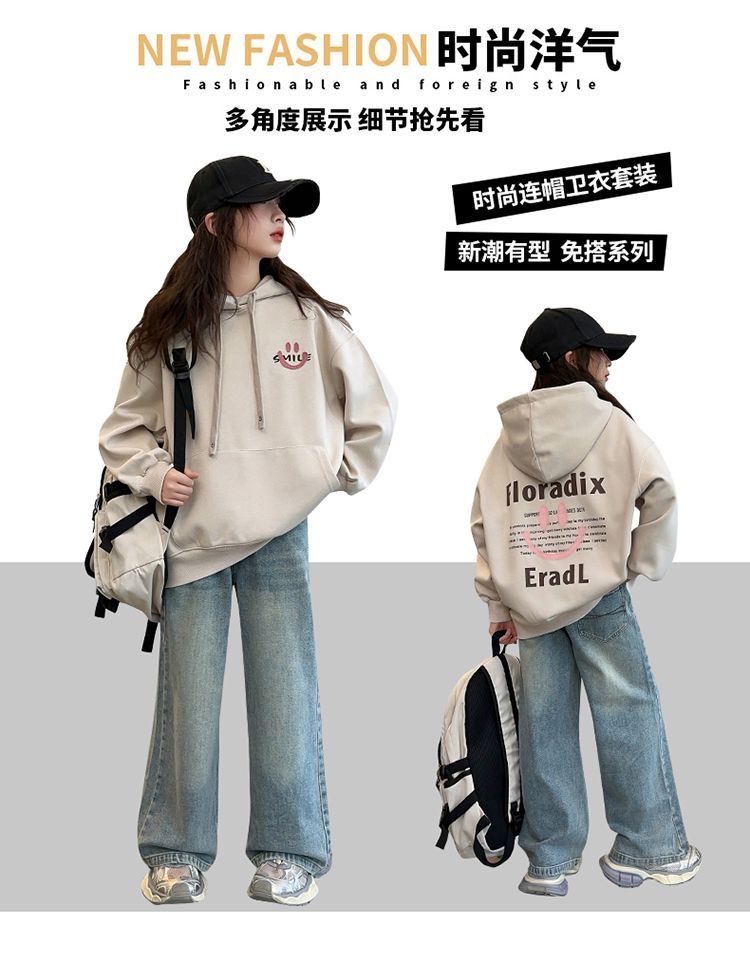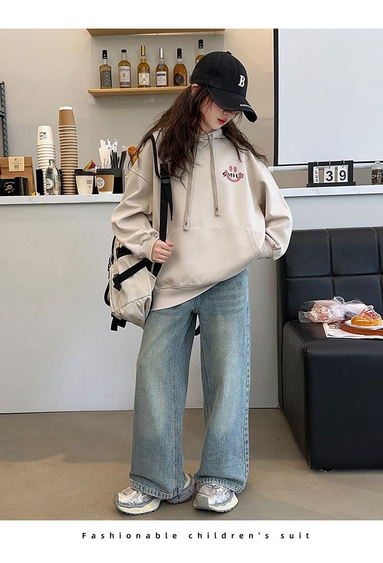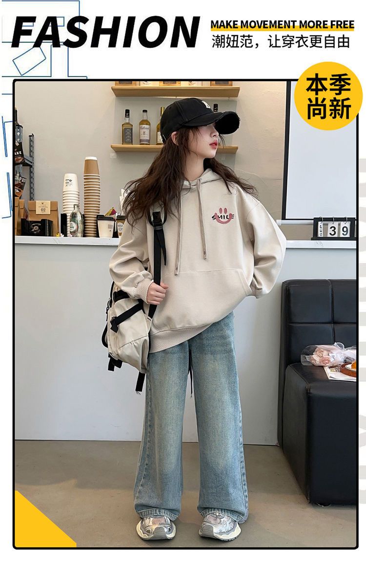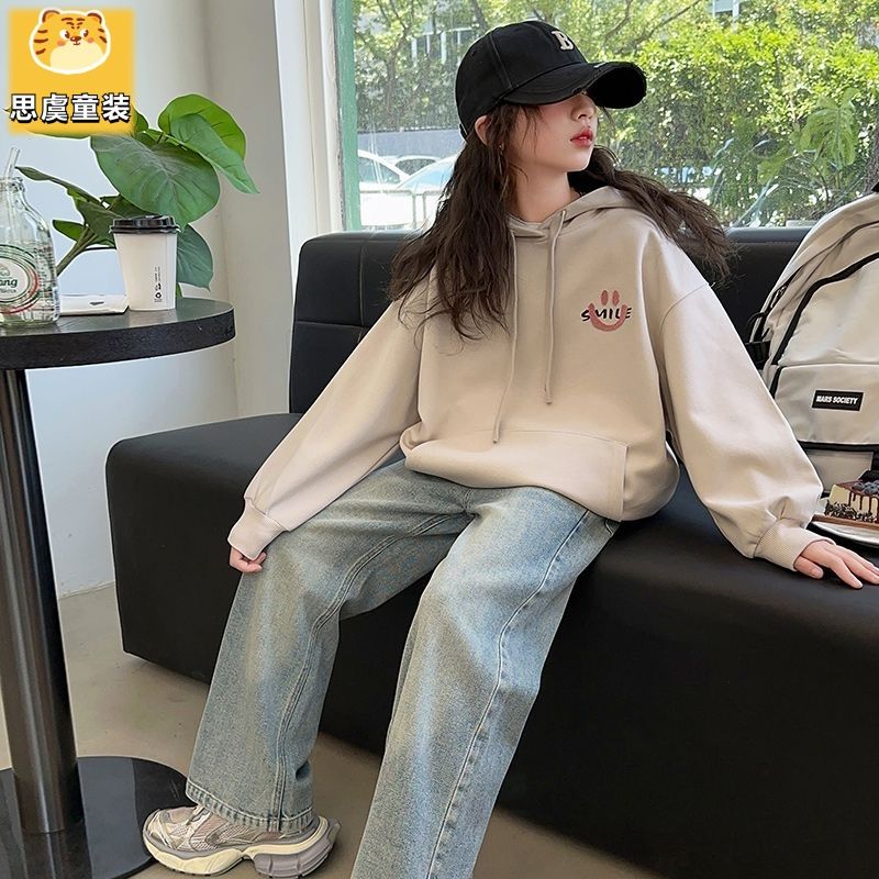 女童春秋卫衣套装秋冬洋气加绒2025中大童儿童牛仔阔腿裤两件套