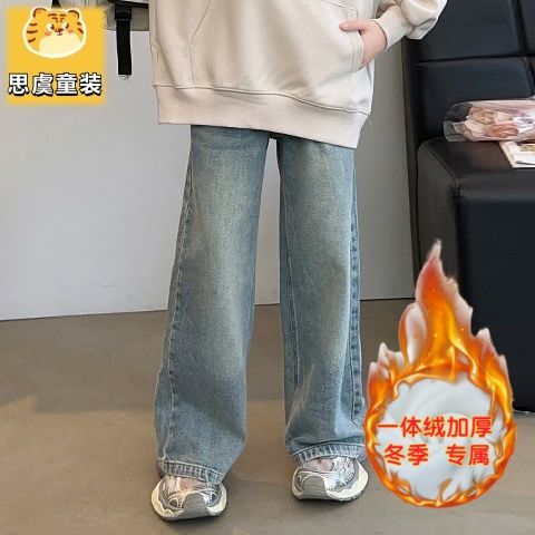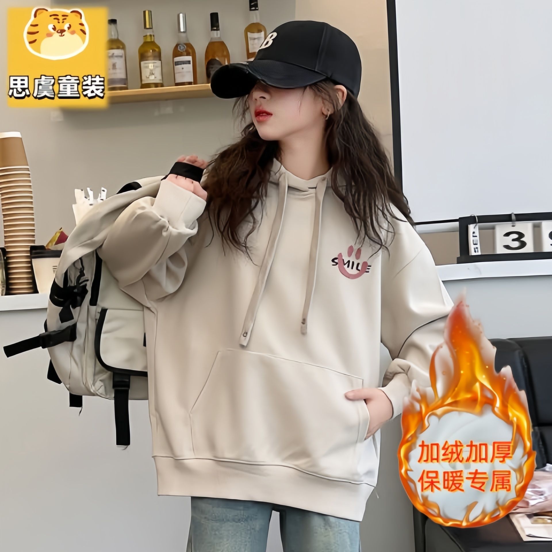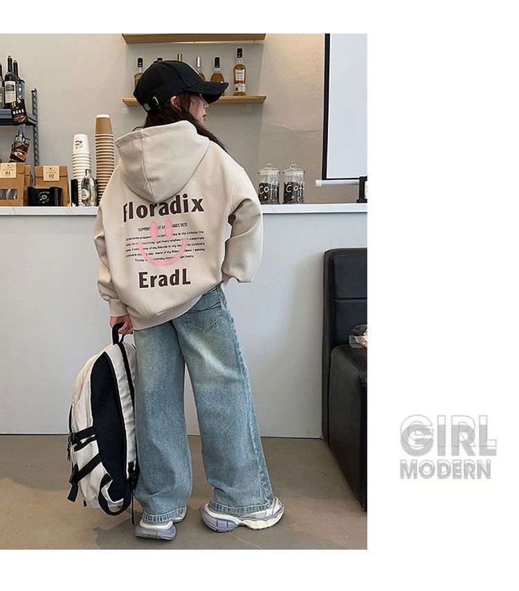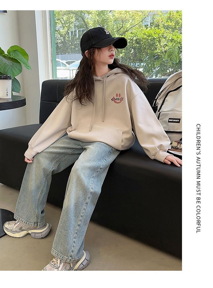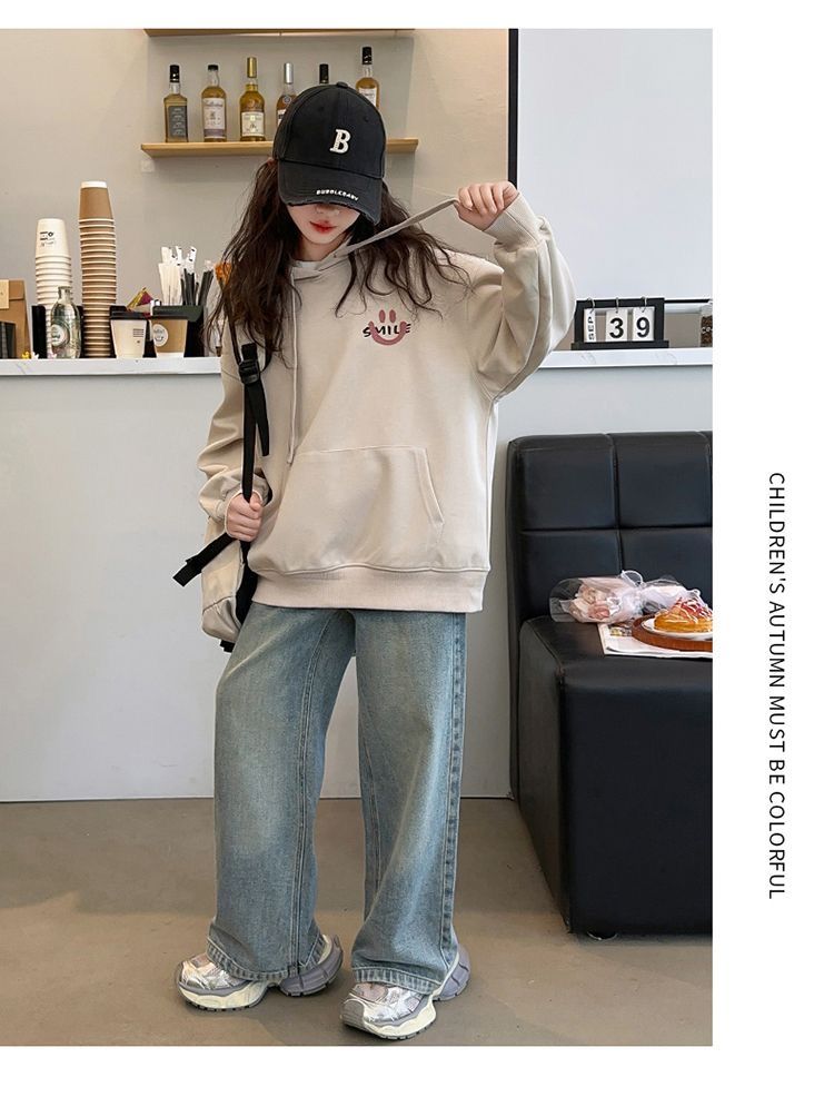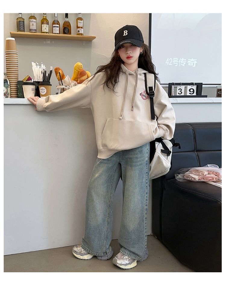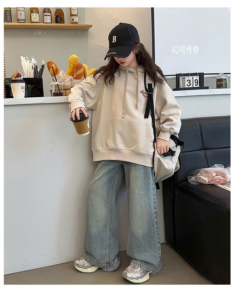 女童春秋卫衣套装秋冬洋气加绒2025中大童儿童牛仔阔腿裤两件套