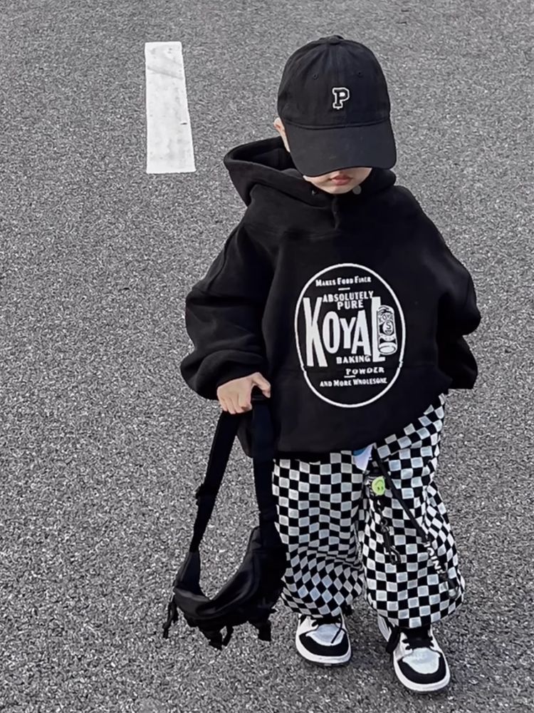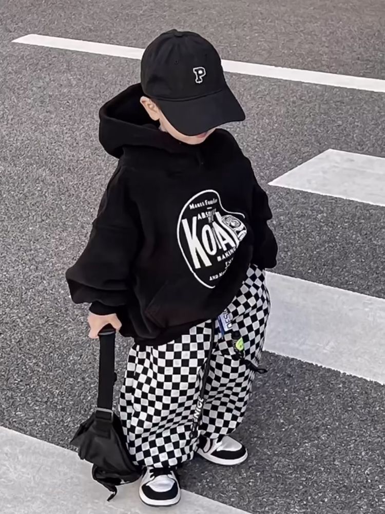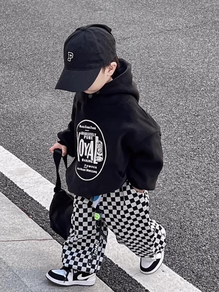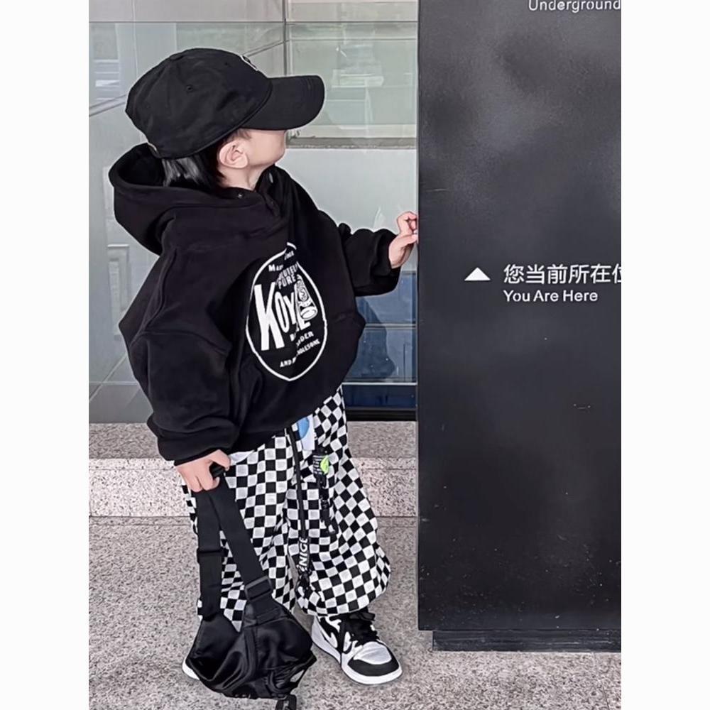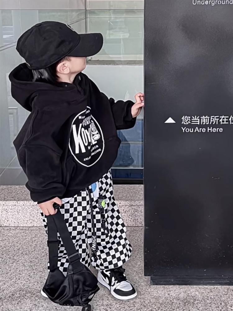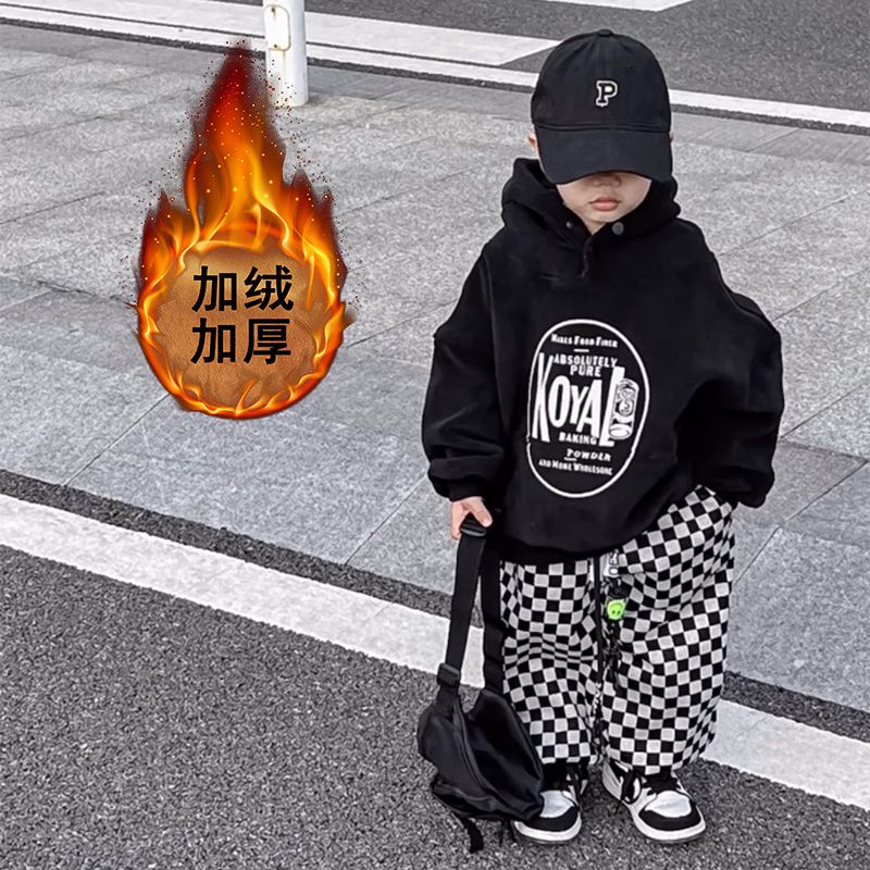 佳如萌男童冬季加绒连帽卫衣套装洋气撇帅宝宝潮牌保暖帅气两件套