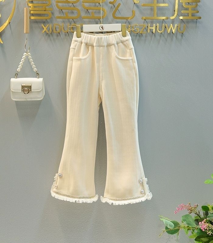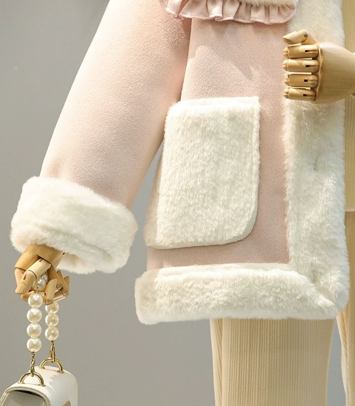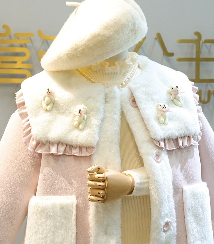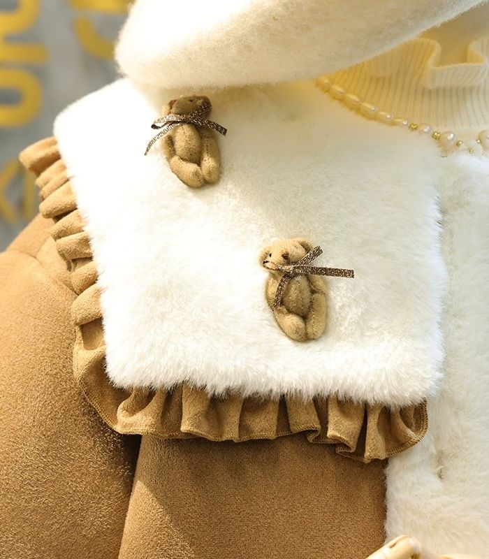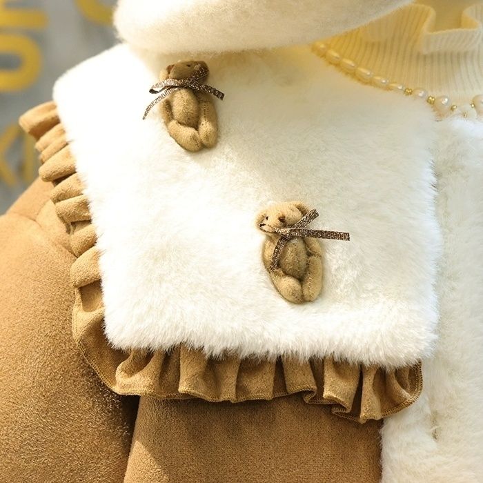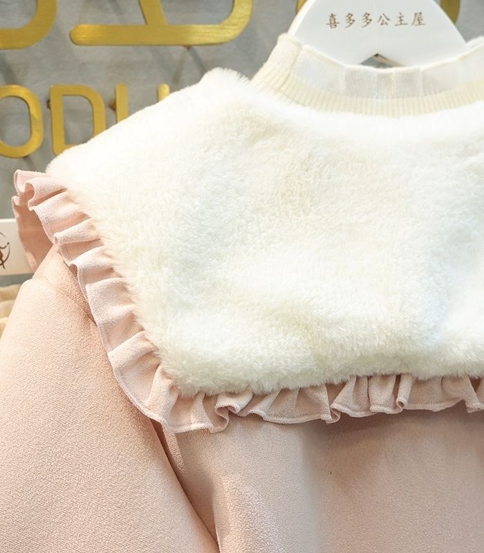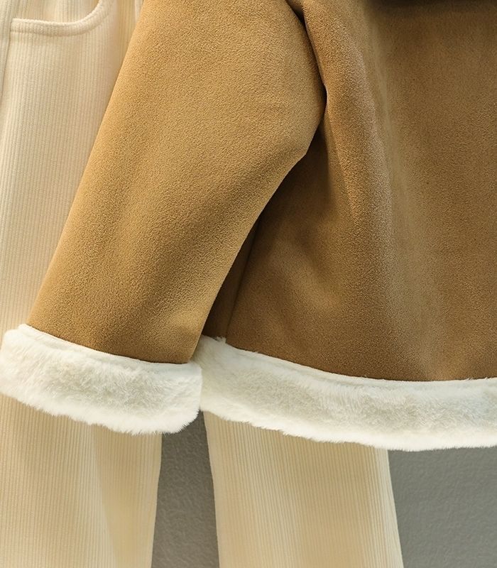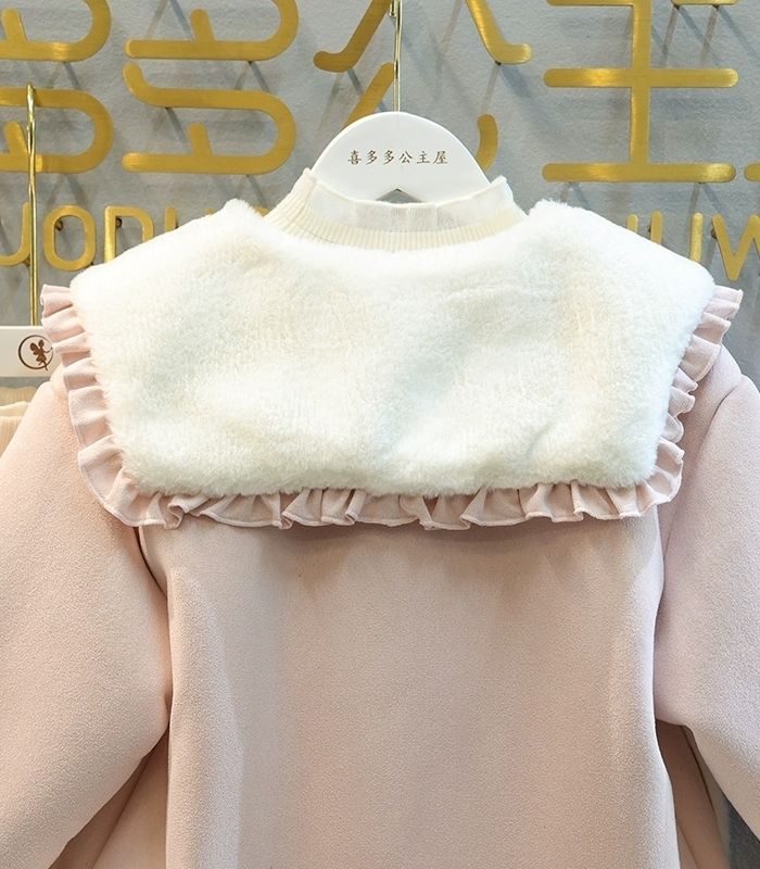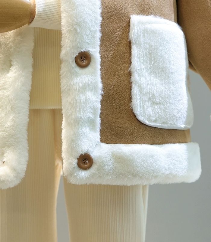 女童冬季套装2023新款韩版女宝宝皮毛一体加绒加厚外套裤子两件套