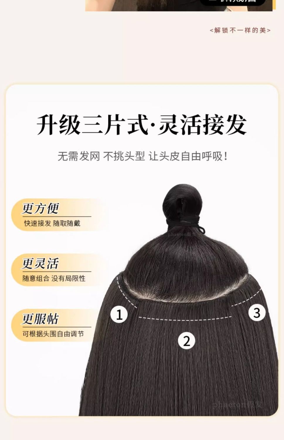 接发片女长发三片式隐形无痕仿真发增发量蓬松氛围感直发补发贴片