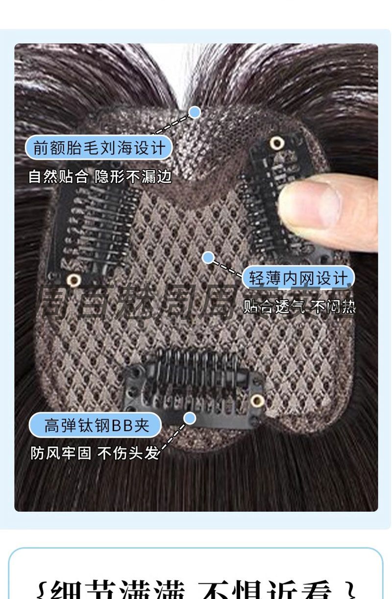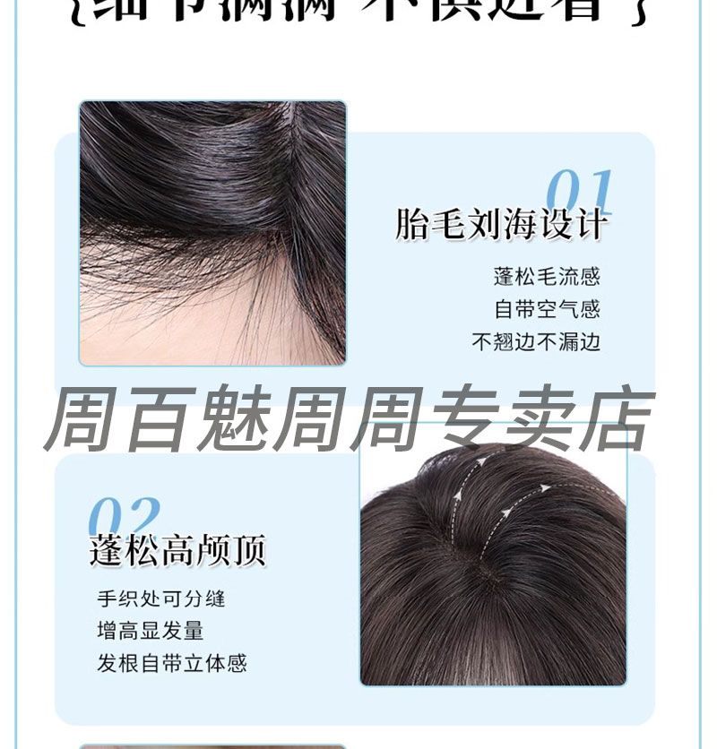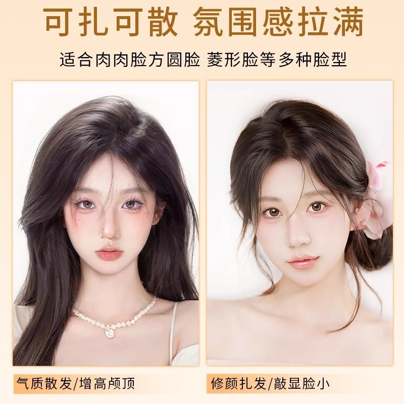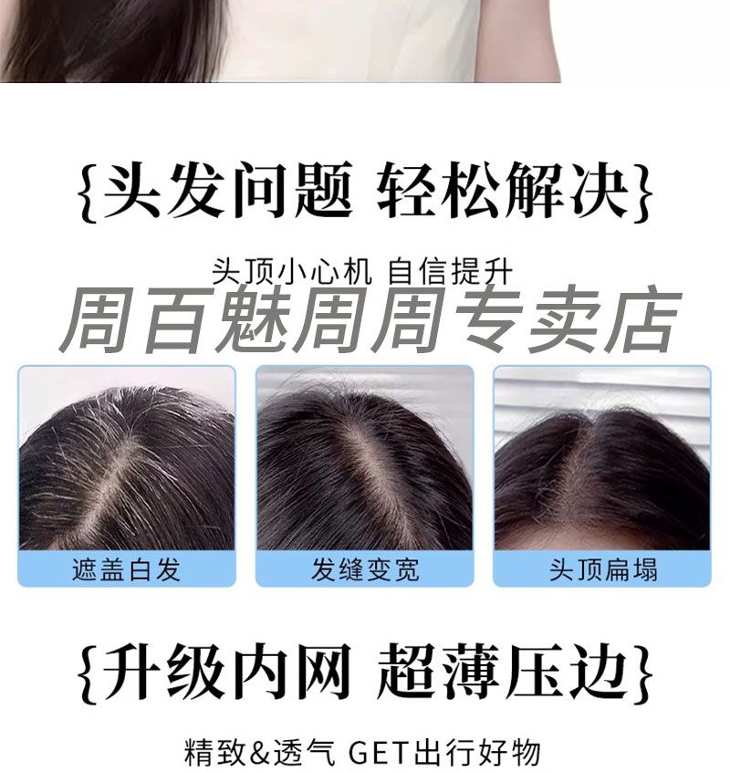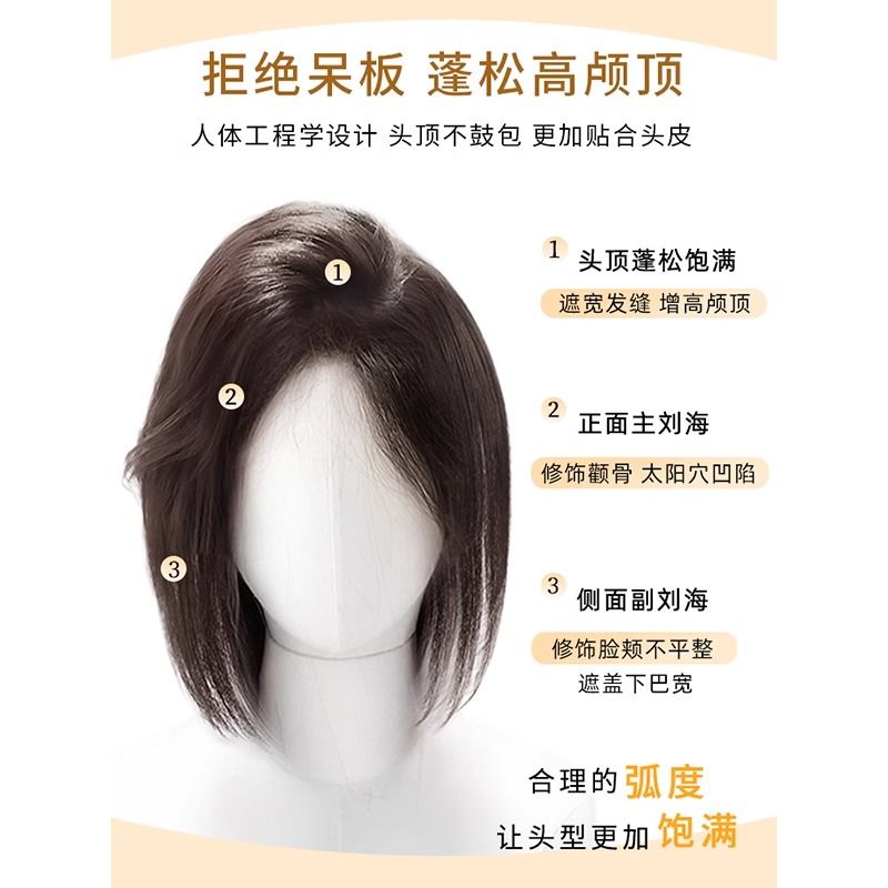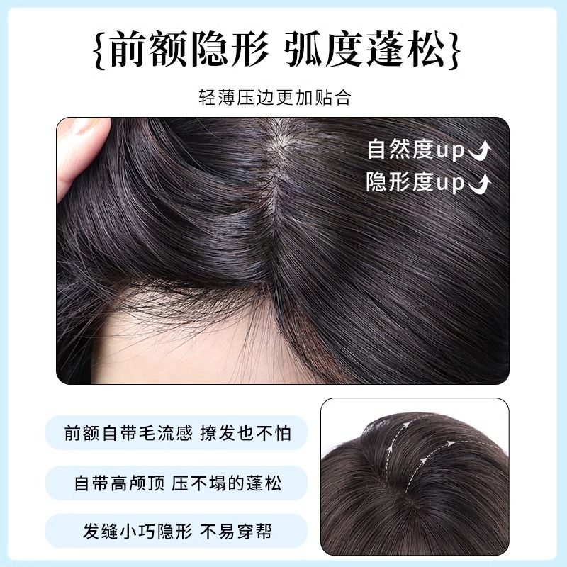 八字刘海假发片女头顶补发遮白发增发量自然蓬松高颅顶真发假发片