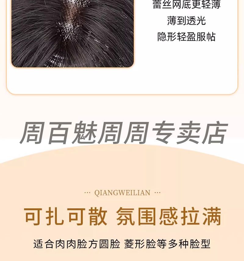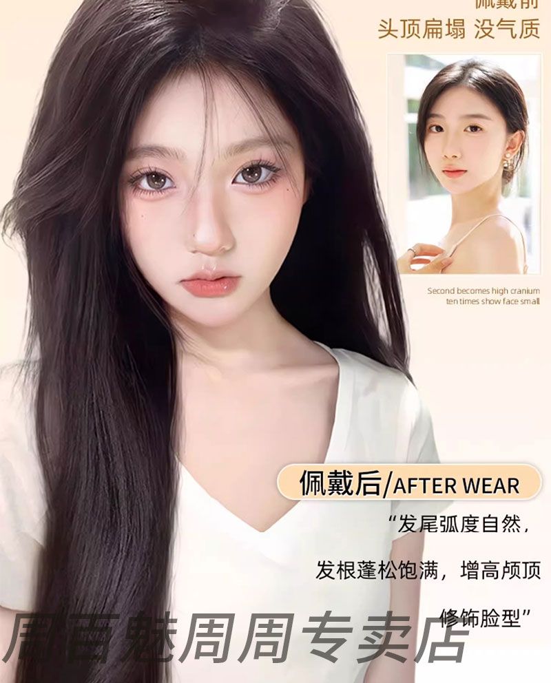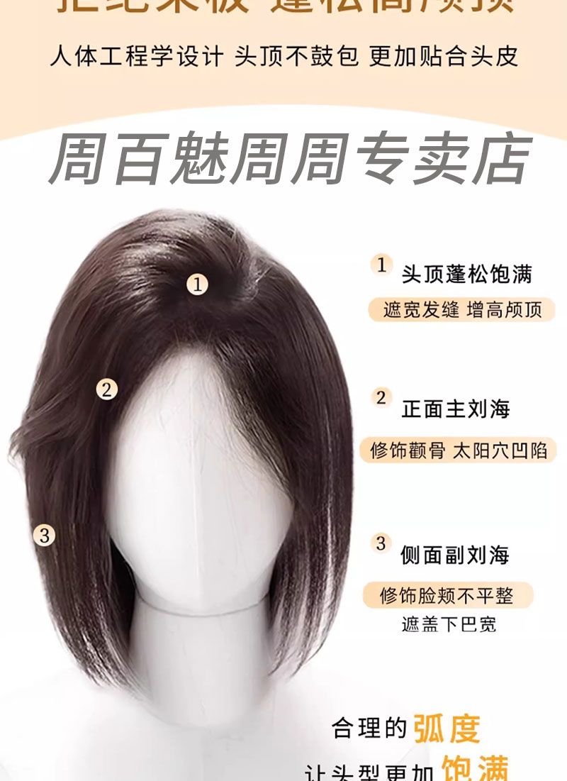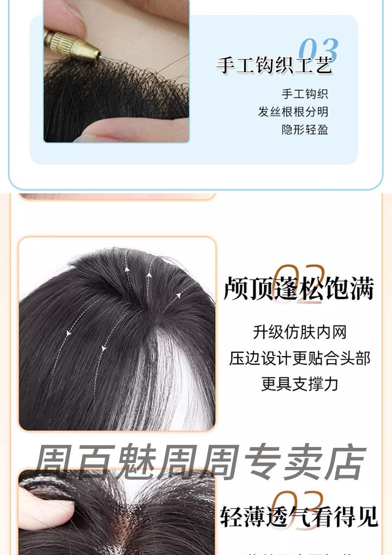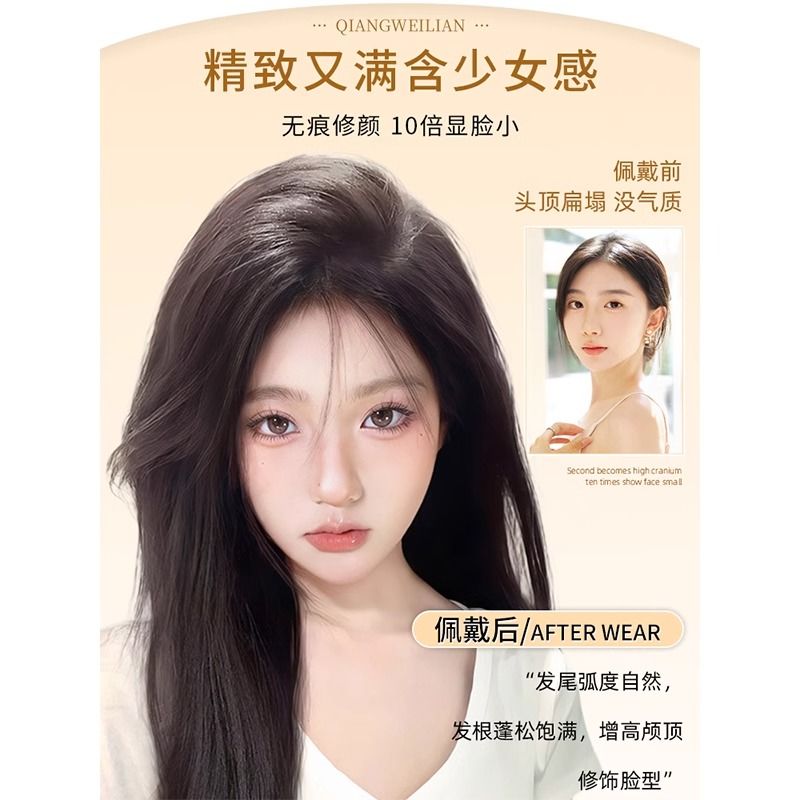 八字刘海假发片女头顶补发遮白发增发量自然蓬松高颅顶真发假发片