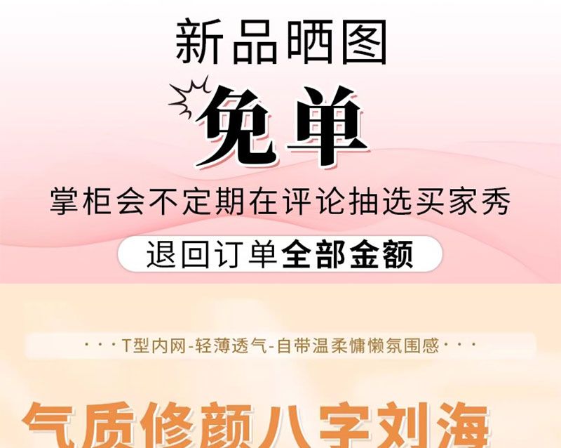 | [small half hand-woven black net on forehead] eight-character bangs(【前额 小半手织黑网】八字刘海) | USD $2.5 | 999999 piece available |
