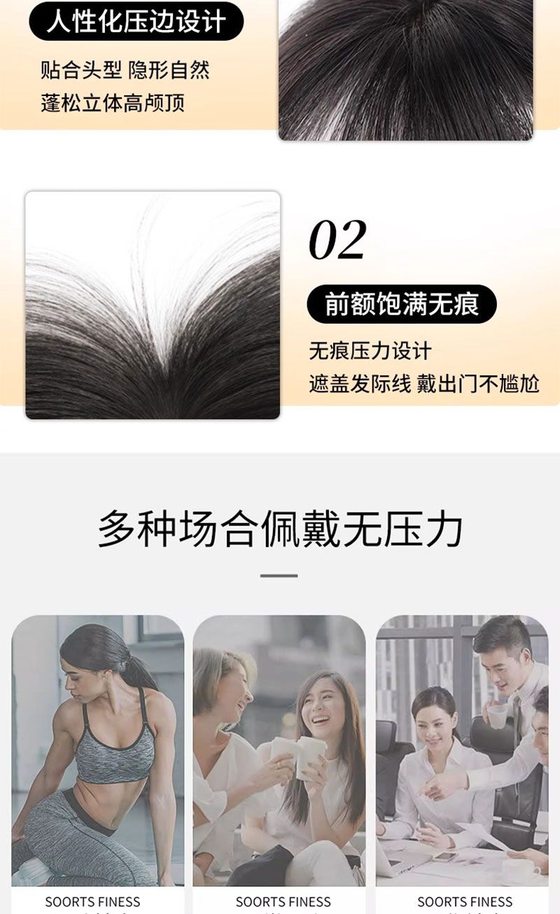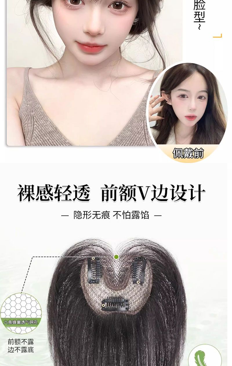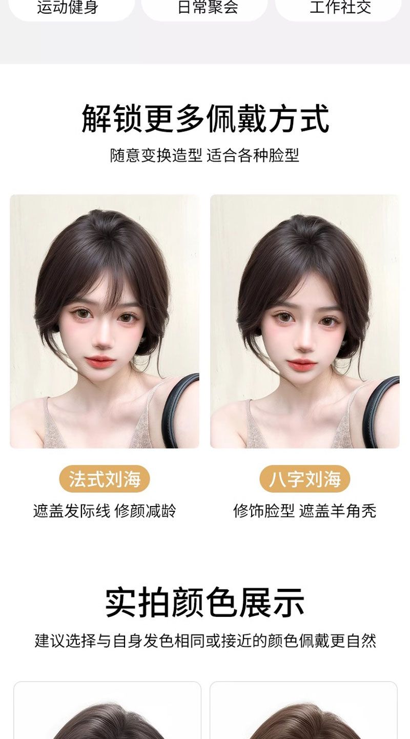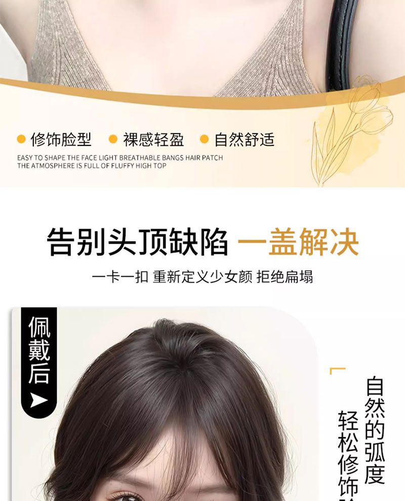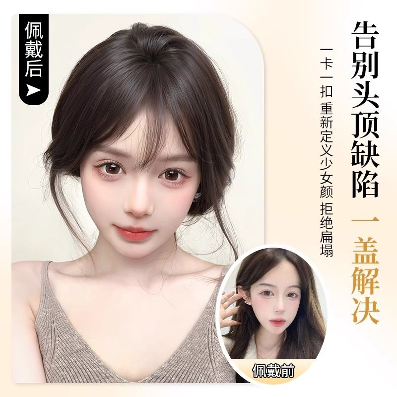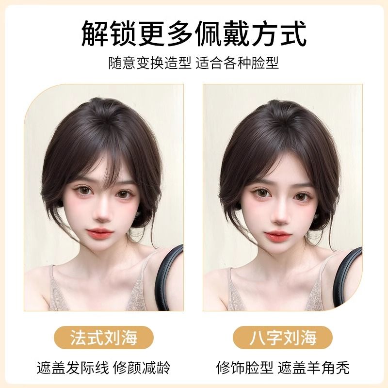 刘海假发女片头顶补发增发量蓬松真发高颅顶女自然前额法式假刘海