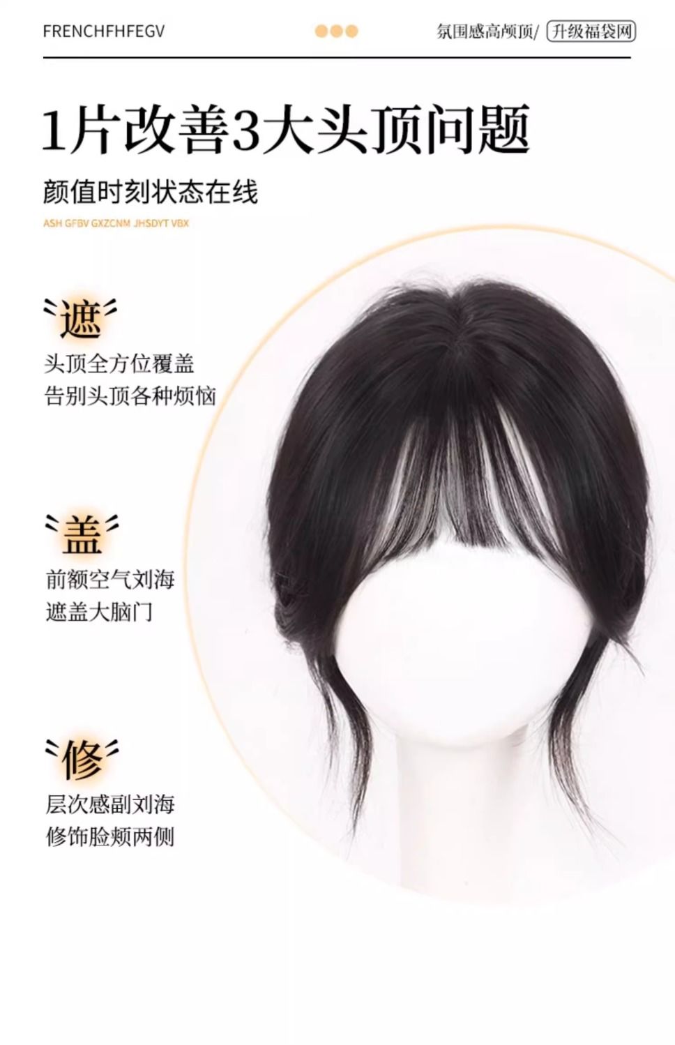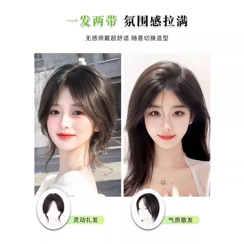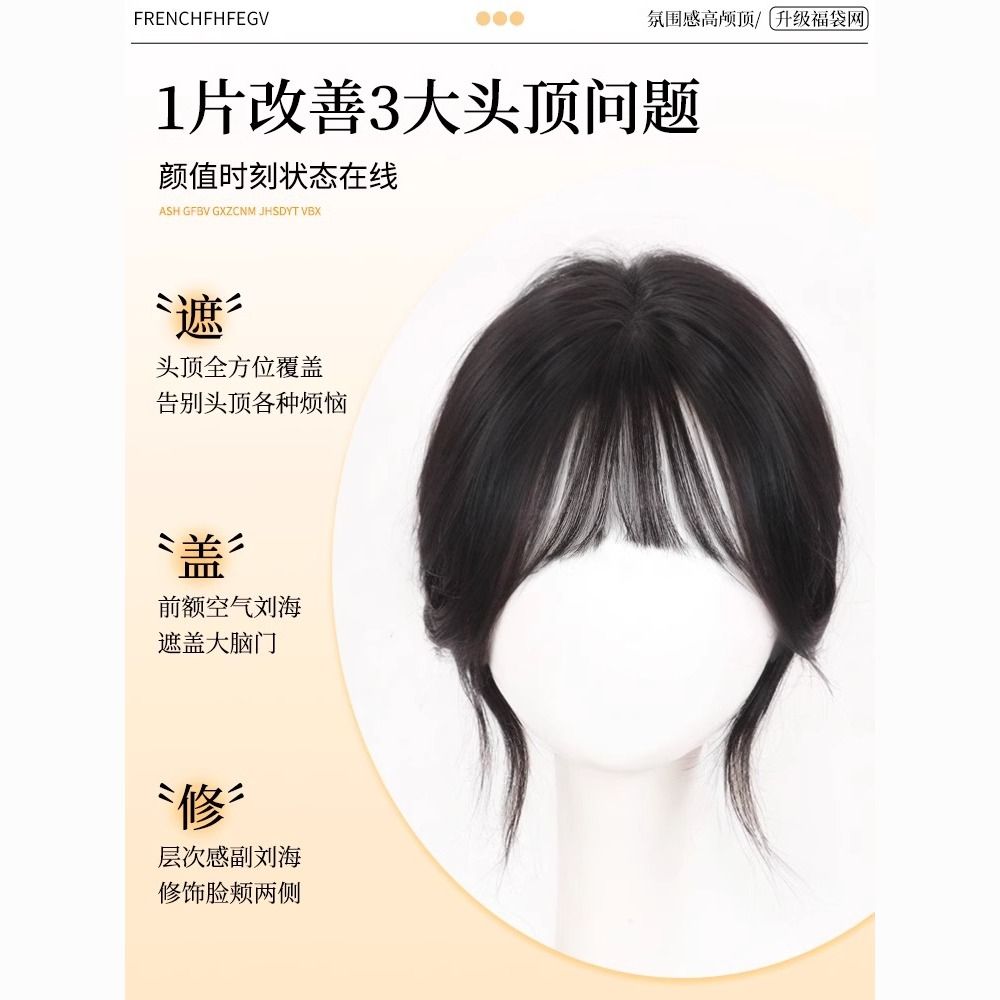 八字刘海补发女自然无痕增发量仿真发丝蓬松高颅顶遮白发刘海发片