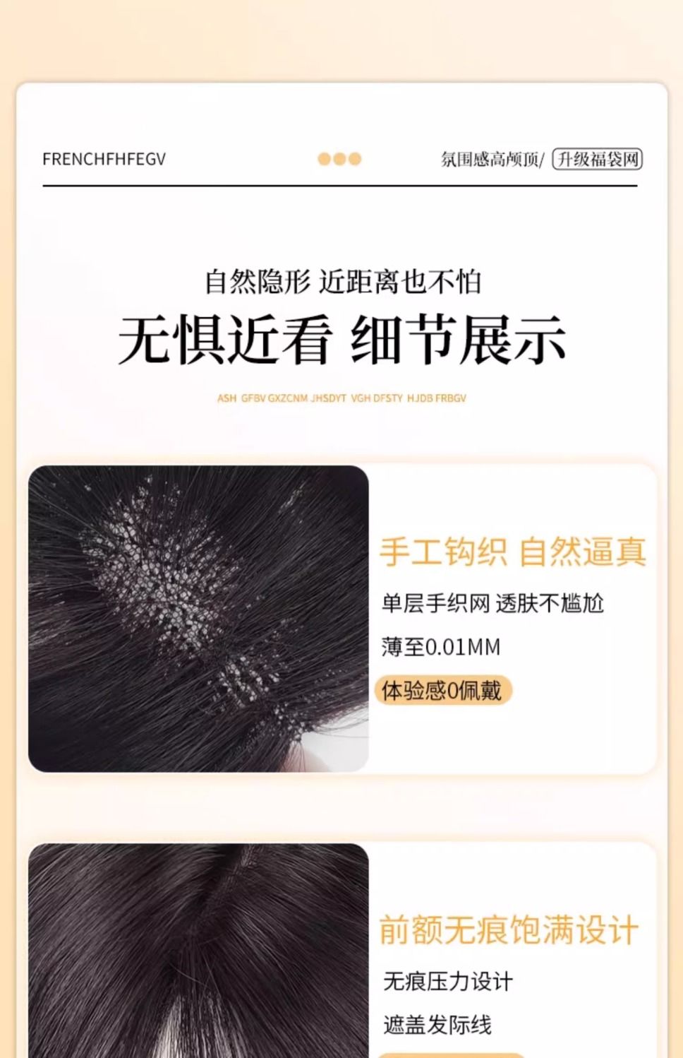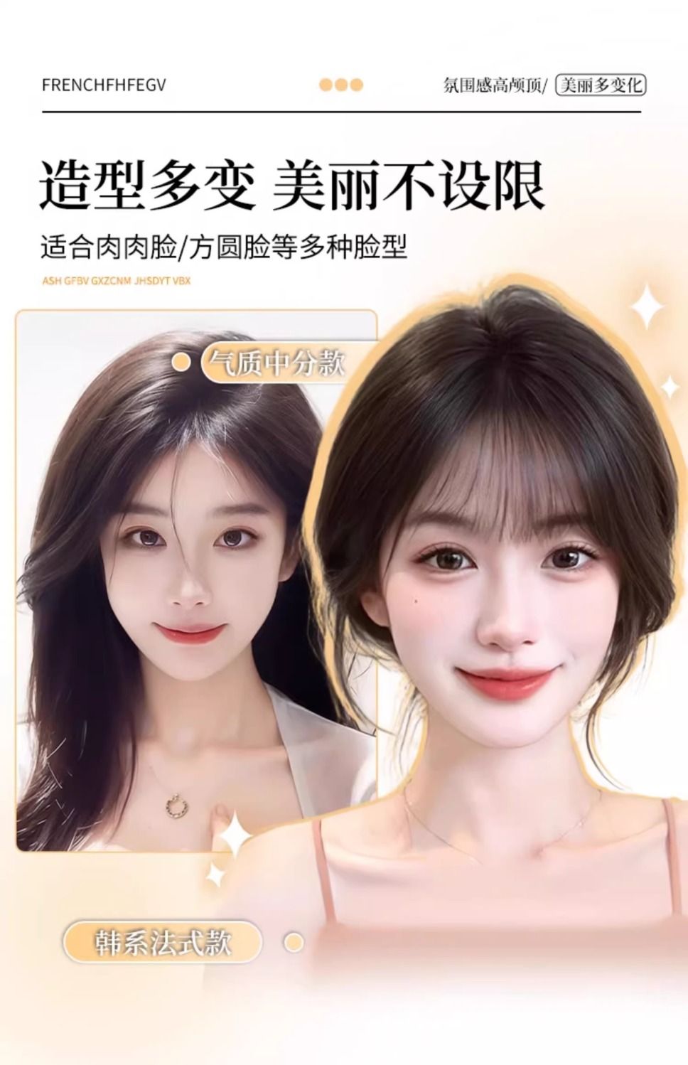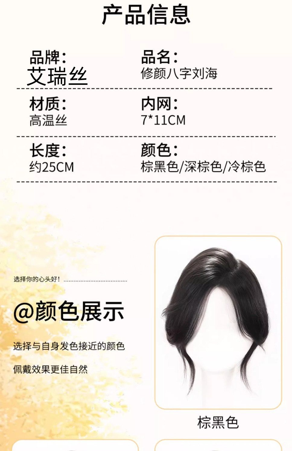八字刘海补发女自然无痕增发量仿真发丝蓬松高颅顶遮白发刘海发片