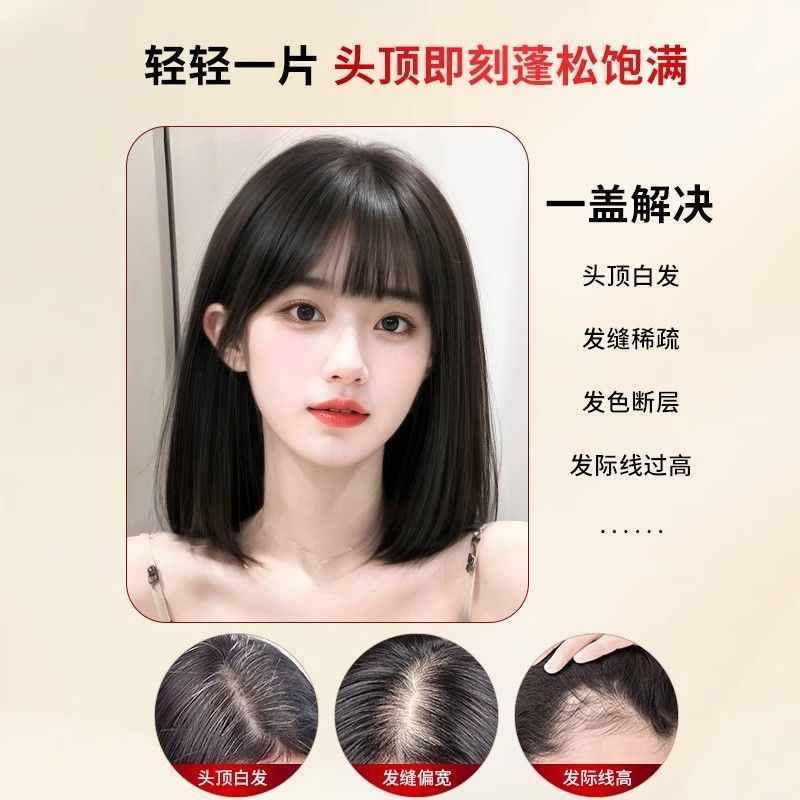 假刘海片头顶遮白发增发量透气仿真发蓬松逼真高颅顶无痕法式刘海