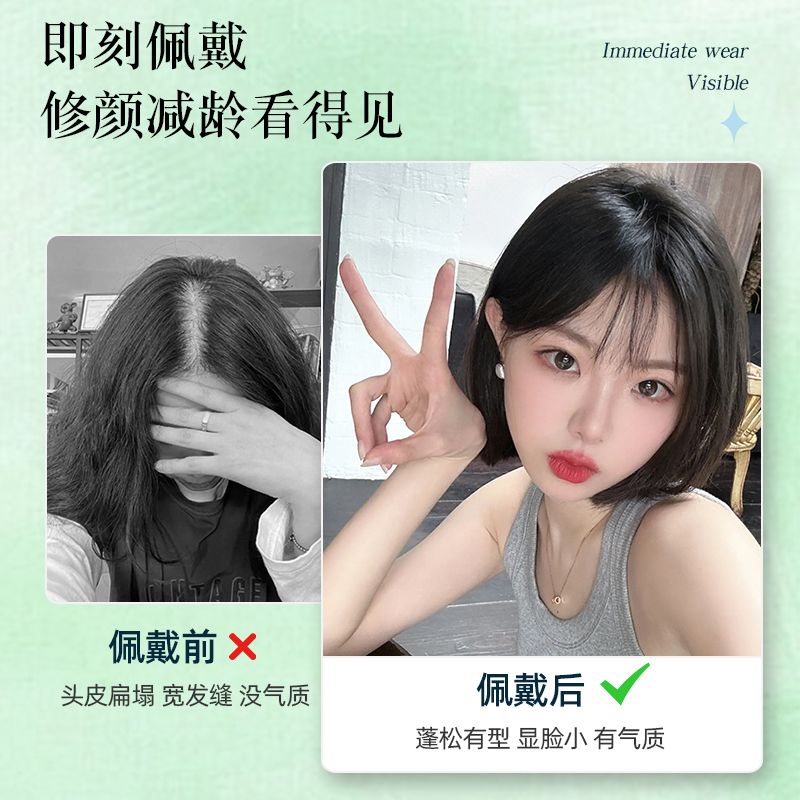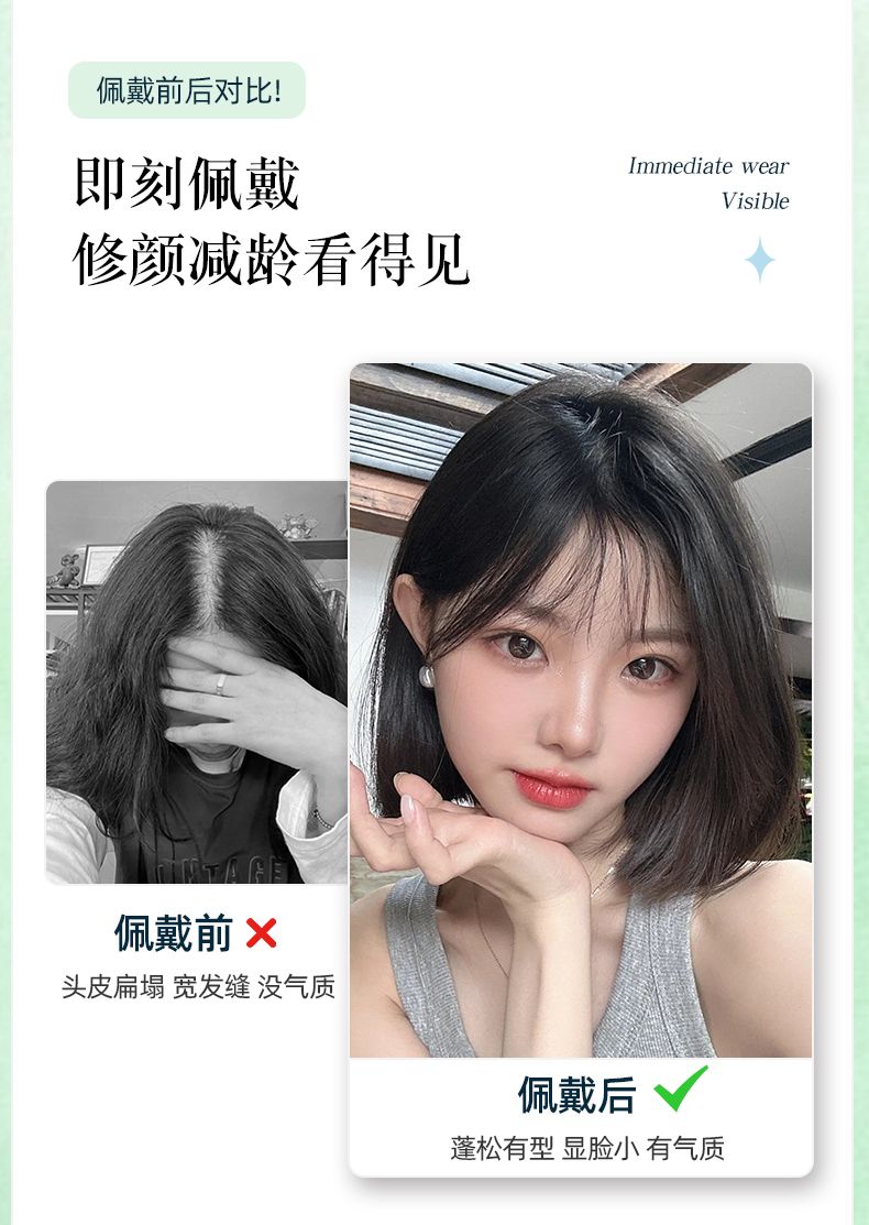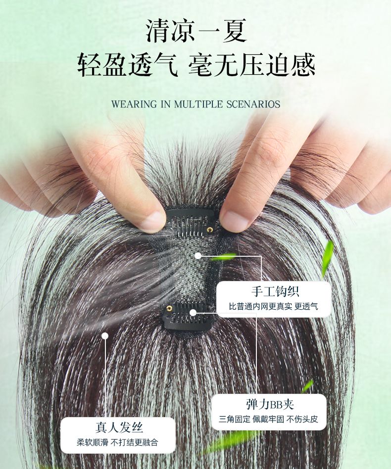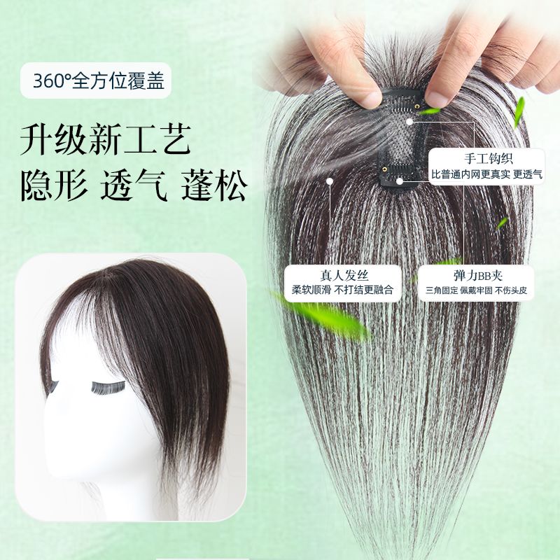 新款女士假发片头顶稀少遮盖蓬松减龄遮白发一片式真头发遮发际线