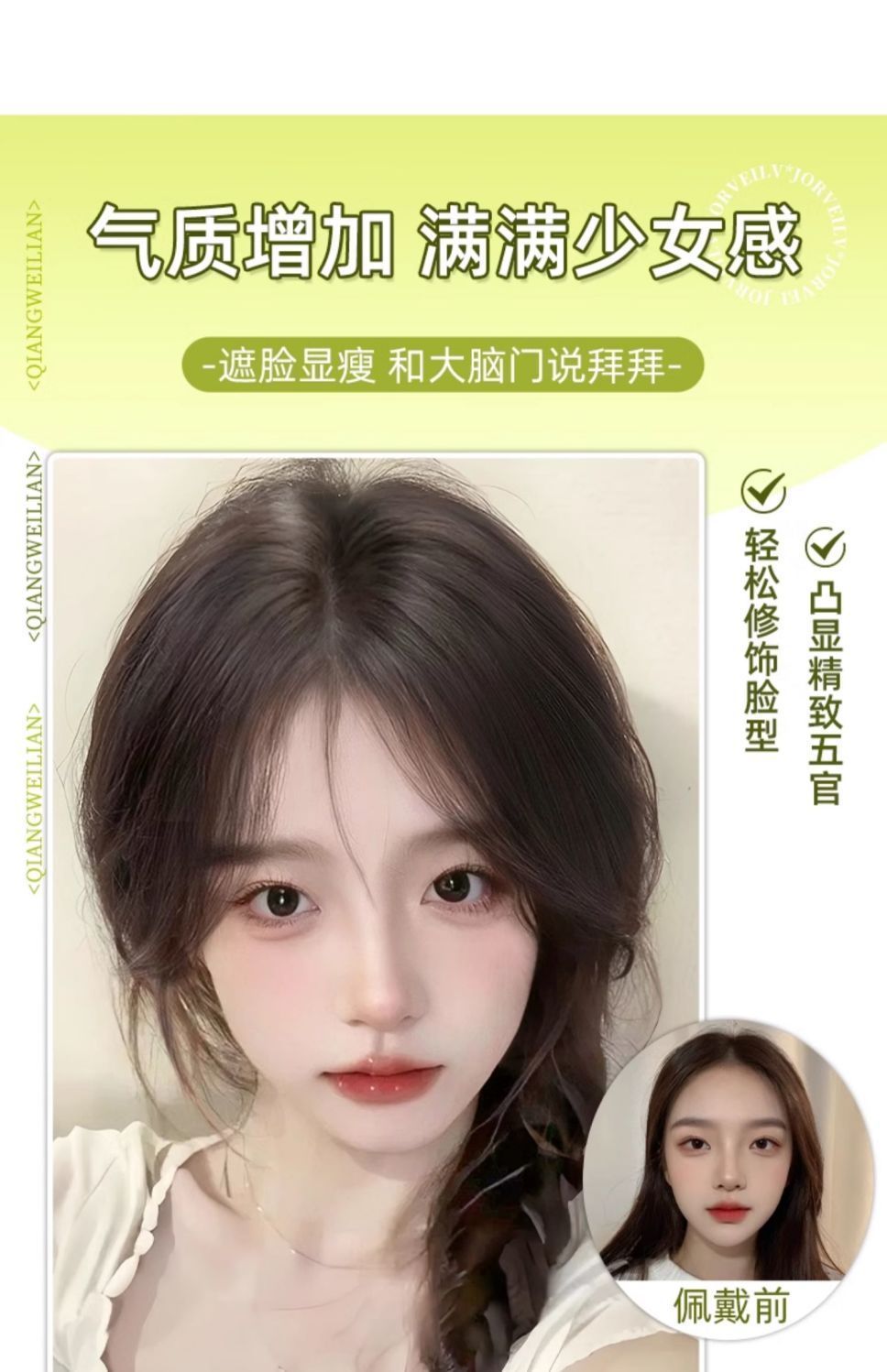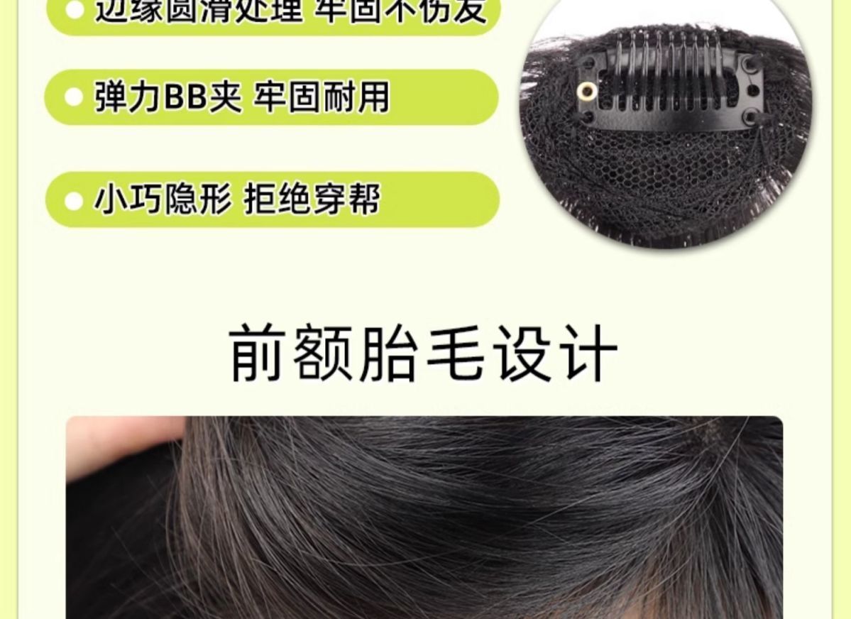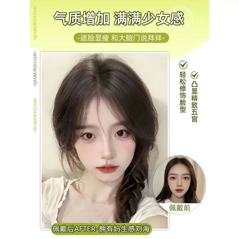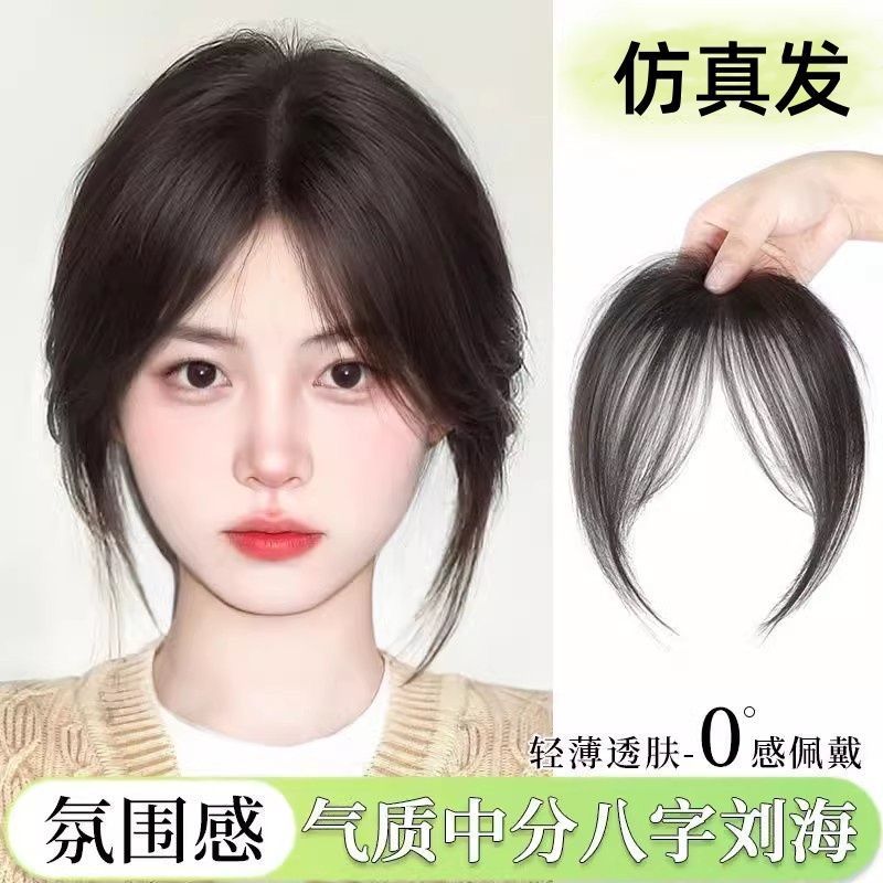 八字刘海发片女头顶补发增发量蓬松前额无痕修颜法式刘海仿真发