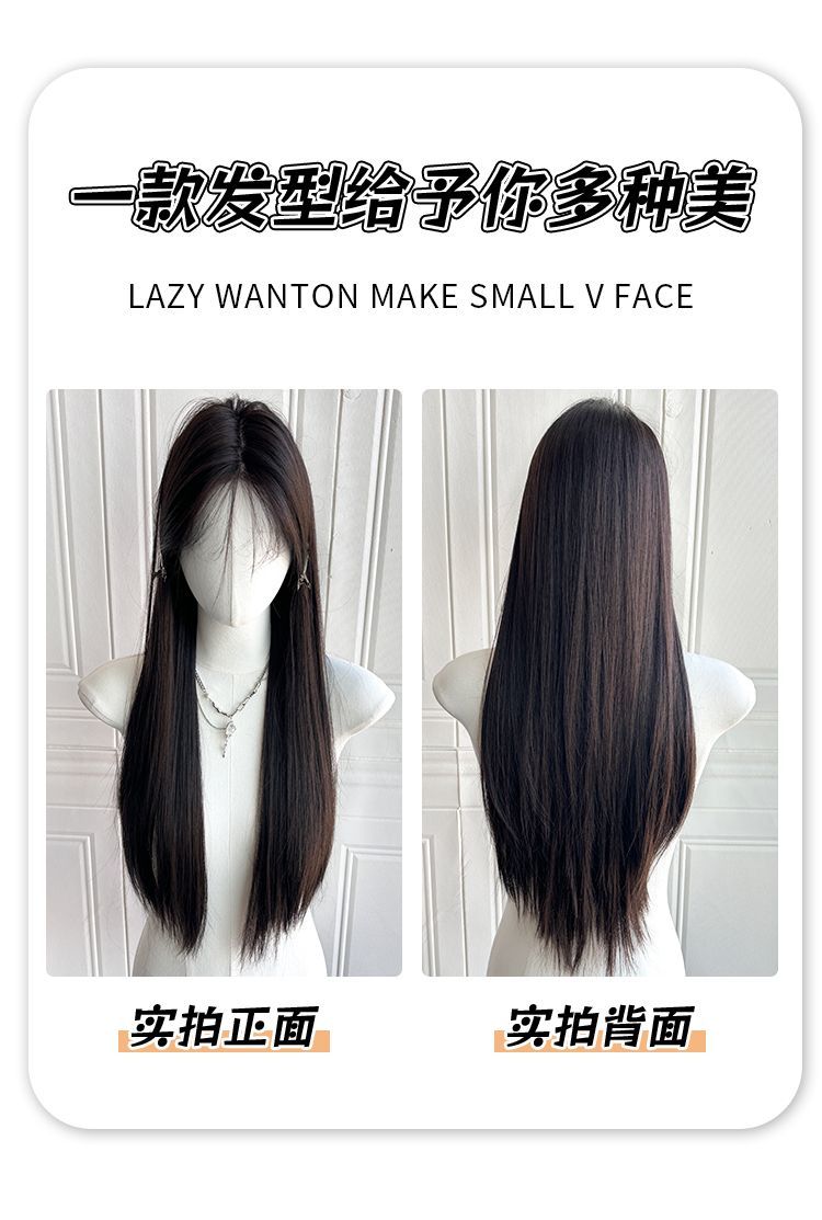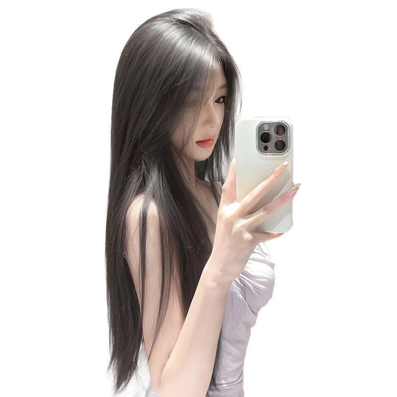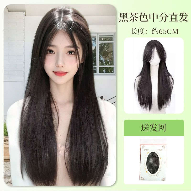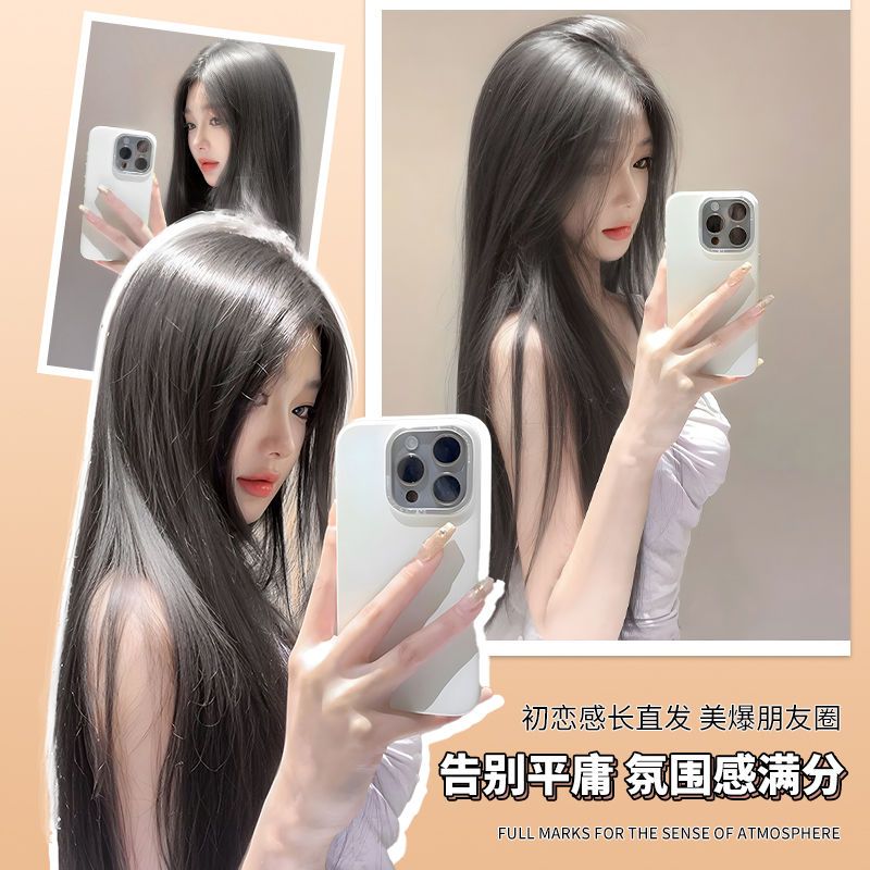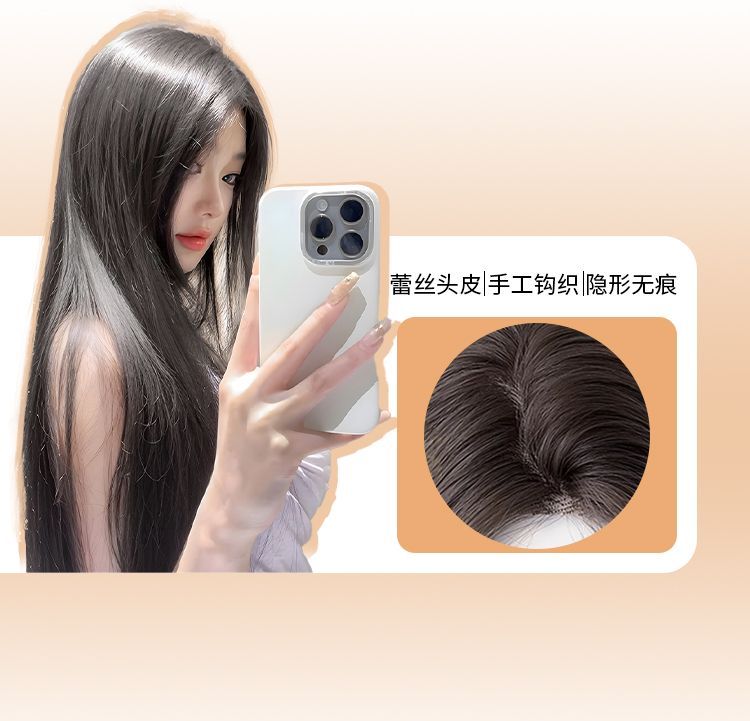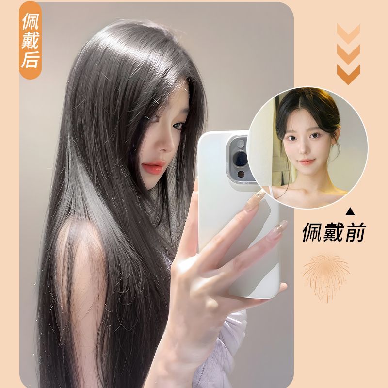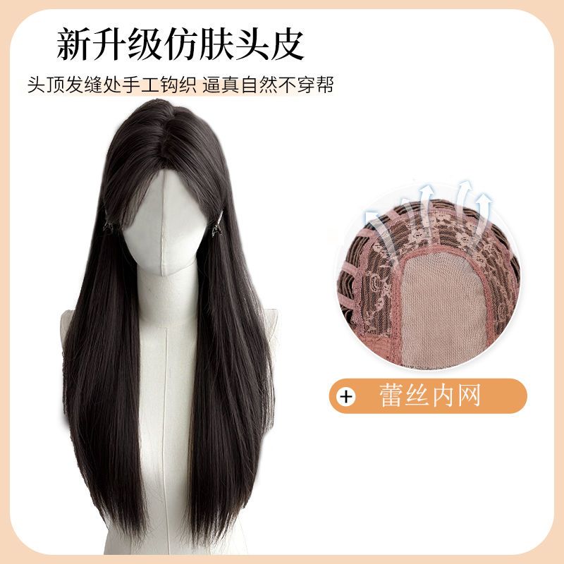 长直发中分八字刘海头套女夏季轻薄透气仿真发黑长直整顶全头套式