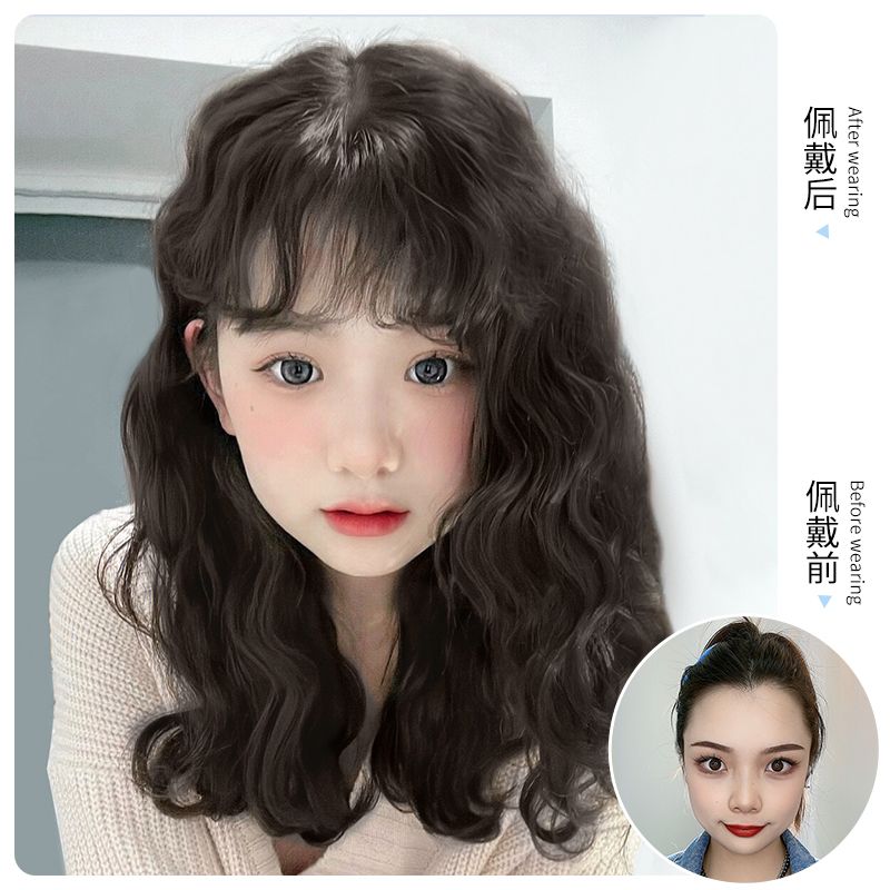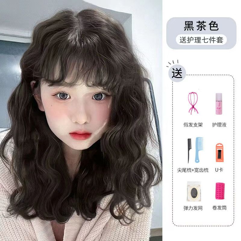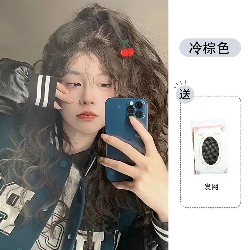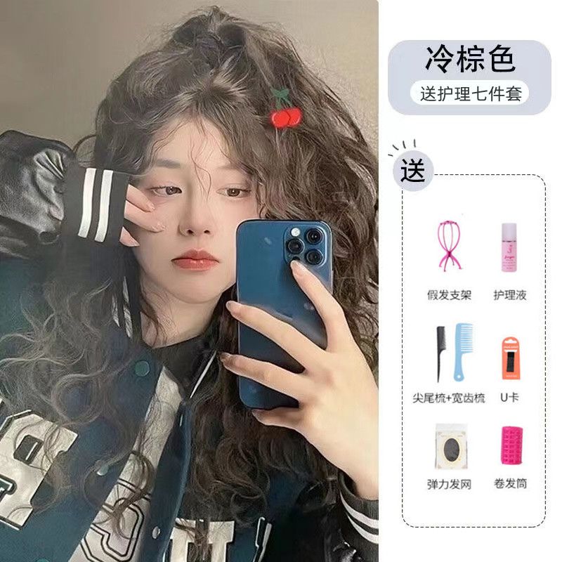 假发女中长发网红羊毛卷假发套2022年时尚新款锁骨发自然全头套式