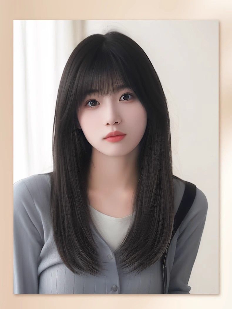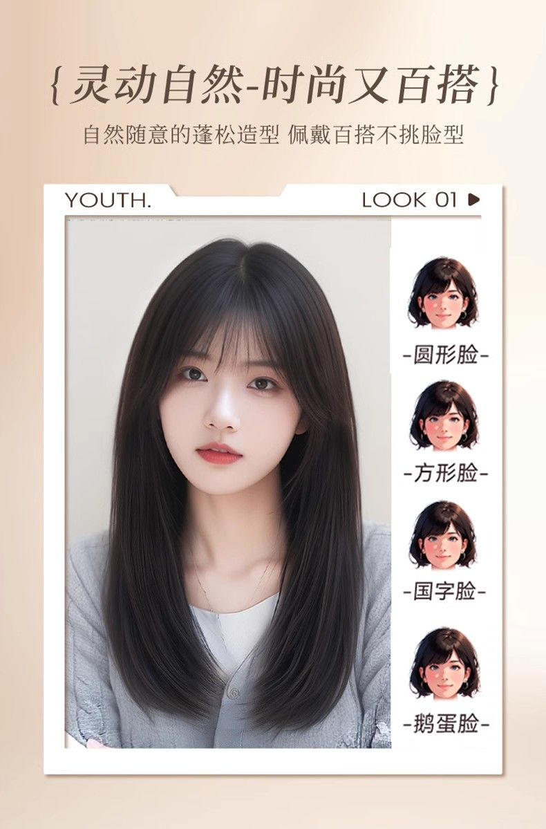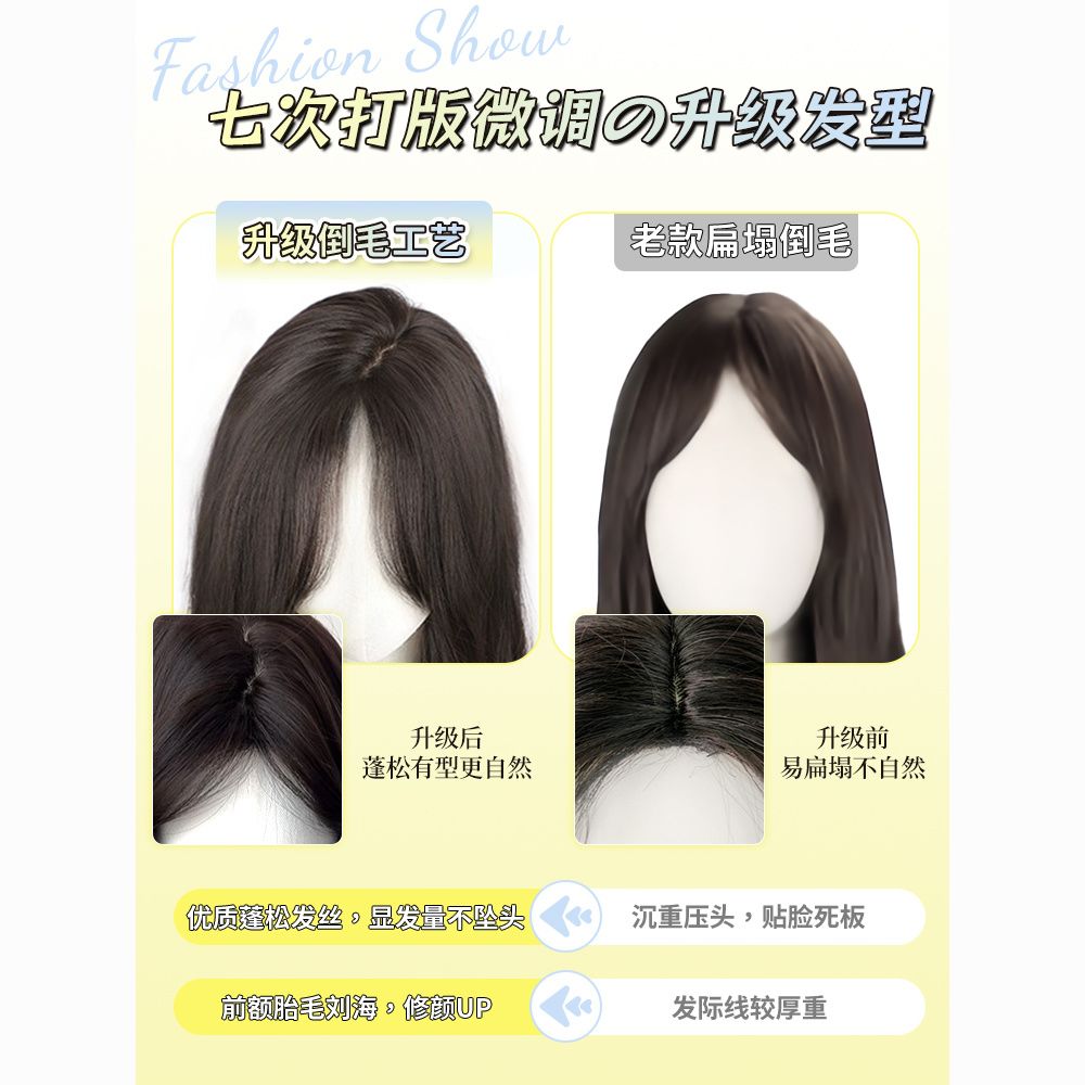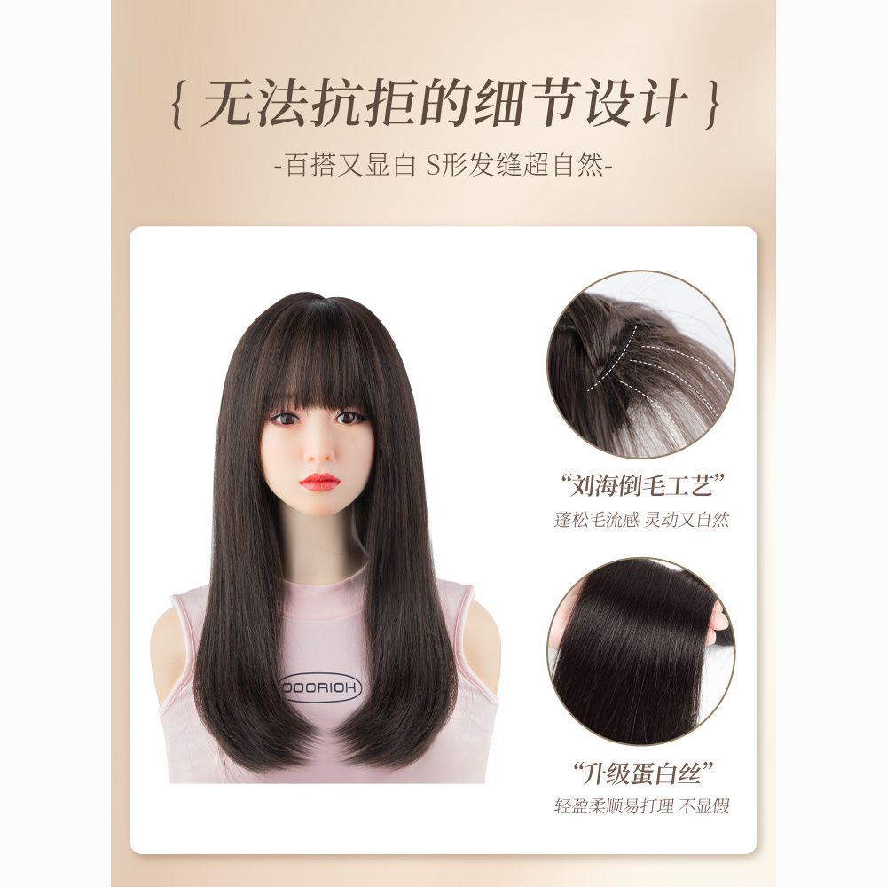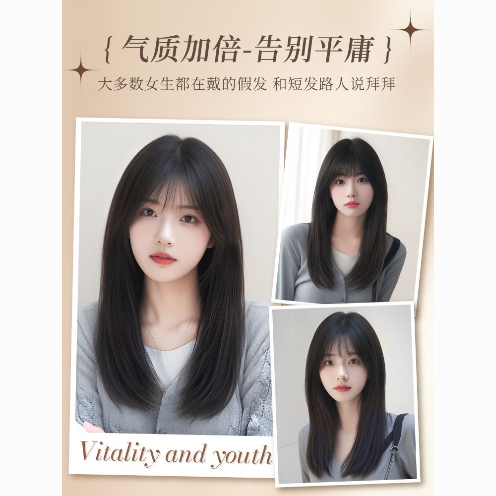 网红女中长发时尚减龄层次感锁骨发隐形头套式仿真发刘海发套整顶
