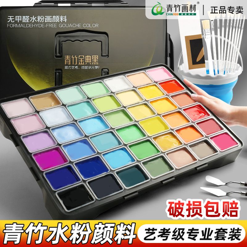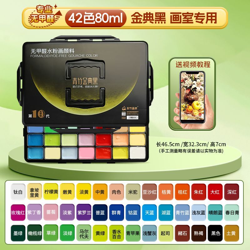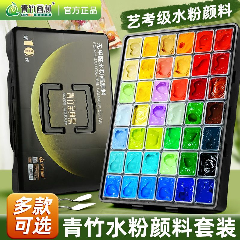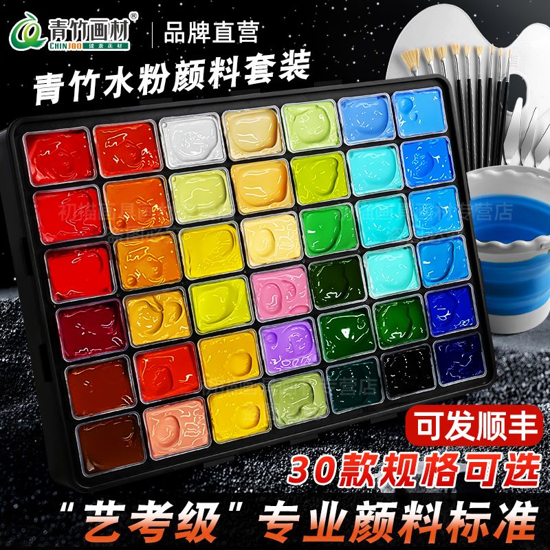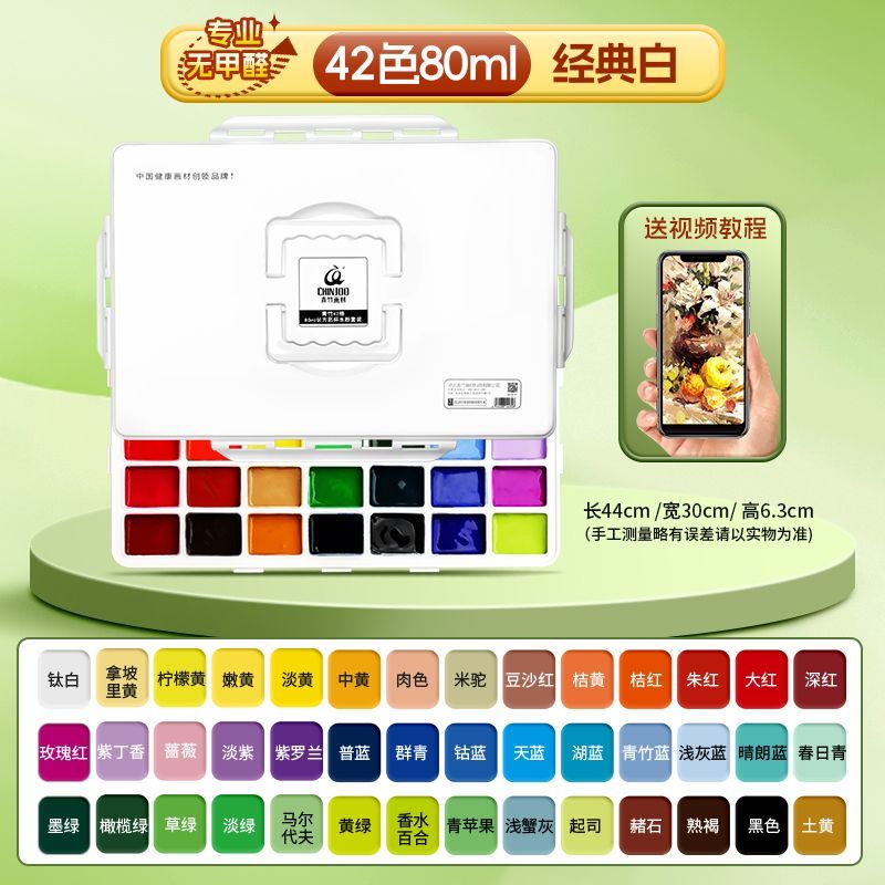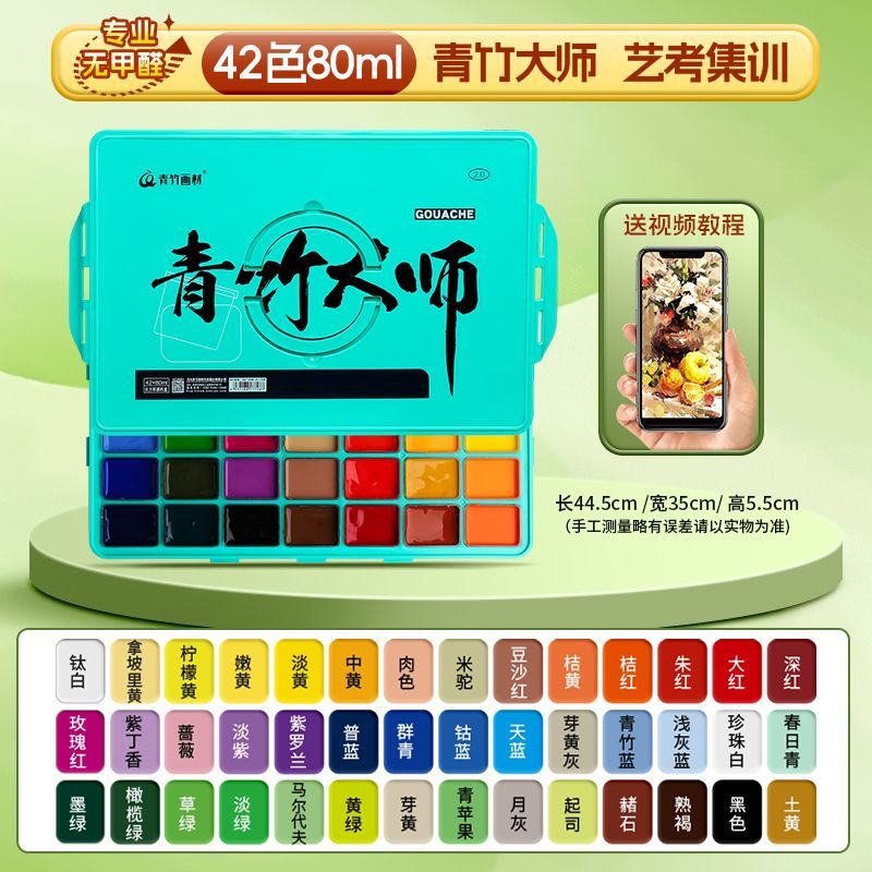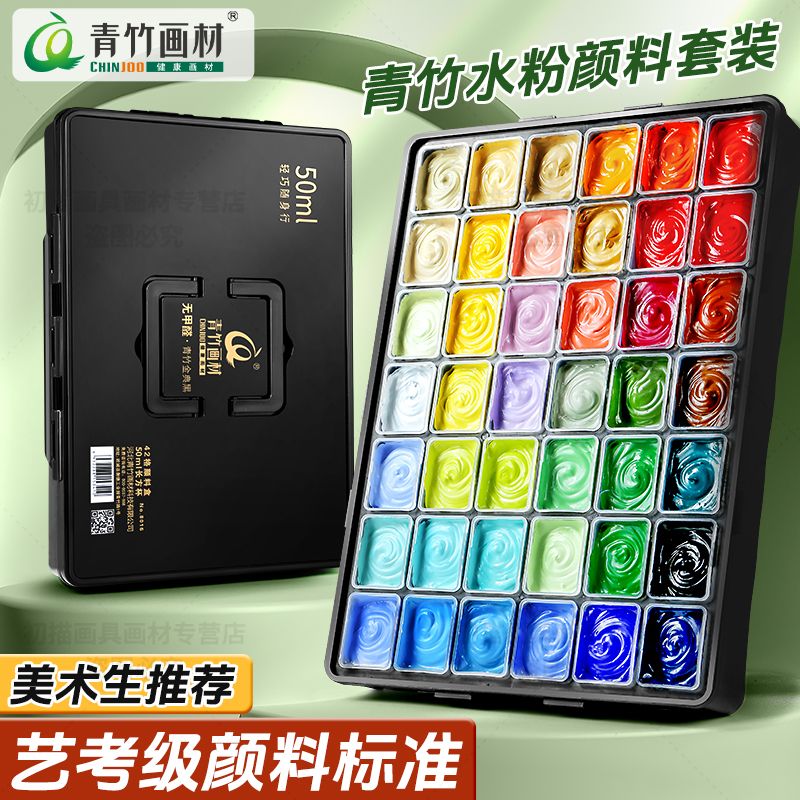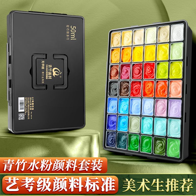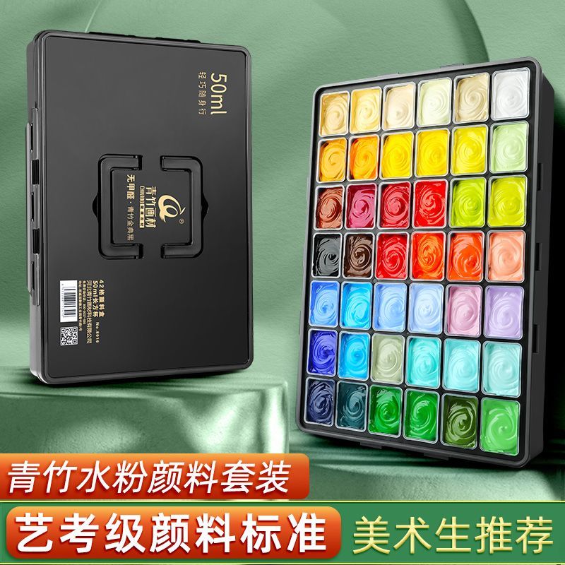 青竹水粉颜料套装42色80ml青竹大师流光白美术生专用48色果冻颜料