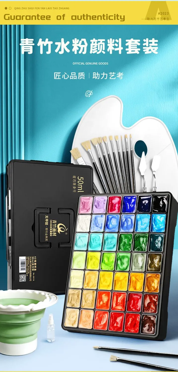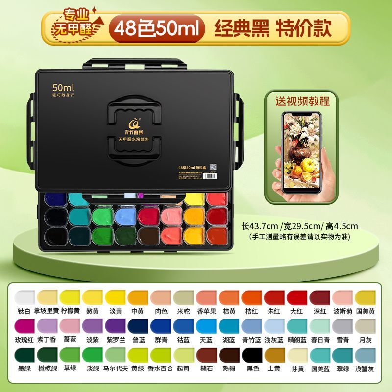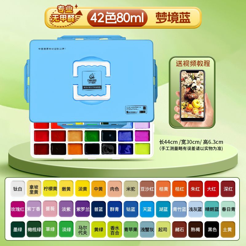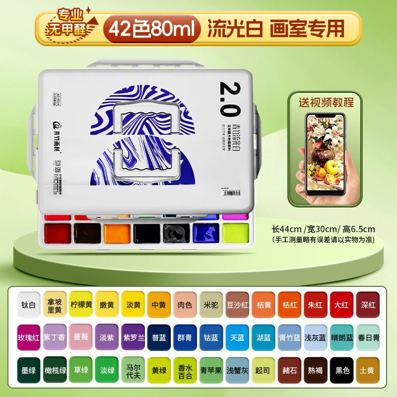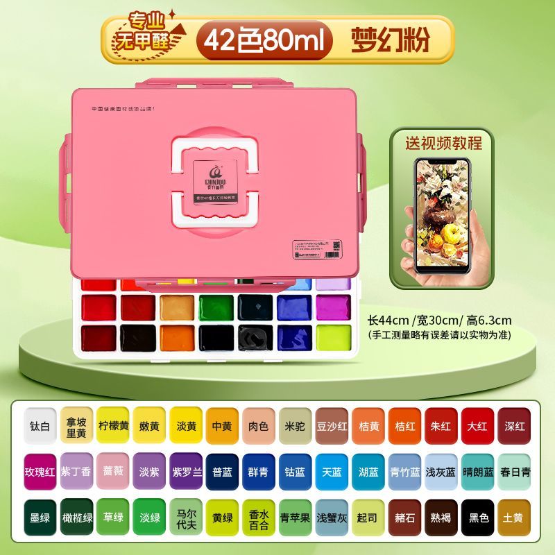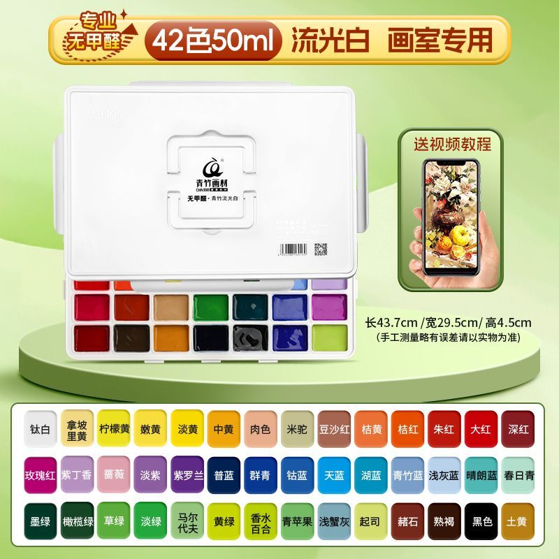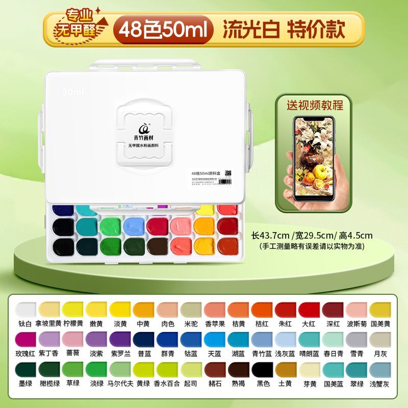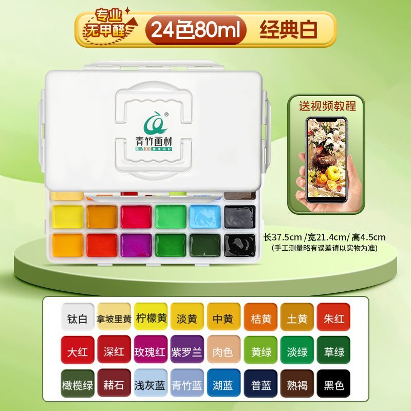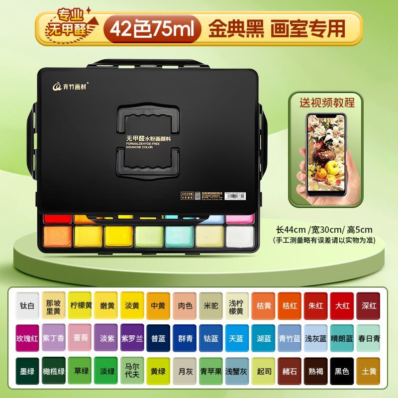 青竹水粉颜料套装42色80ml青竹大师流光白美术生专用48色果冻颜料