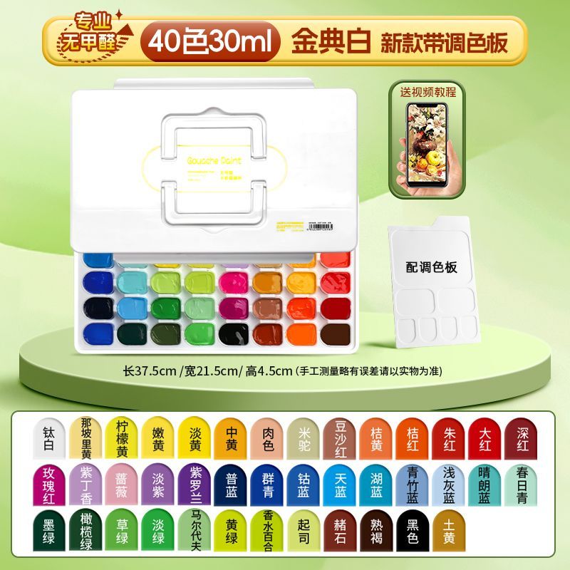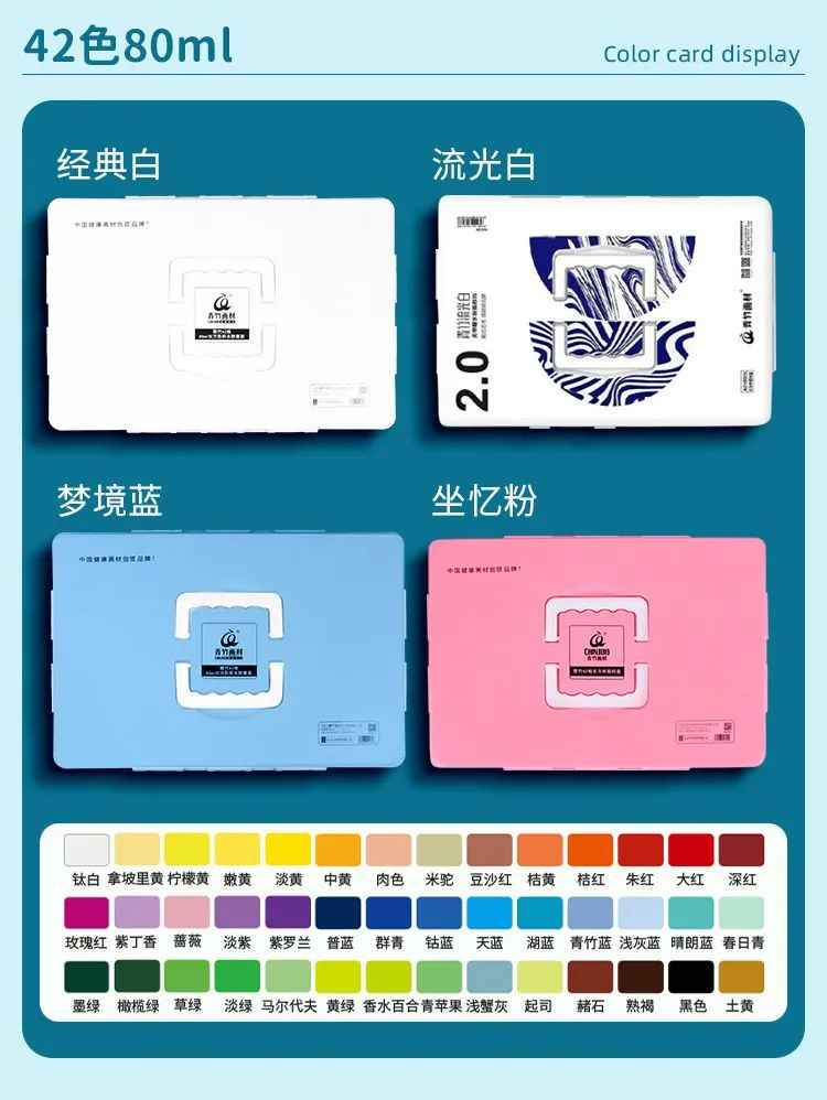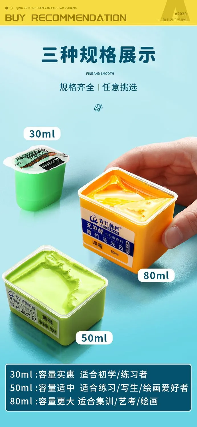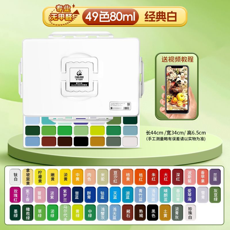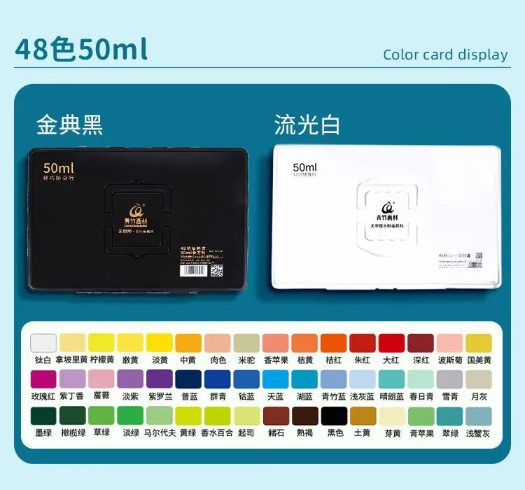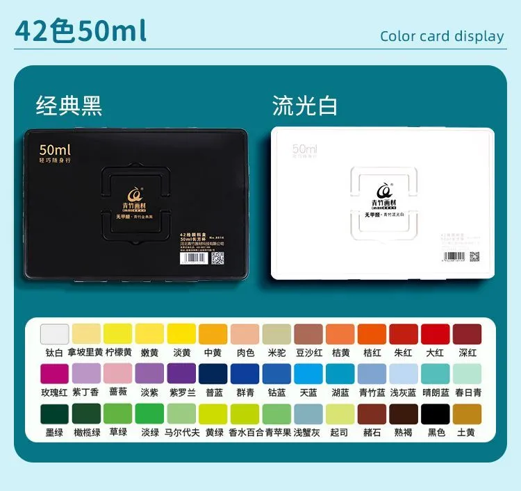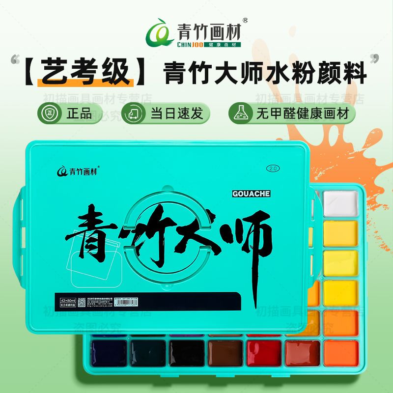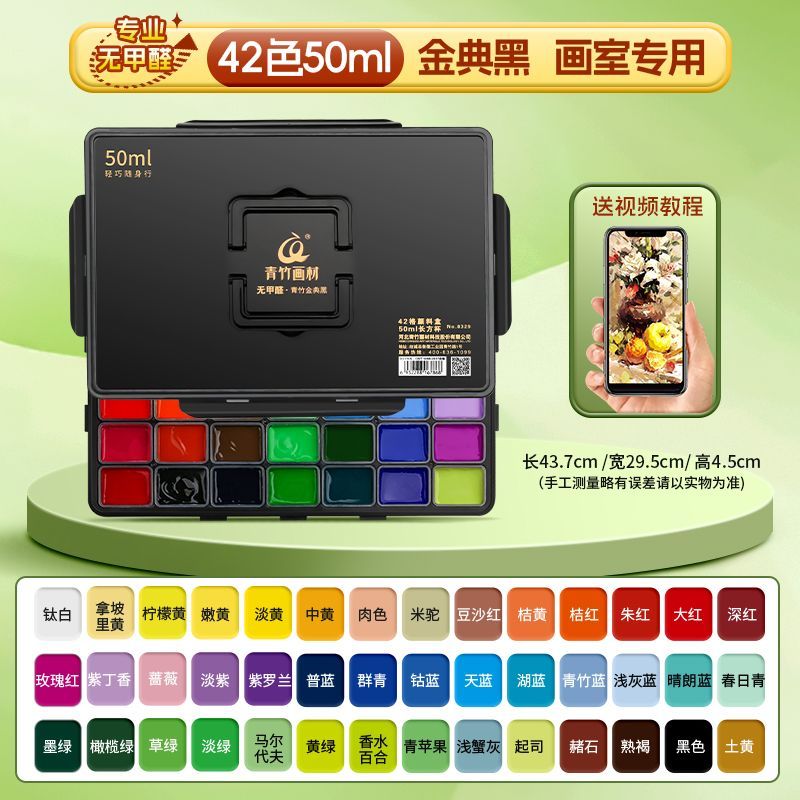青竹水粉颜料套装42色80ml青竹大师流光白美术生专用48色果冻颜料