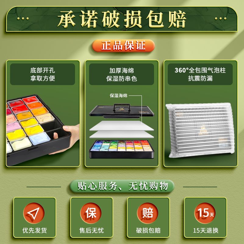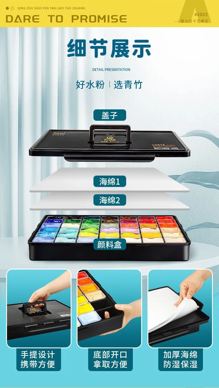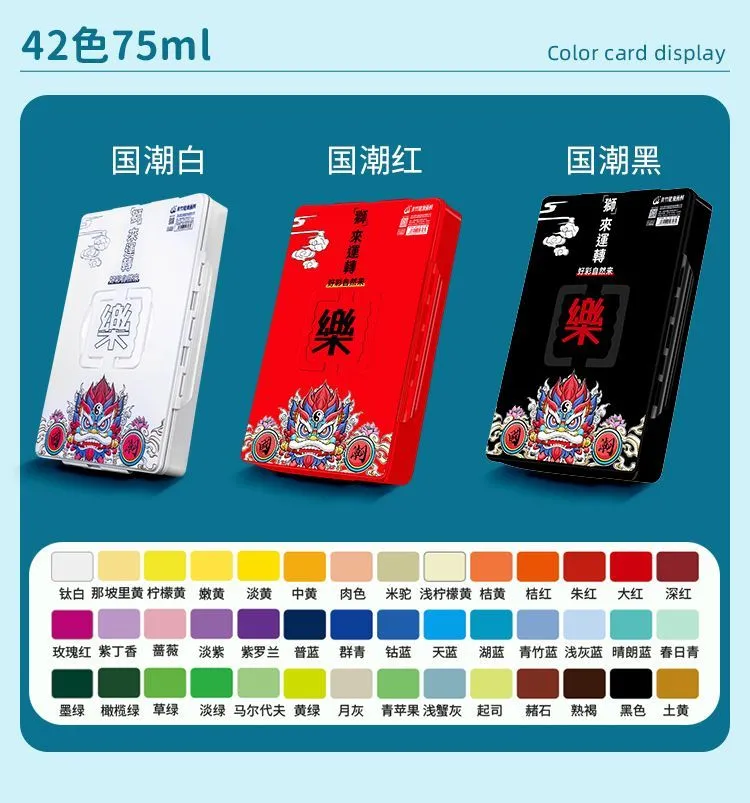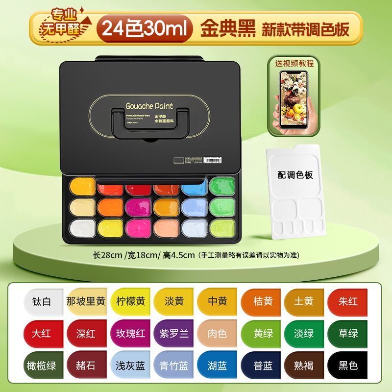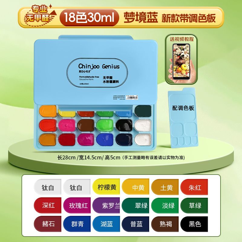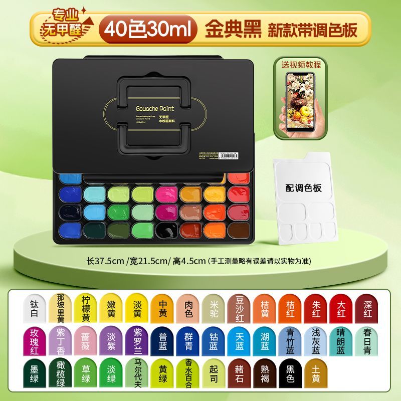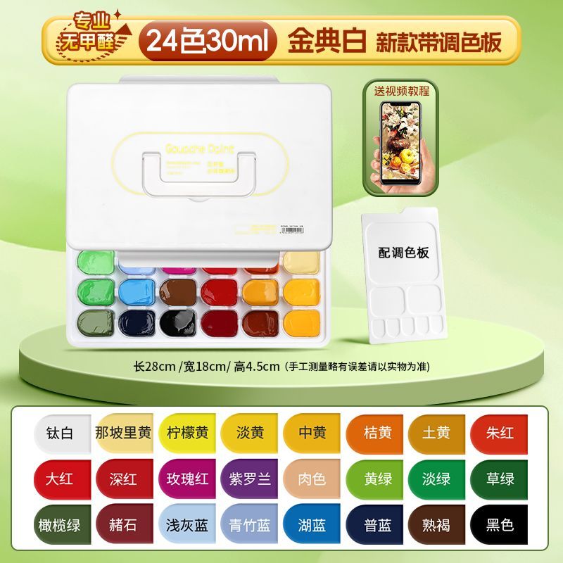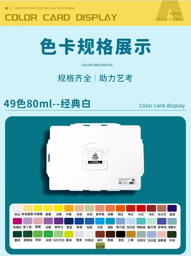 青竹水粉颜料套装42色80ml青竹大师流光白美术生专用48色果冻颜料