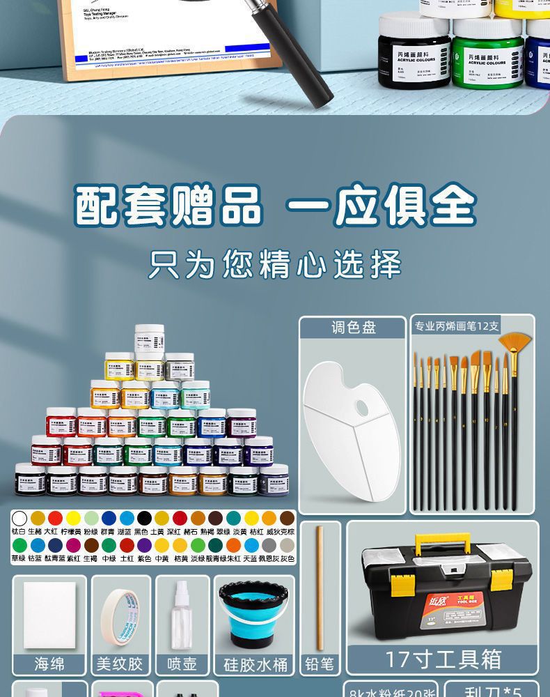 丙烯颜料100ml全套32色墙绘手绘画diy防水防晒涂鸦初学美术专用