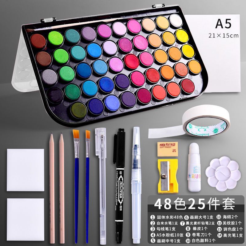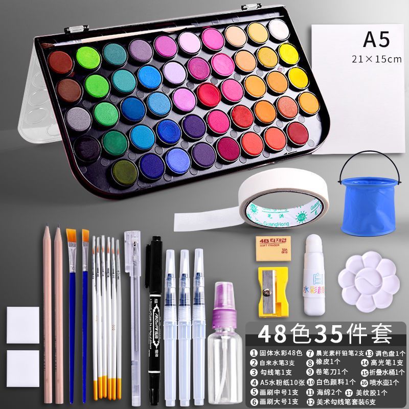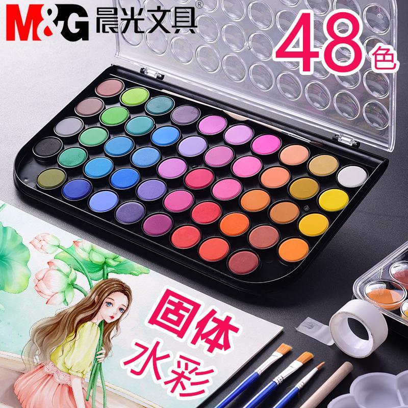 晨光固体颜料水彩颜料套装水彩画工具专业美术12/36/48色水粉颜料