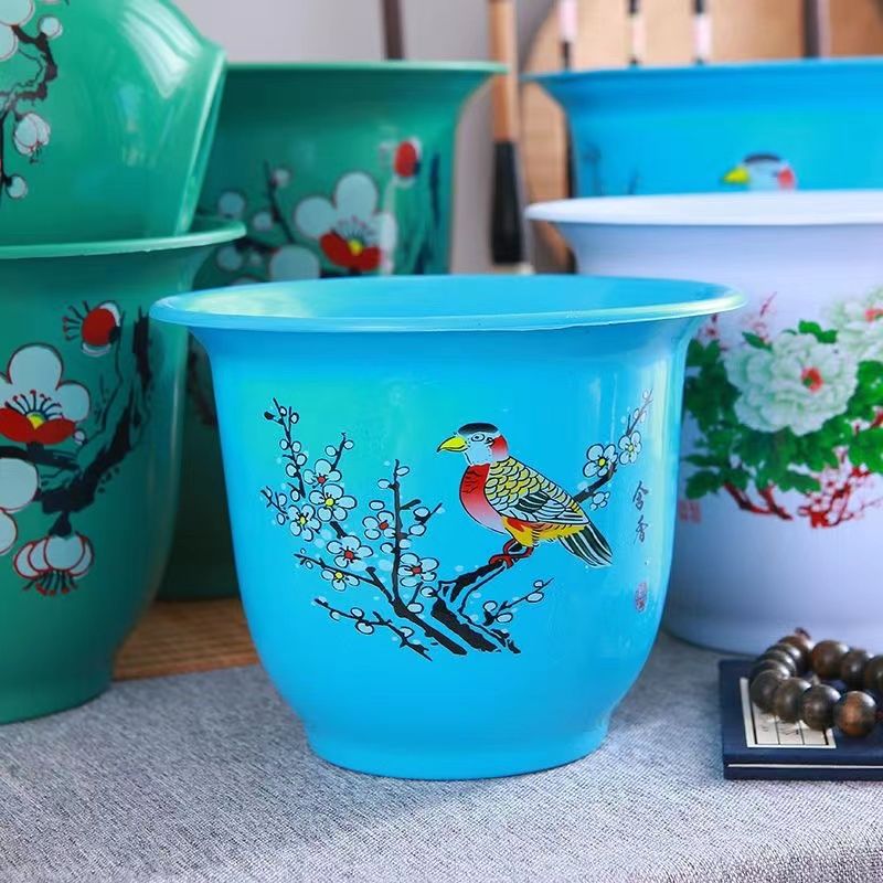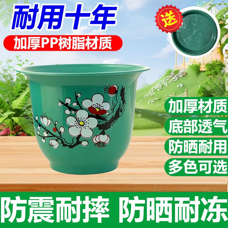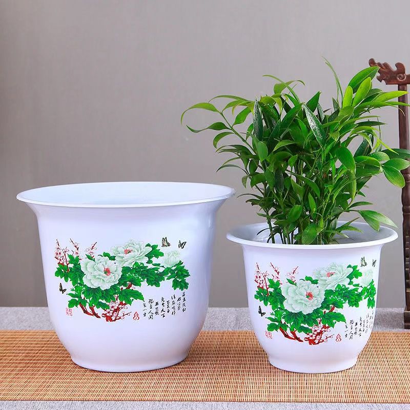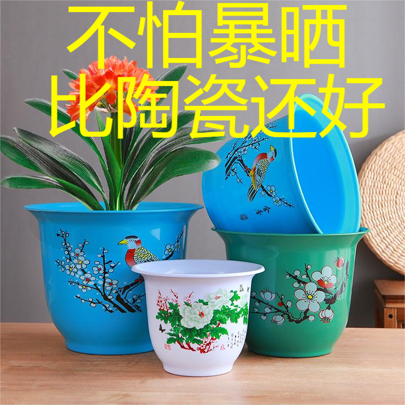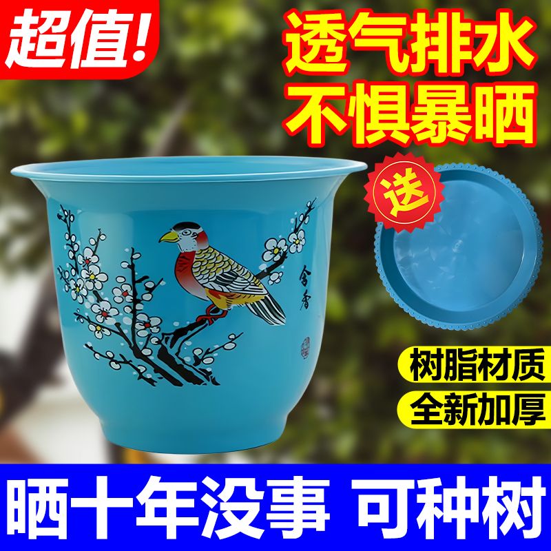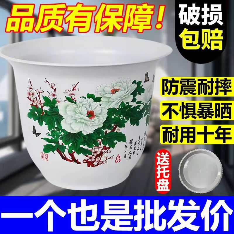 仿陶瓷加厚高档树脂花盆送托盘家用客厅防暴晒超便宜防晒清仓