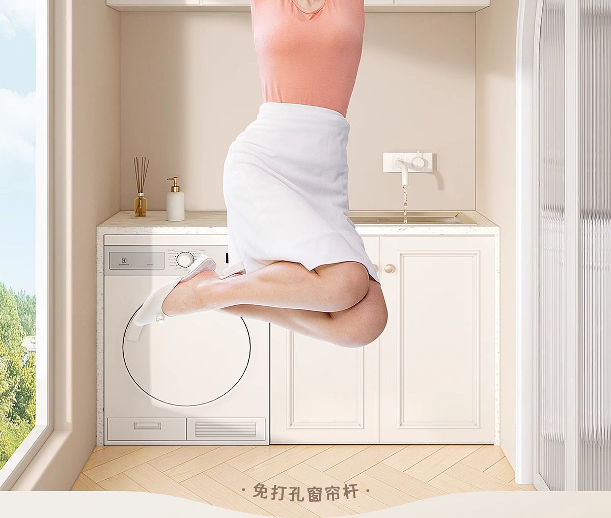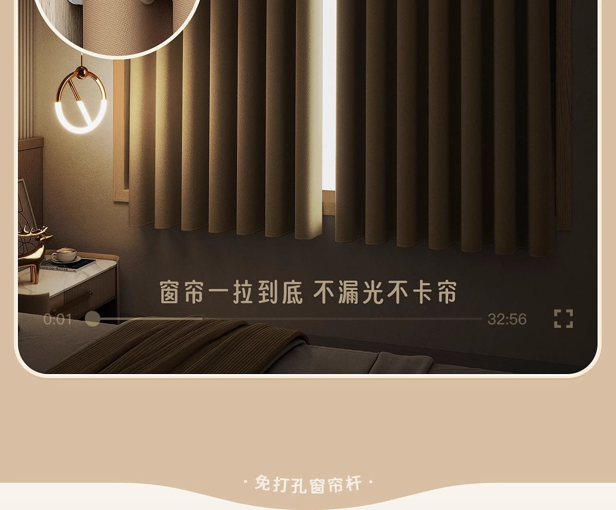 静音窗帘杆免打孔安装滑轨滑轮阳台侧装窗帘杆挂钩环导轨顶装滑道