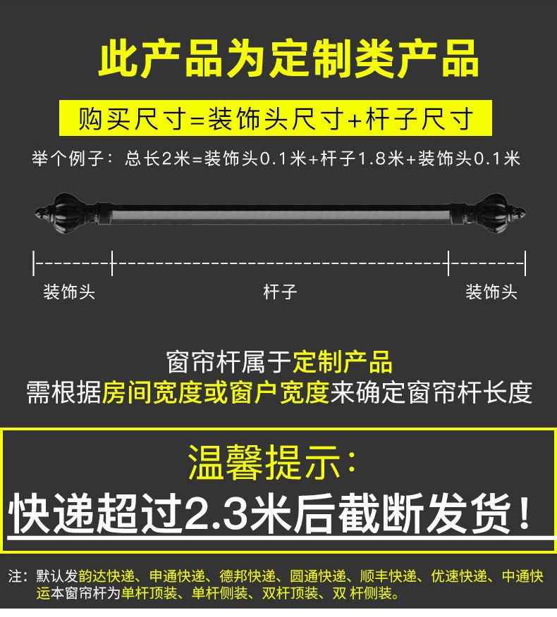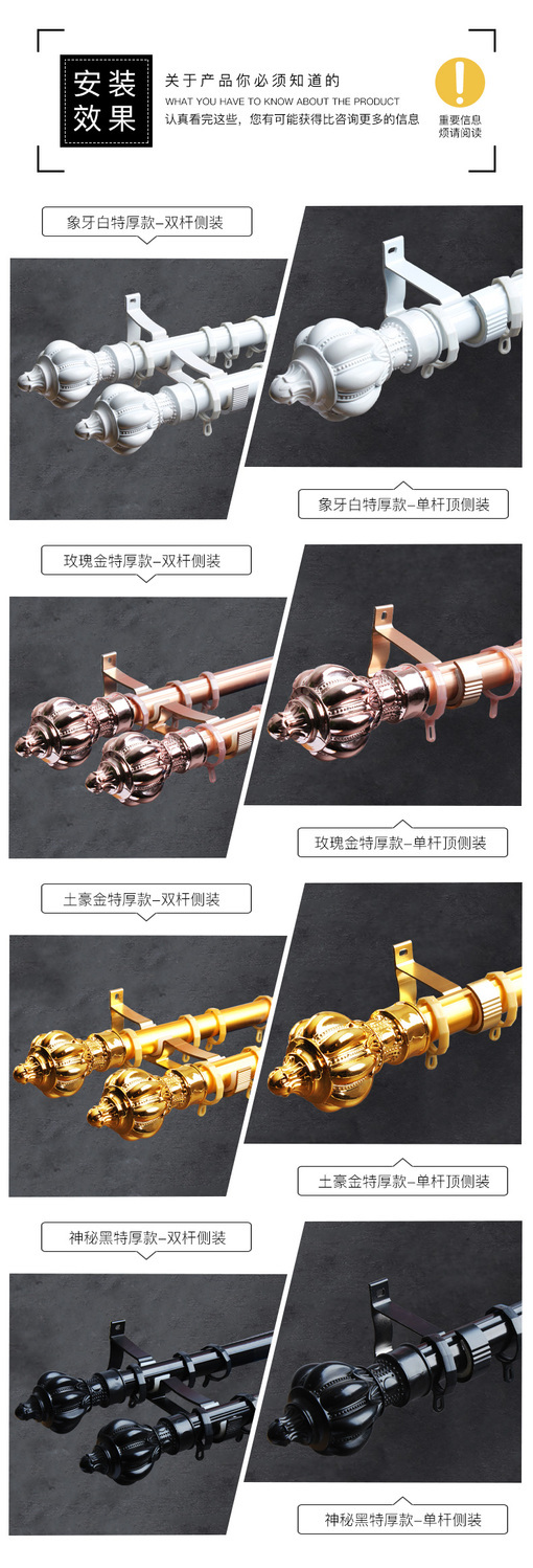 格诣 窗帘杆罗马杆加厚铝合金窗帘杆子单杆双杆静音轨道送配件
