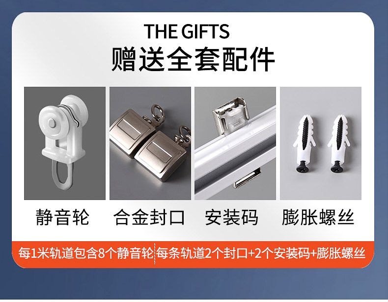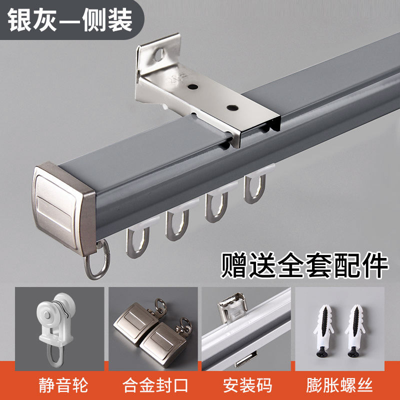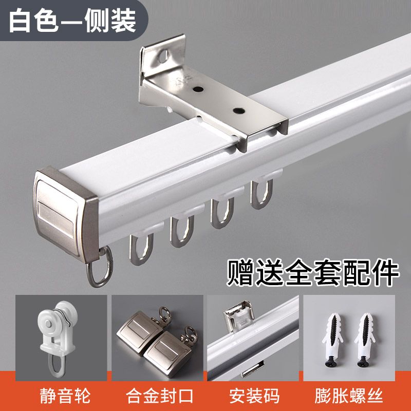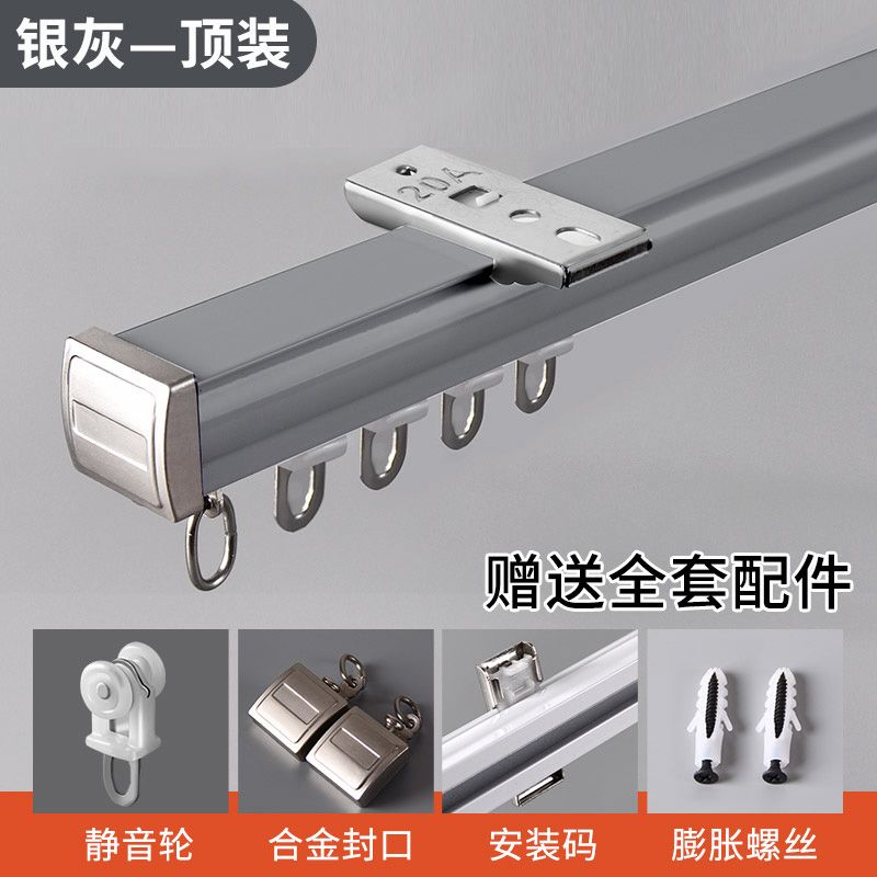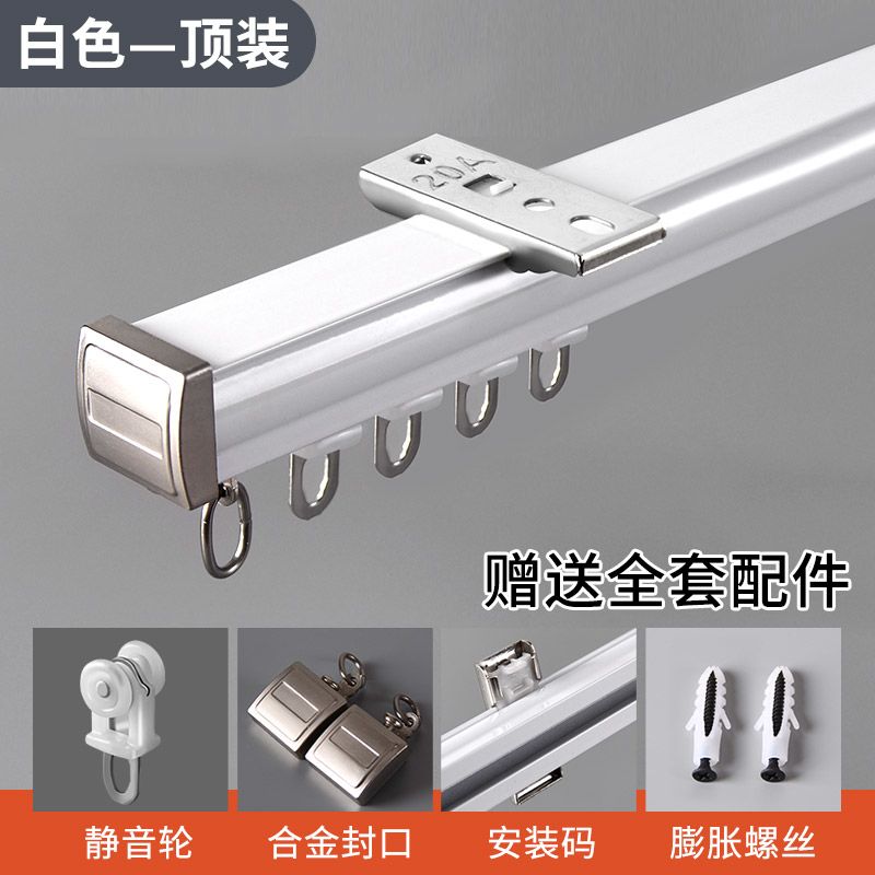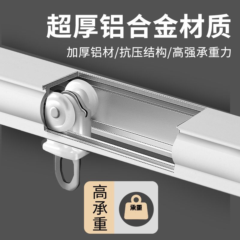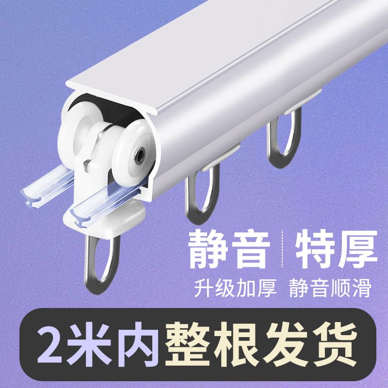 加厚铝合金窗帘轨道直轨道全套静音双轨单轨道滑轨顶装侧装窗帘杆