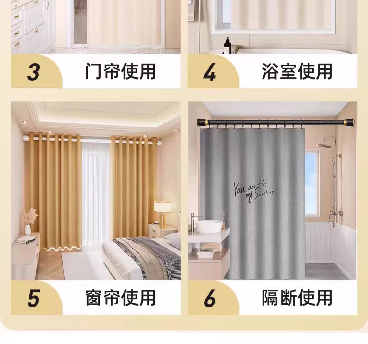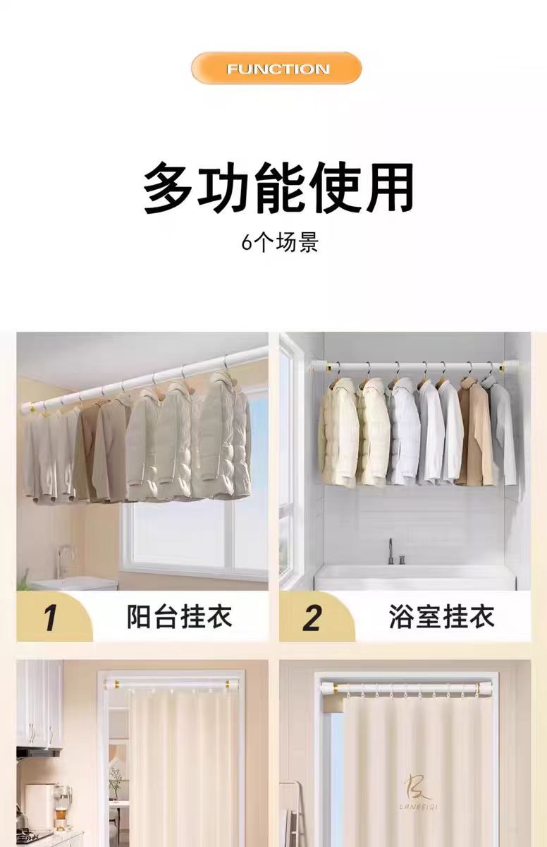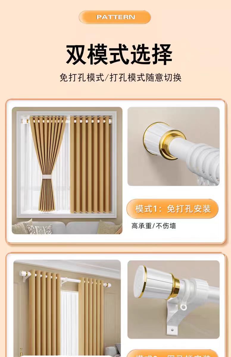 杆窗帘杆免打孔安装杆子窗帘支架升缩罗马杆晾衣杆免钉浴帘杆