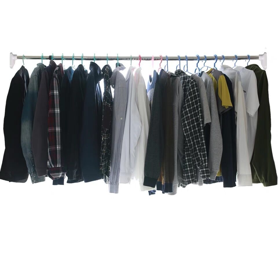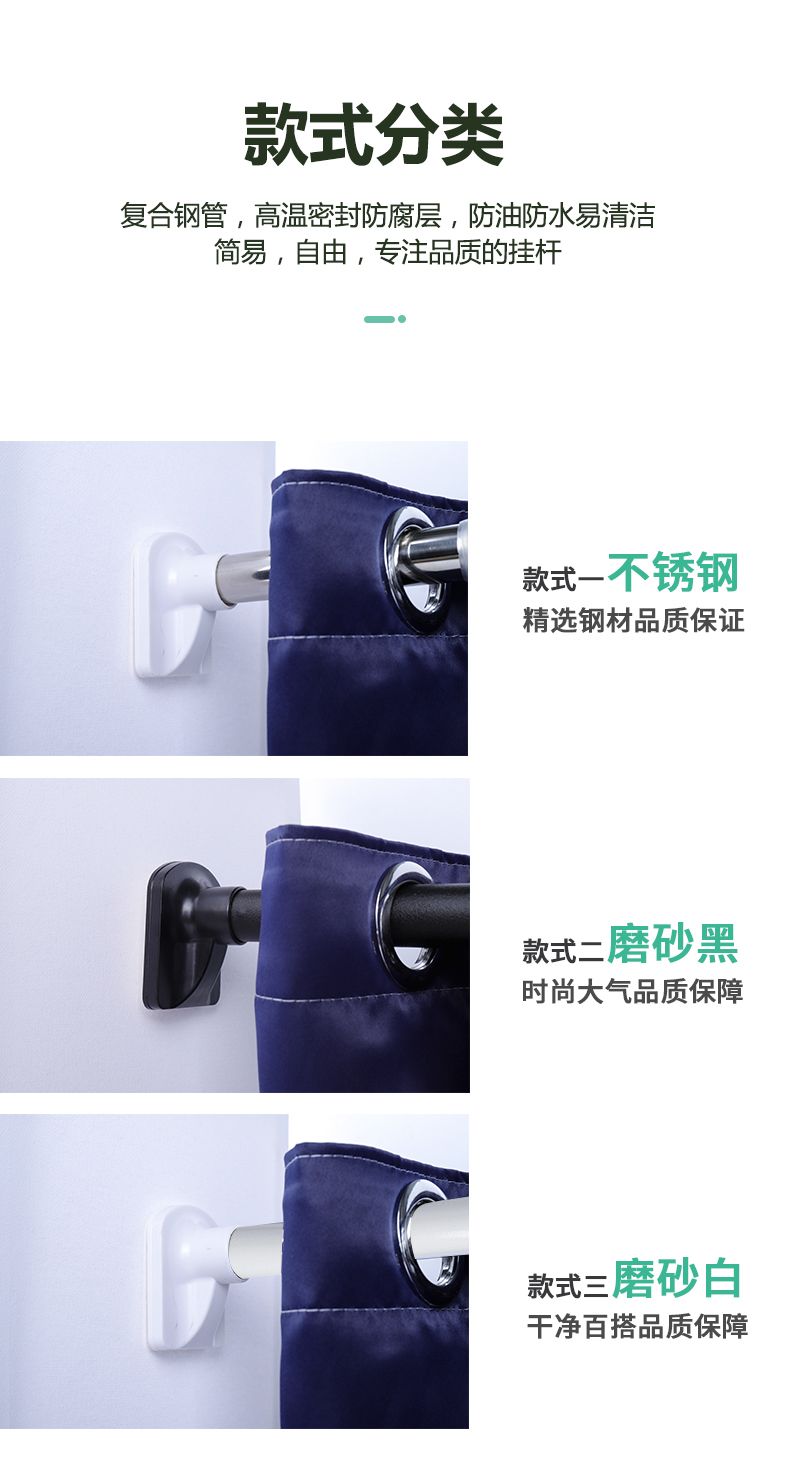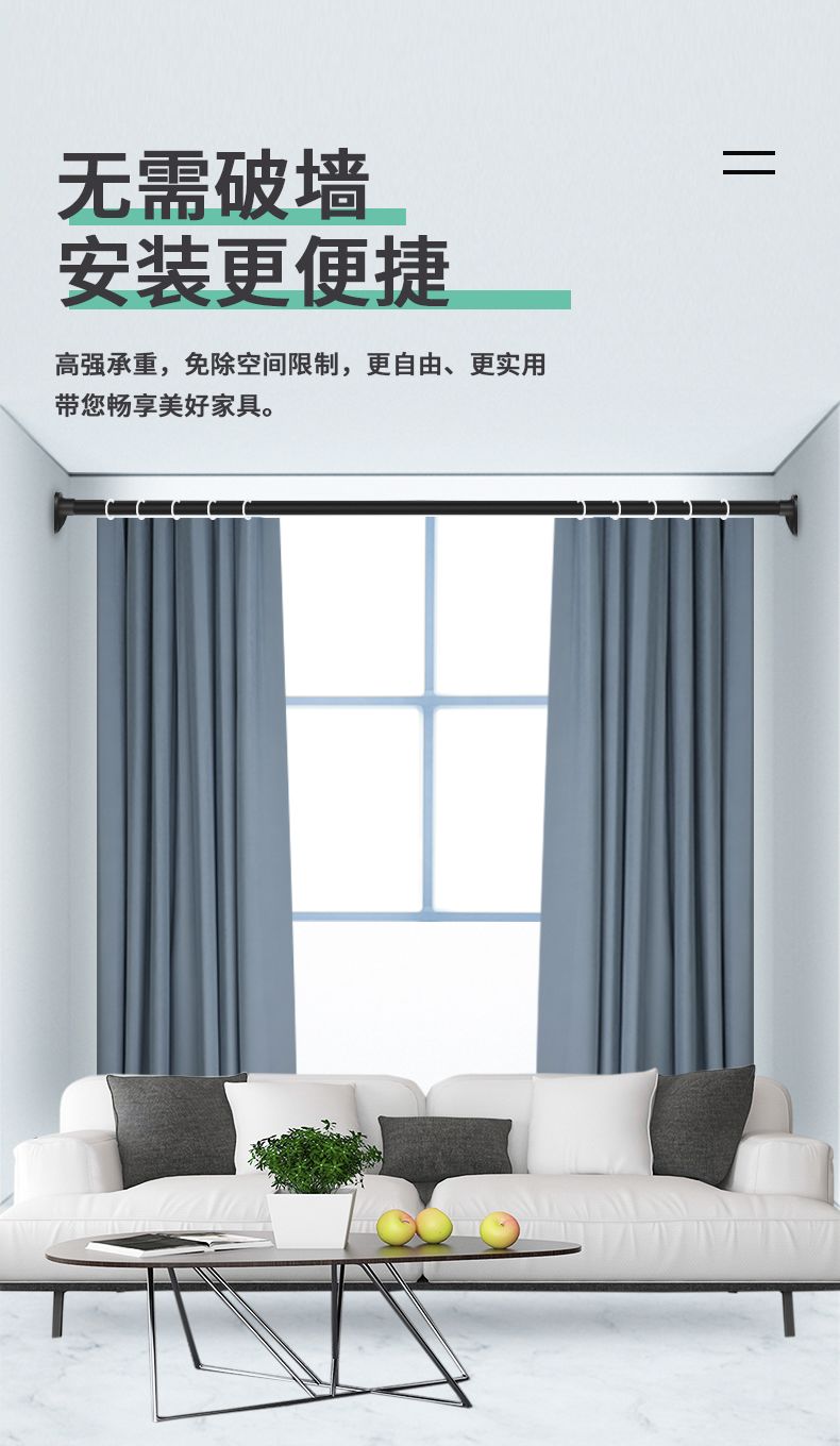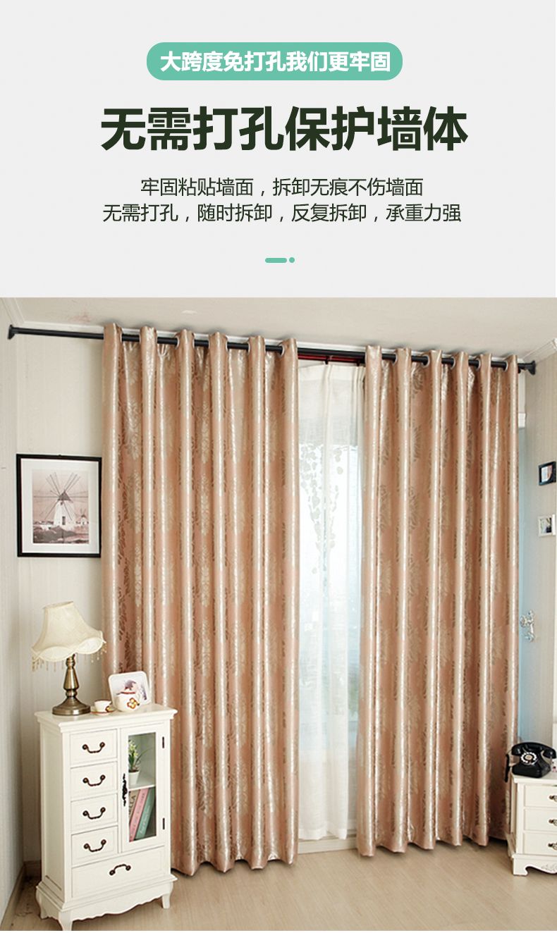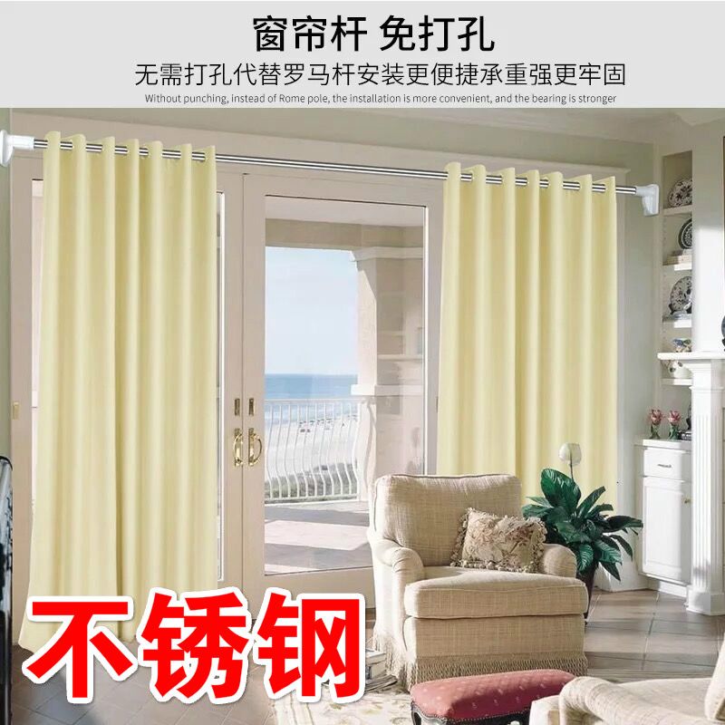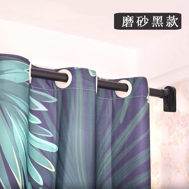 黑色不锈钢窗帘杆免打孔杆卧室加厚罗马杆单杆挂钩式晾衣杆