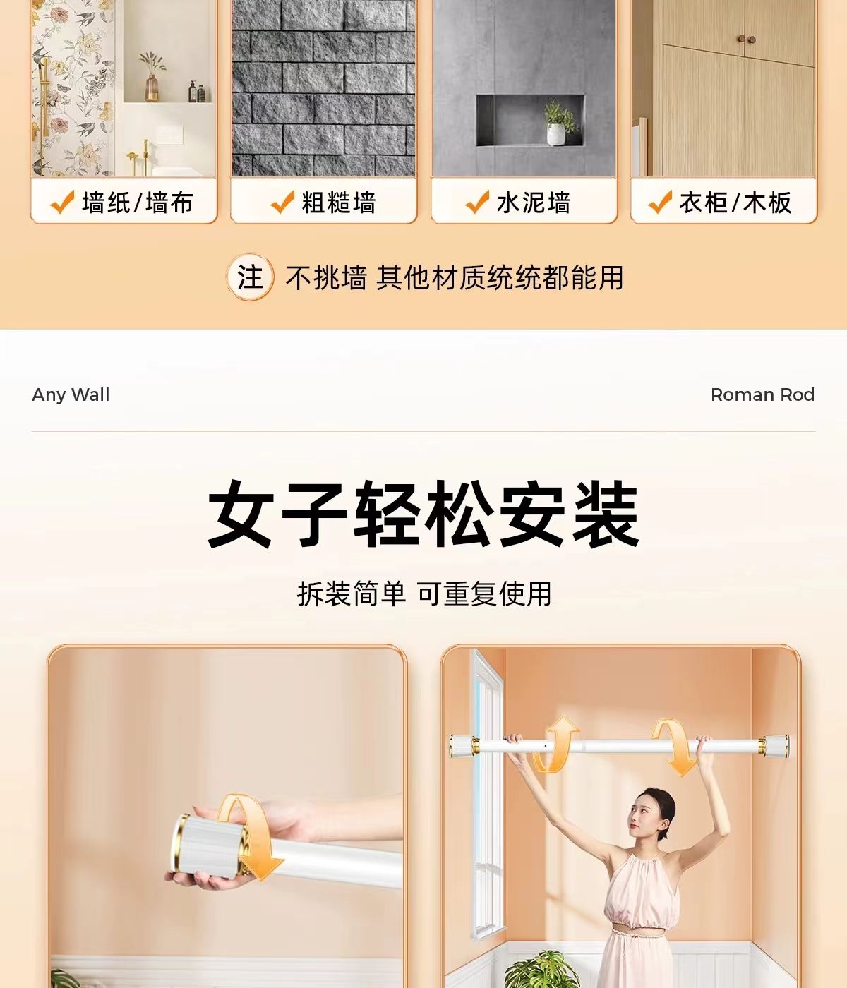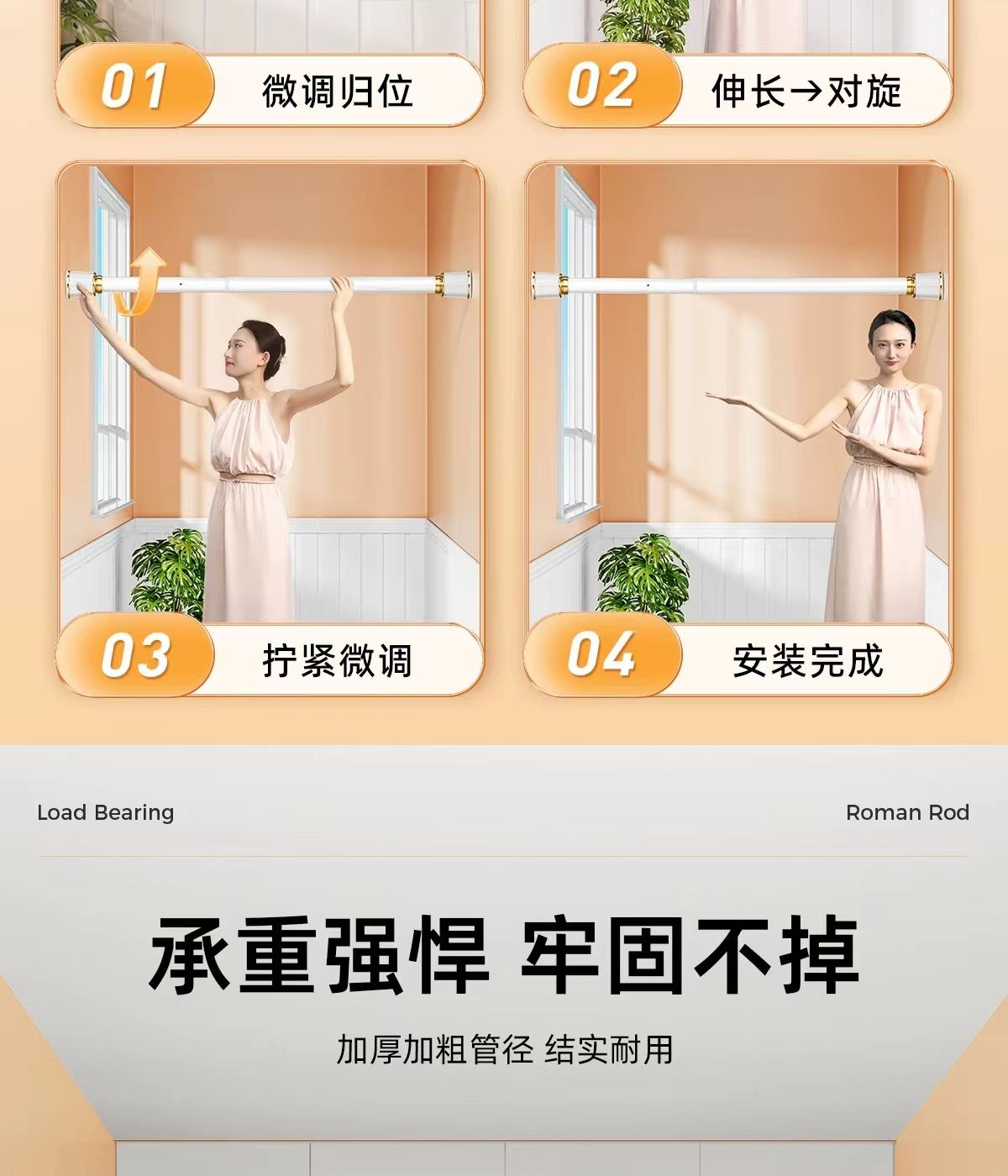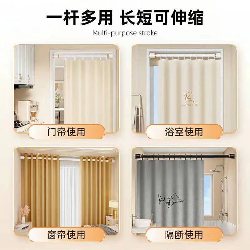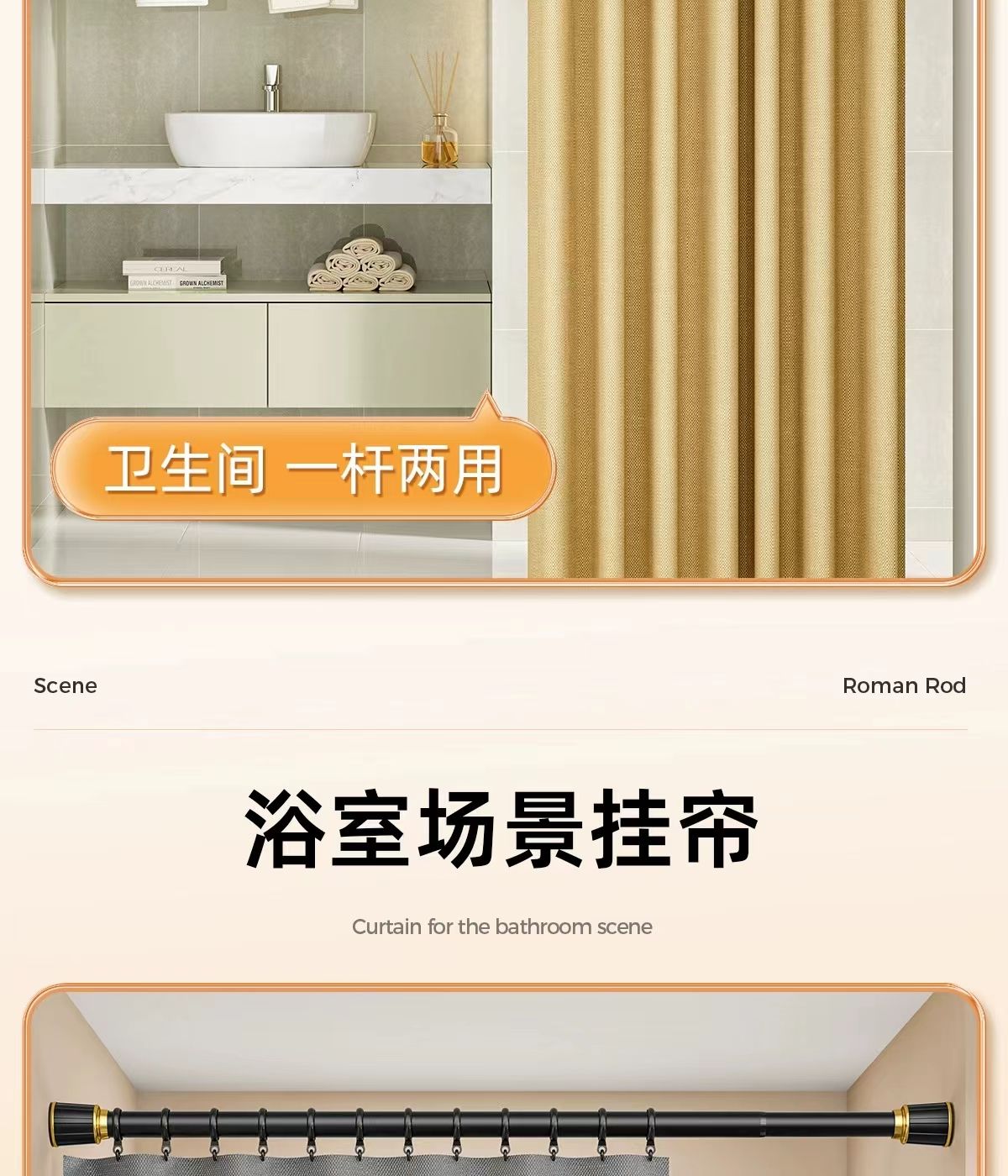 免打孔窗帘杆安装卧室卫生间阳台撑杆晾衣杆单双杆罗马浴帘杆