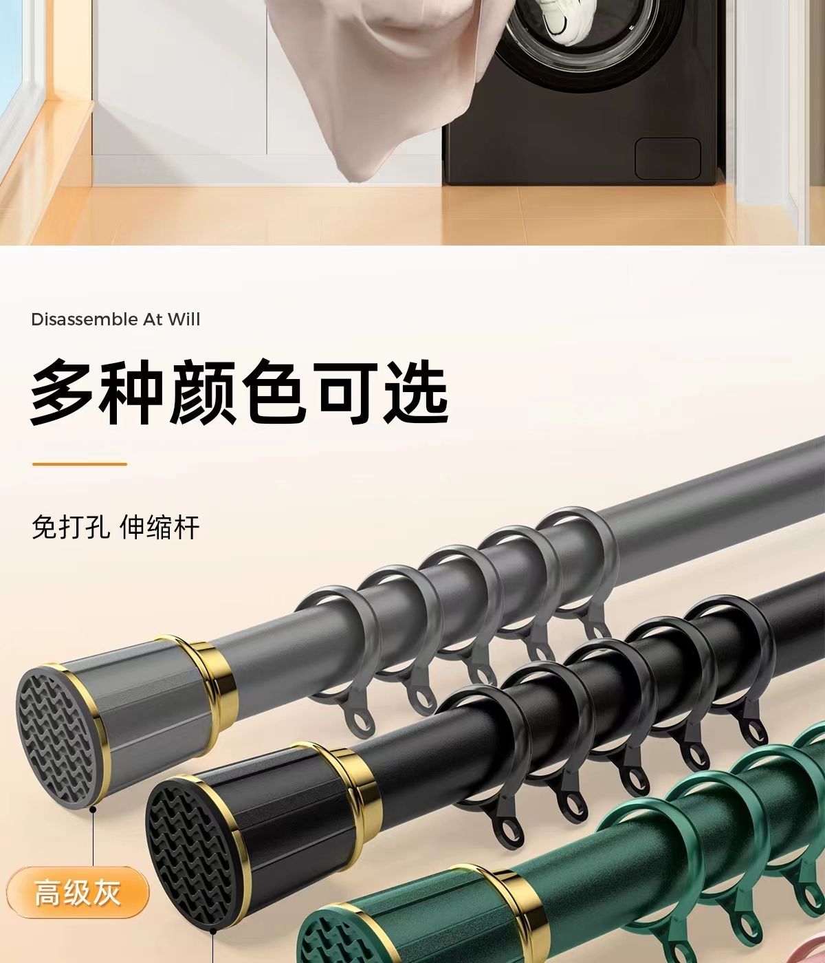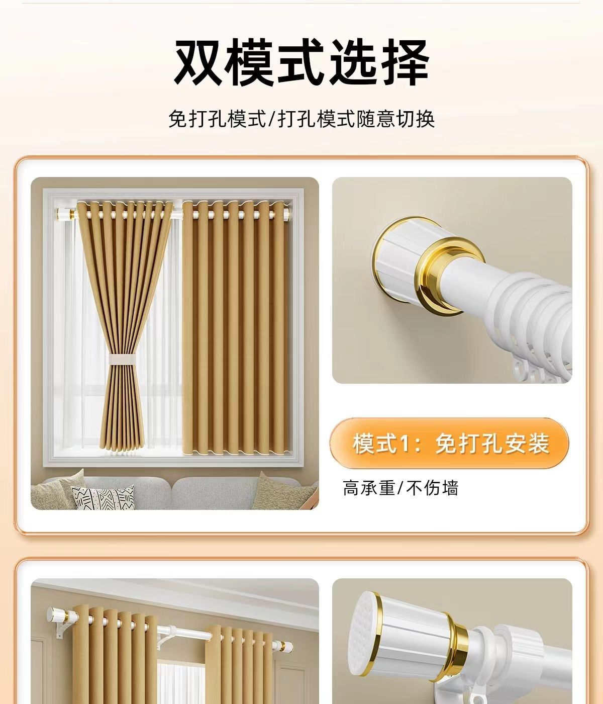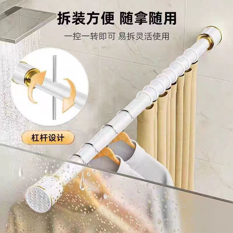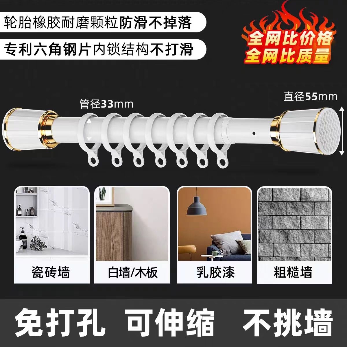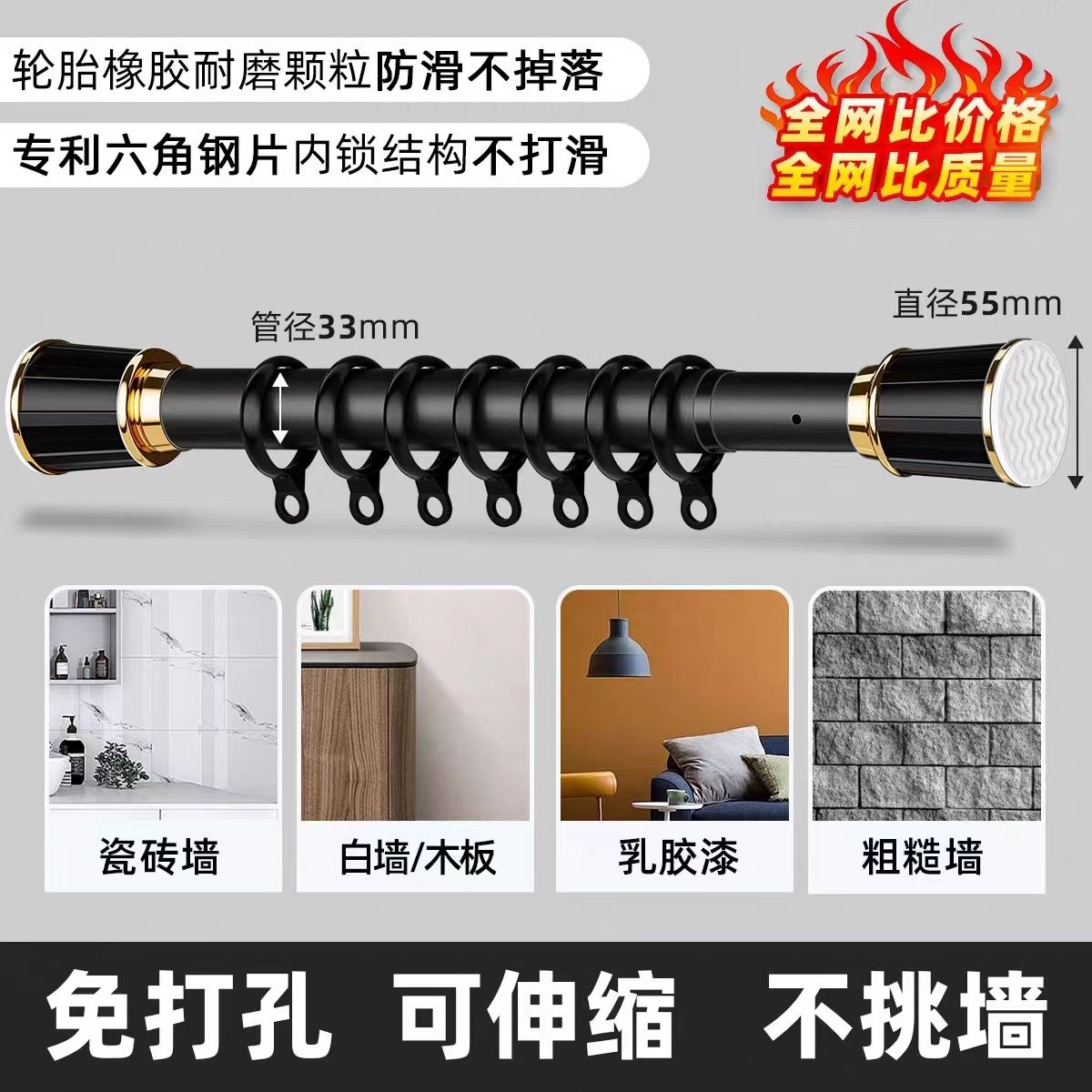 免打孔窗帘杆安装卧室卫生间阳台撑杆晾衣杆单双杆罗马浴帘杆
