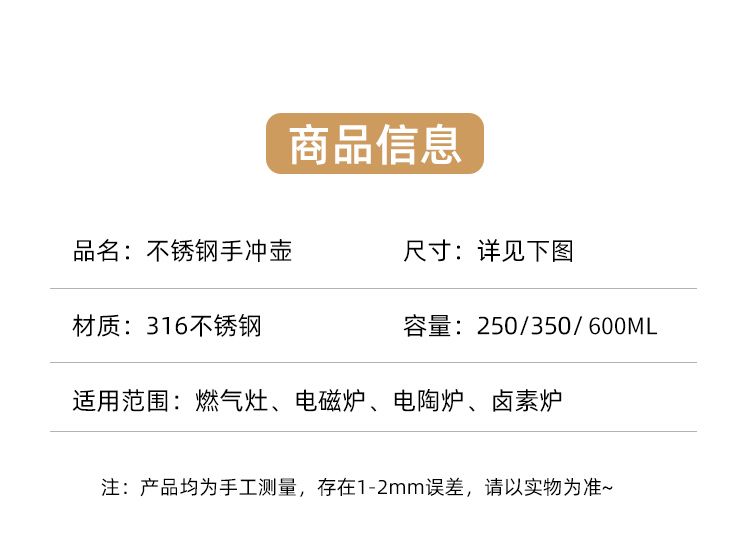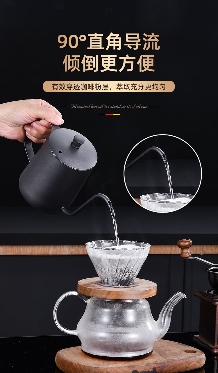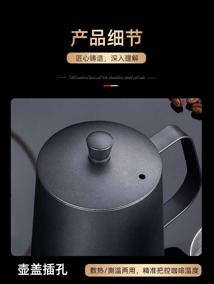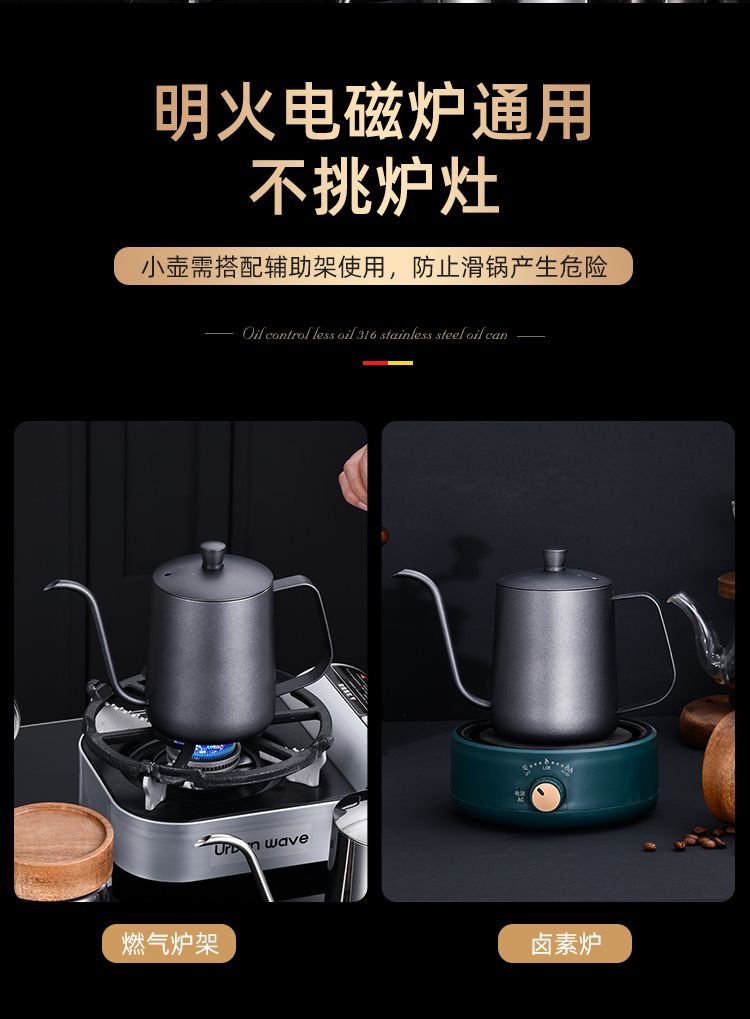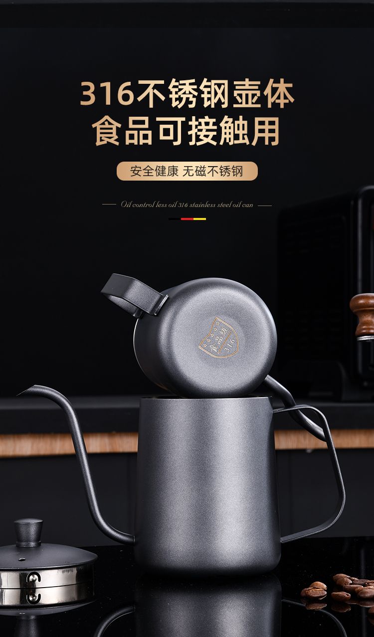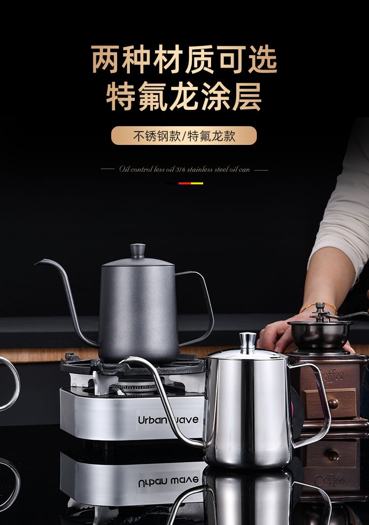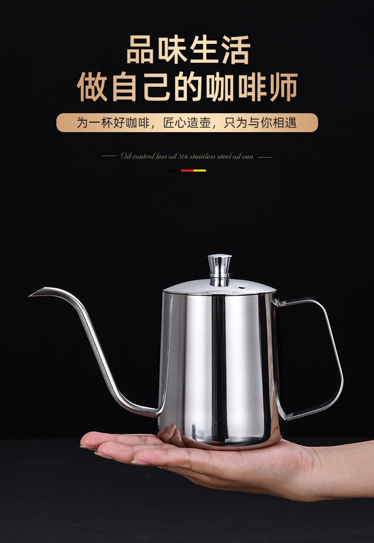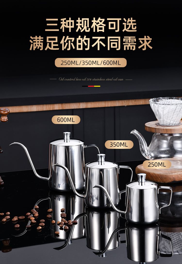 316不锈钢手冲咖啡壶泡茶壶带盖细口壶家用咖啡器具挂耳长嘴水壶