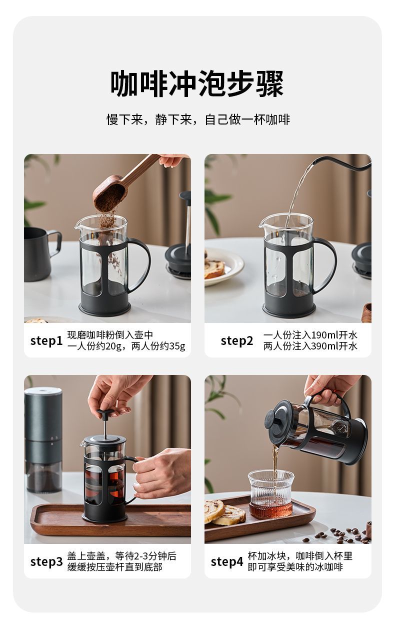 手动式浓缩萃取壶家用高硼硅玻璃法压壶咖啡用具咖啡壶懒人泡茶壶