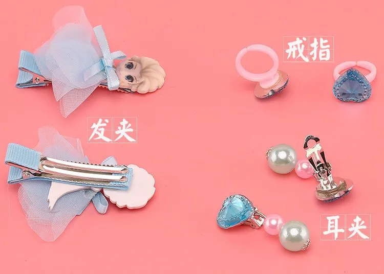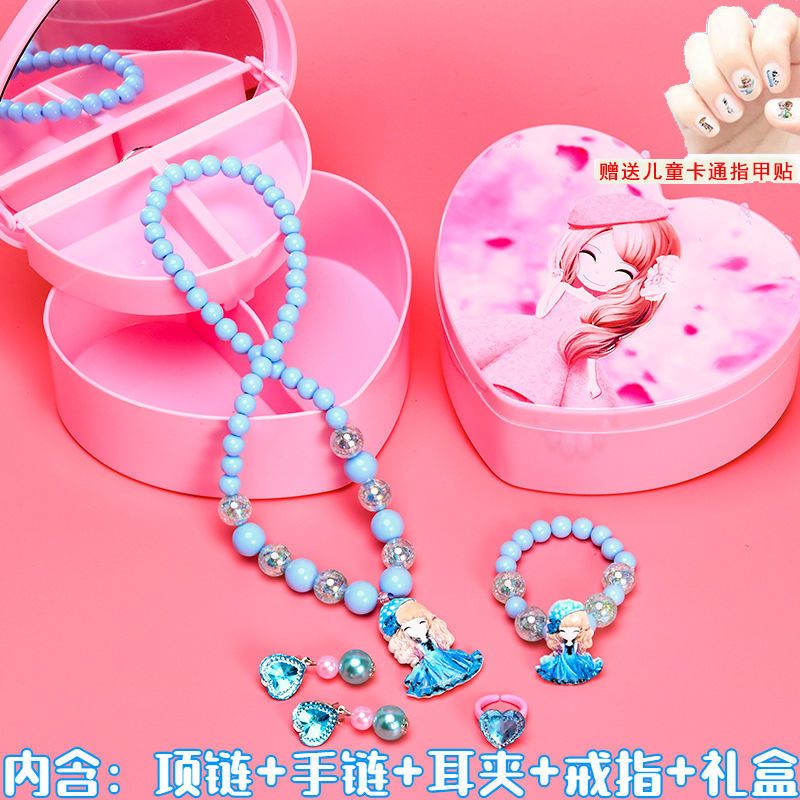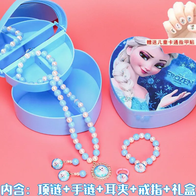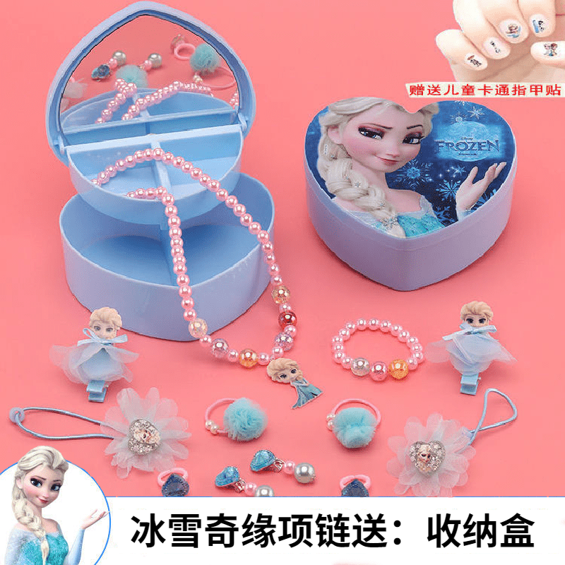 冰雪奇缘爱莎项链儿童手链耳环戒指套装小公主女童首饰礼物饰品盒