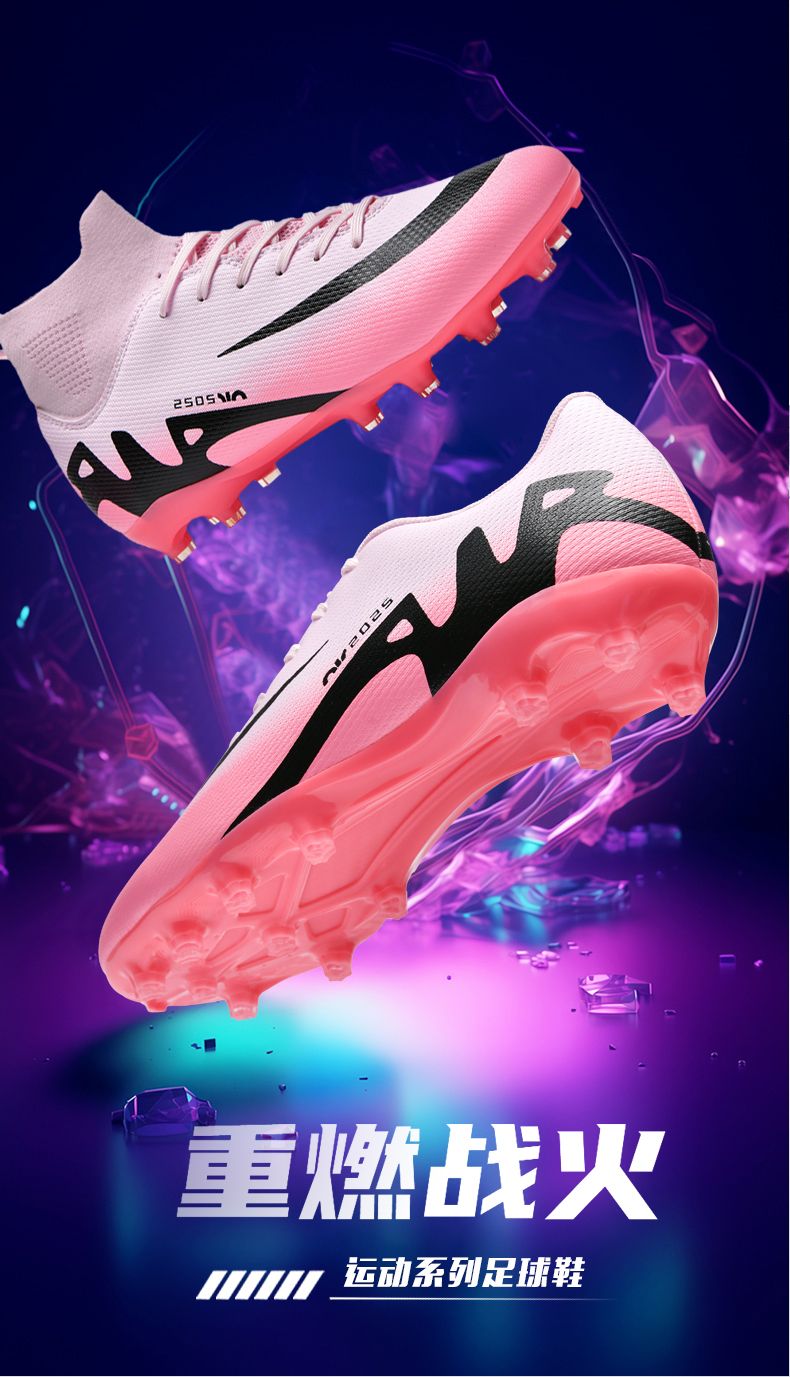 新款成人足球鞋跨境C罗男女青少年儿童学生长钉AG碎钉TF训练鞋