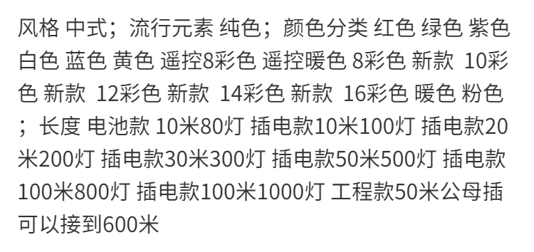 | plug-in type 100 m 1000 lamp(插电款100米1000灯) | USD $11.75 | 999999 piece available |