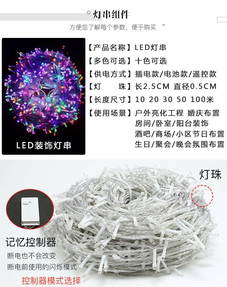 led过新年彩灯七彩灯串房间室内结婚节日闪灯户外防水店铺装饰灯