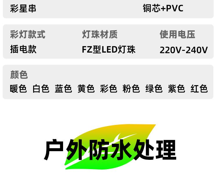 | [high quality] 100 m colorful-super bright waterproof and antifreeze(【高品质】100米炫彩-超亮防水防冻) | USD $11.59 | 999999 piece available |