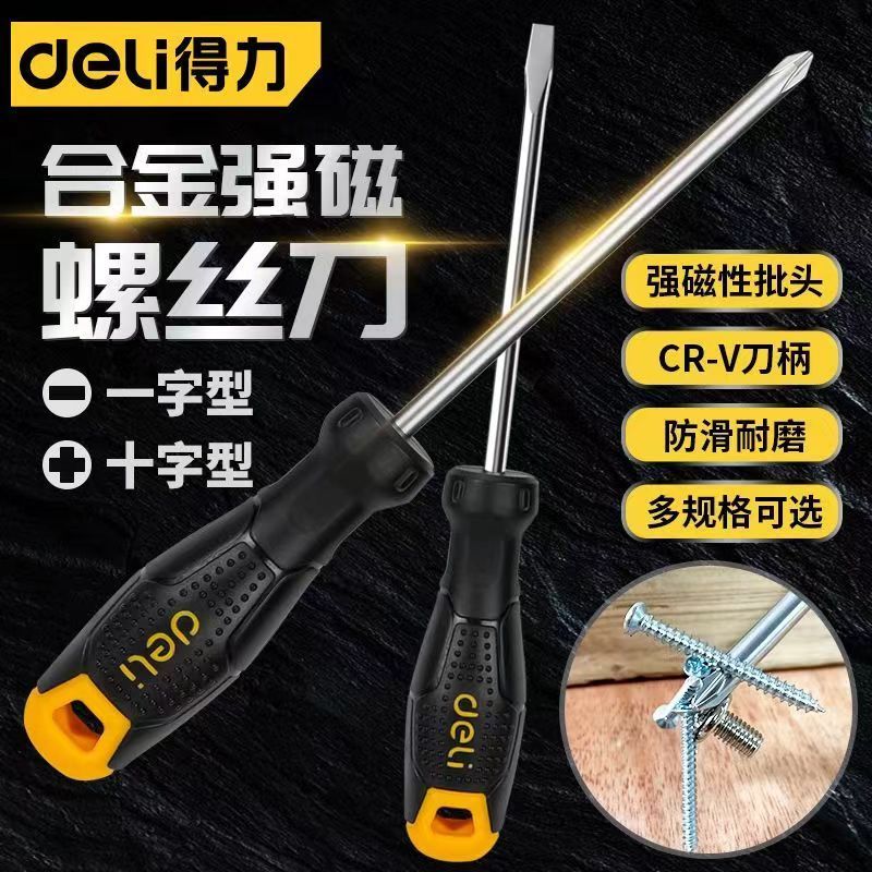 得力螺丝刀十字套装长款一字型磁性小螺丝刀梅花小型螺丝批高硬度
