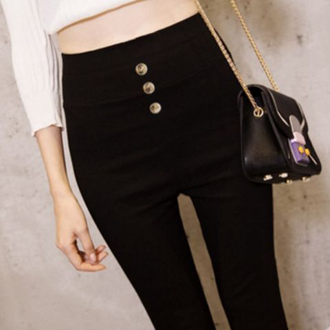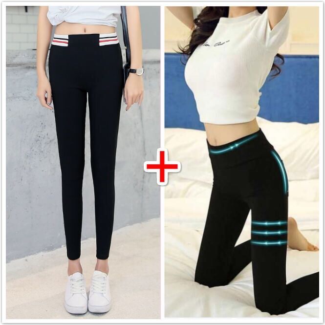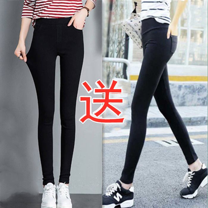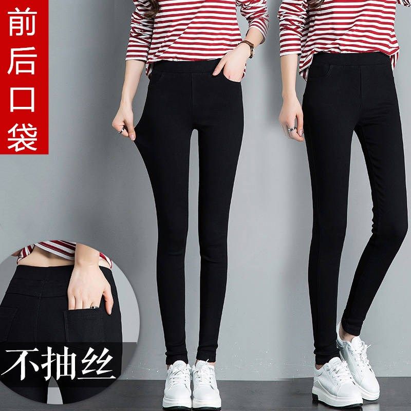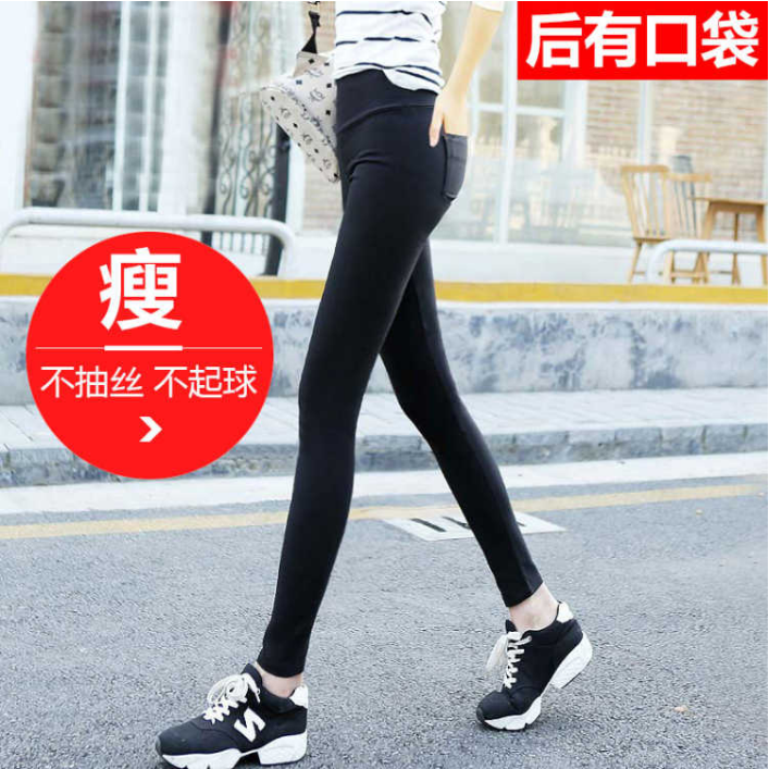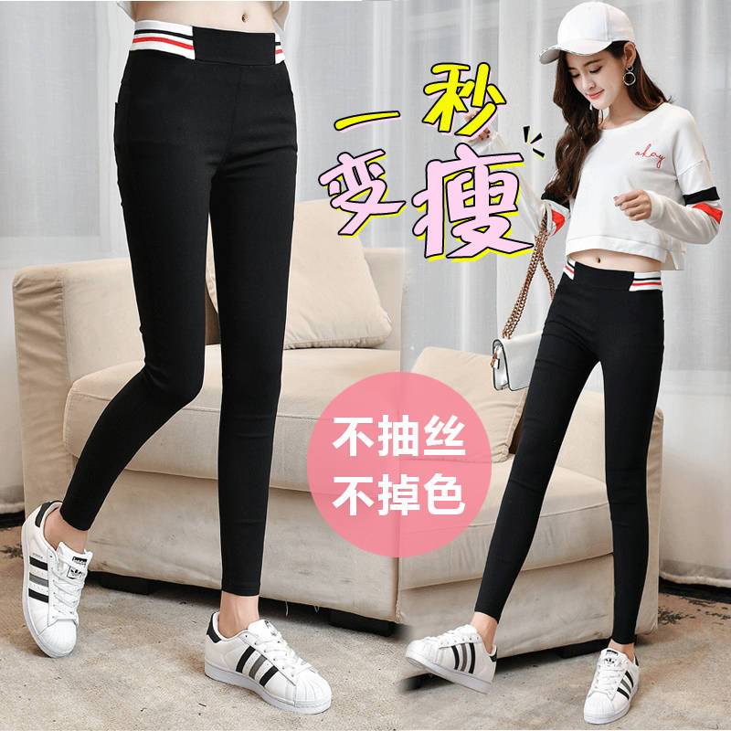 韩版薄款春夏季打底裤女显瘦外穿学生小脚高腰紧身黑色大码铅笔裤