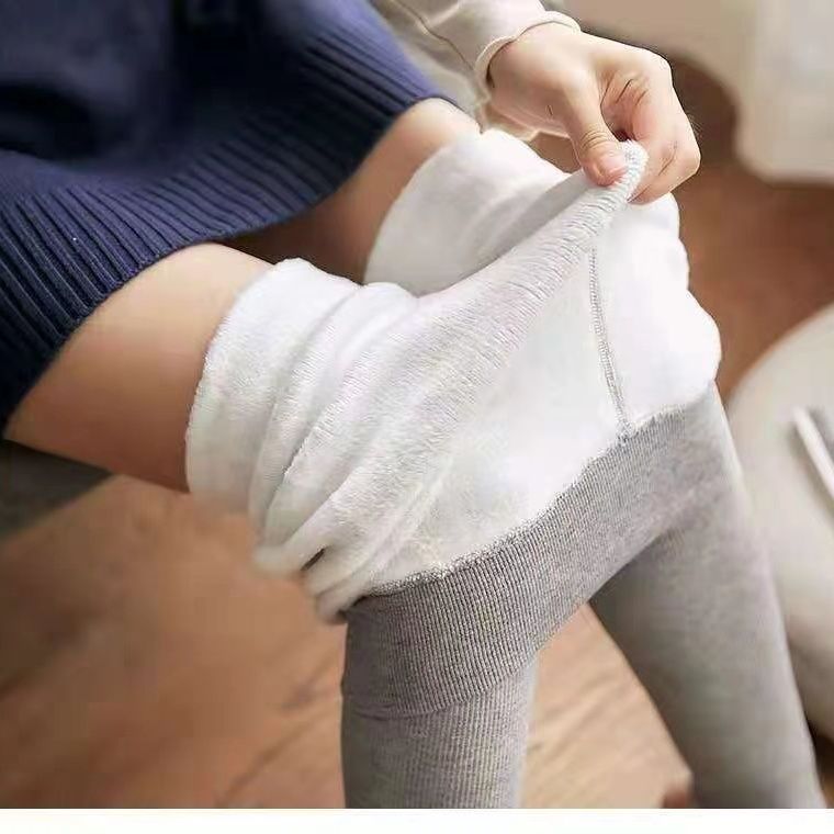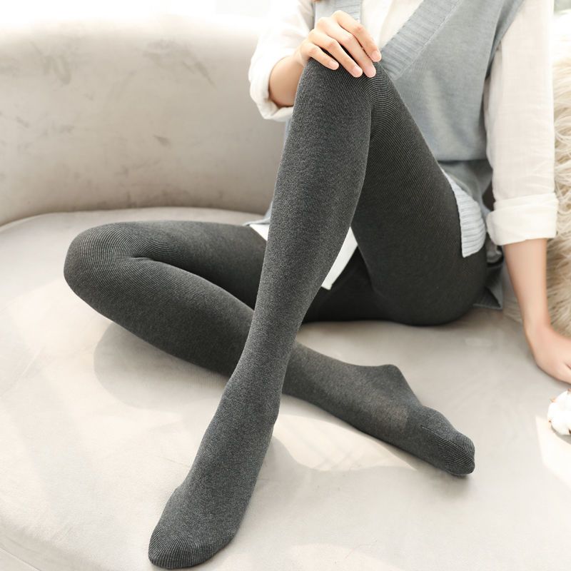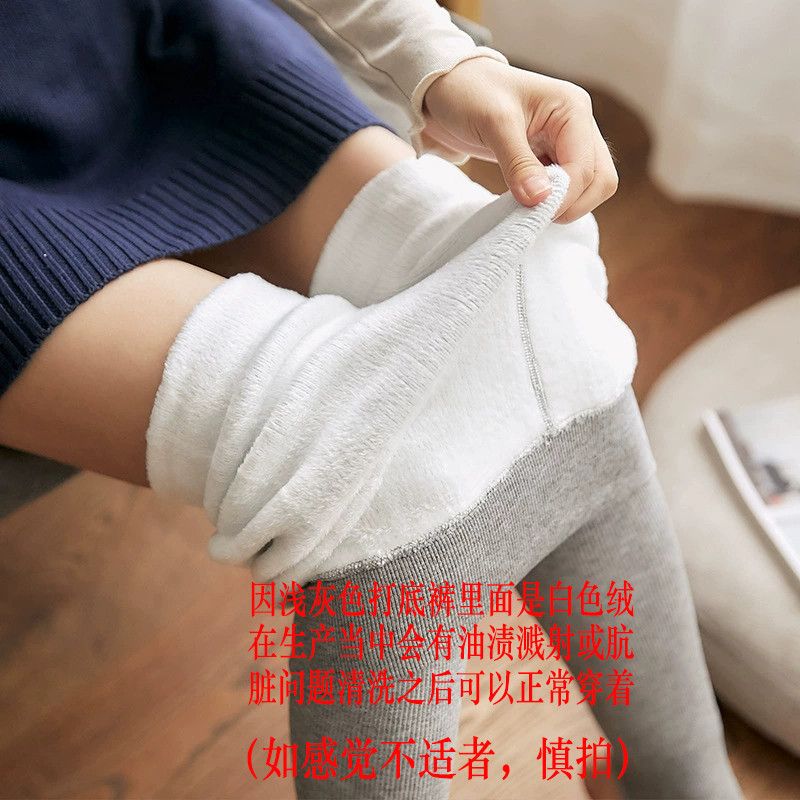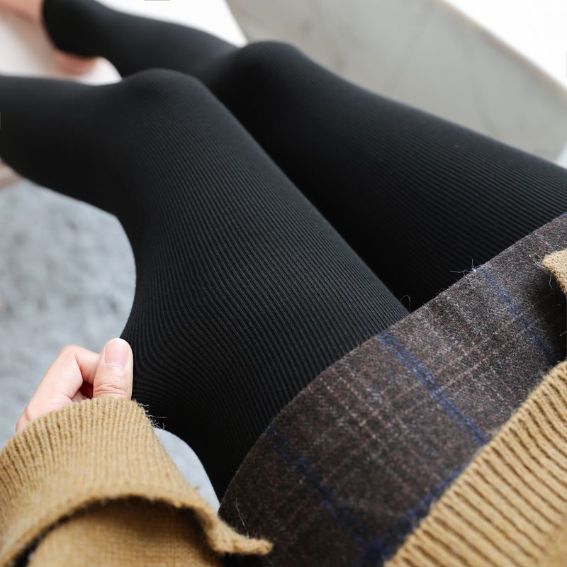 秋冬季加绒加厚打底裤女外穿显瘦保暖裤棉竖条大码高腰一体连裤袜