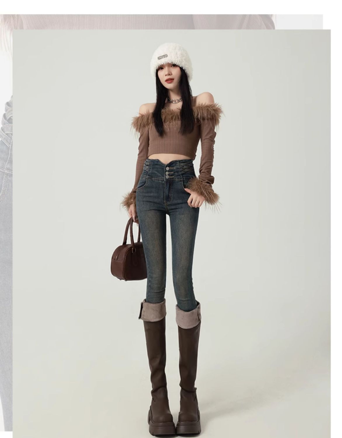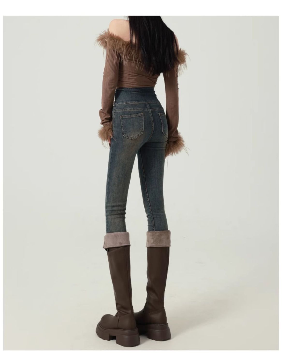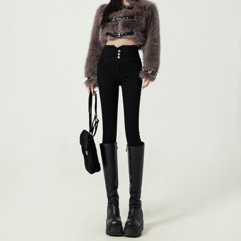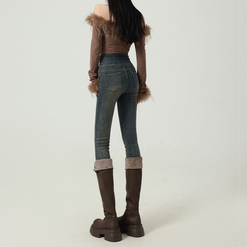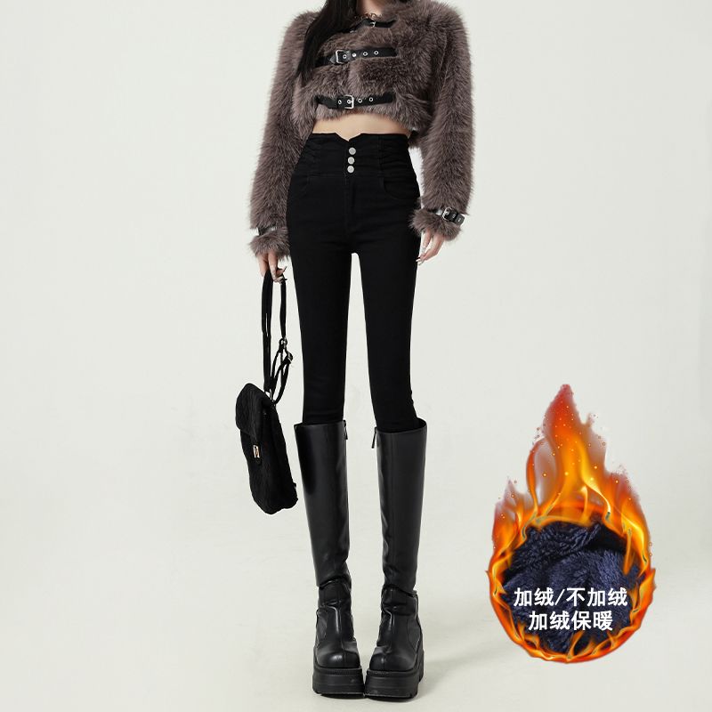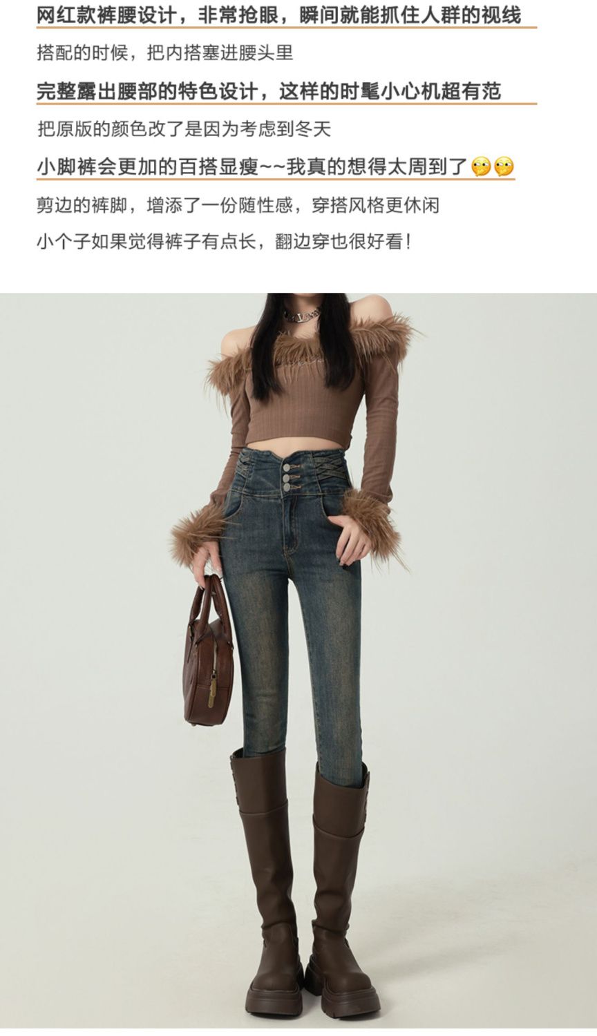 水泥灰牛仔裤女小脚裤秋冬季2024新款高腰修身紧身弹力显瘦铅笔裤