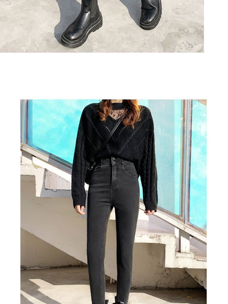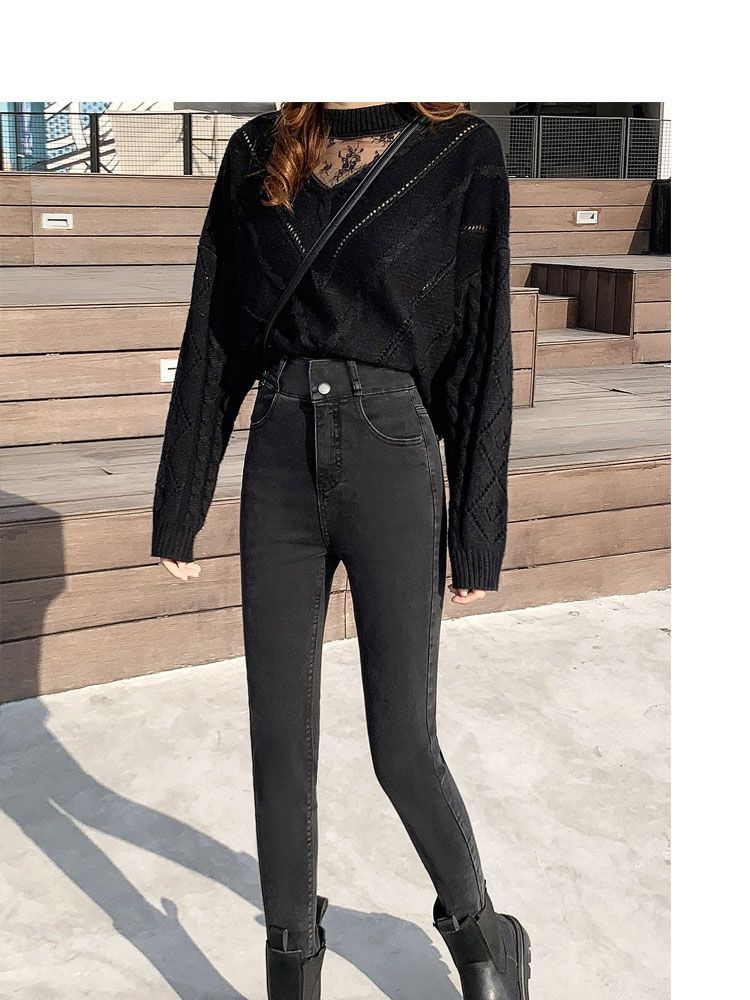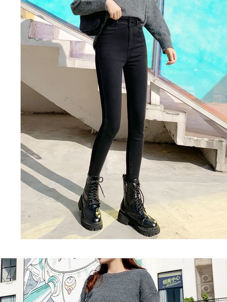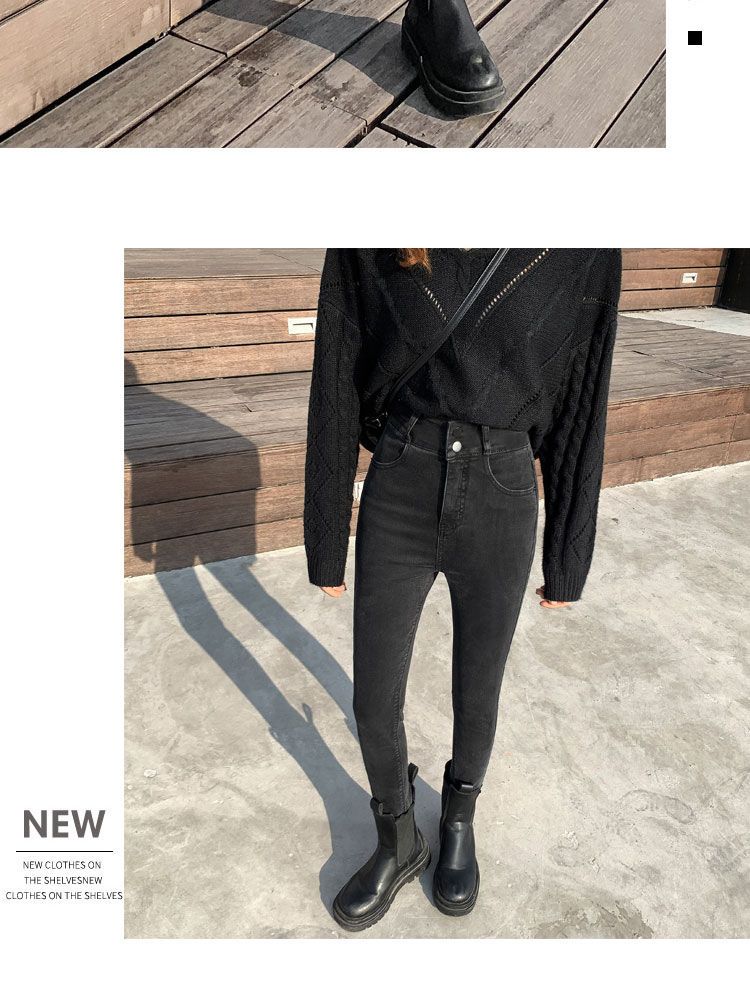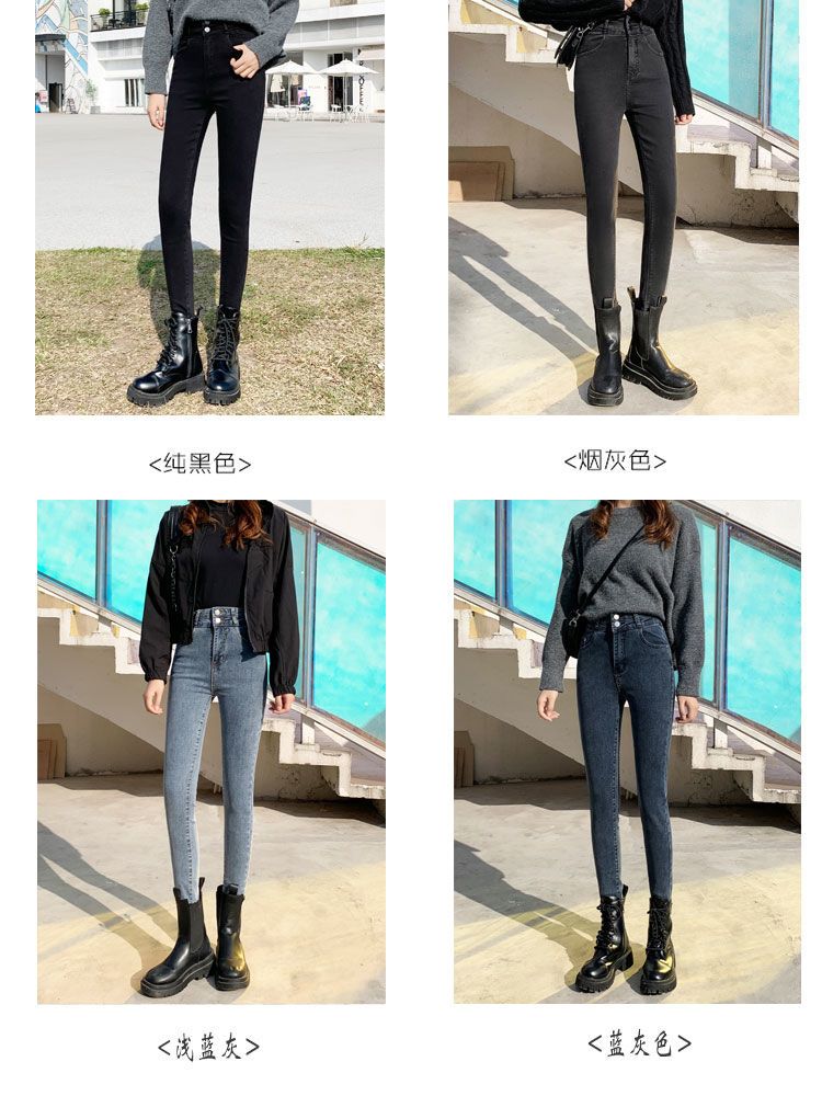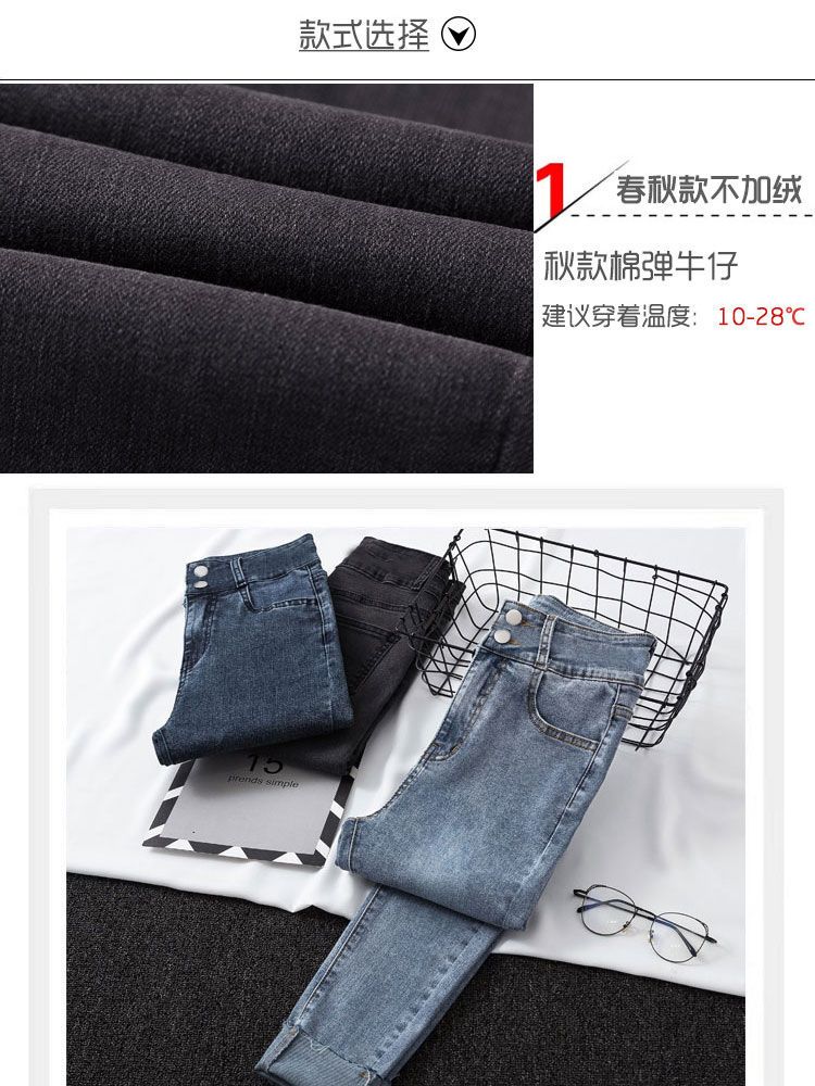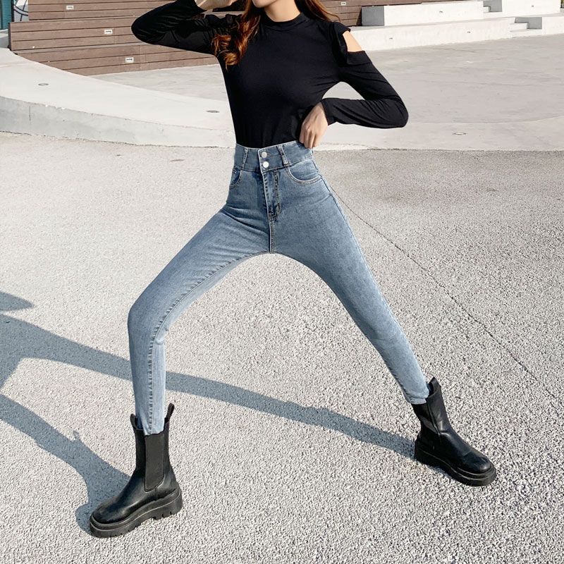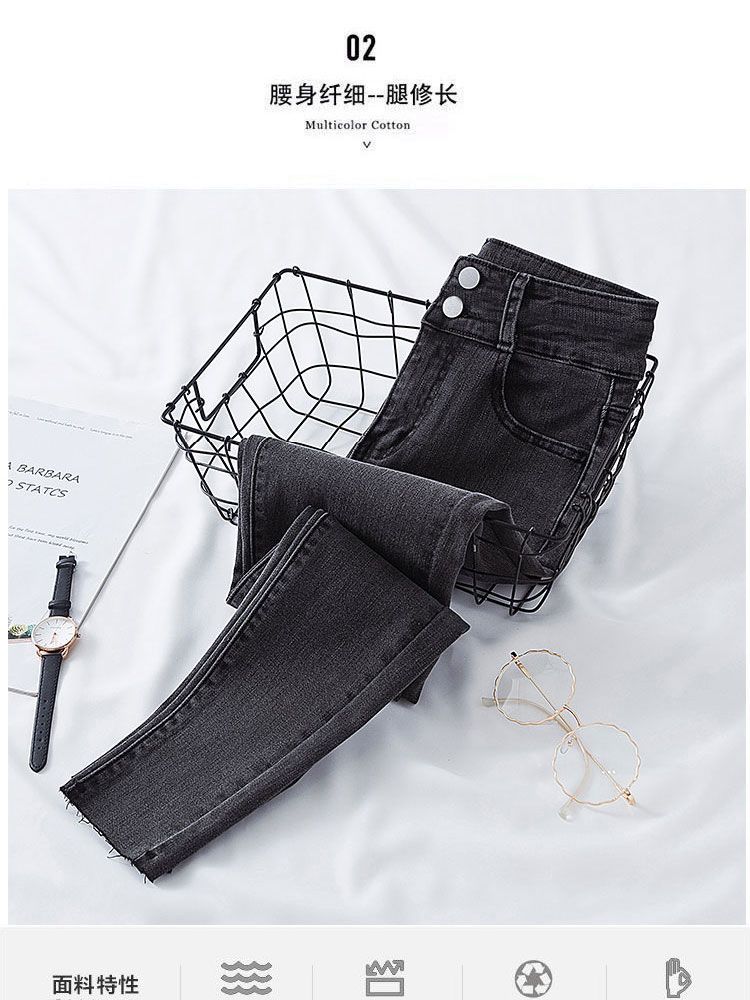 高腰双扣牛仔裤女显瘦显高2023年新款修身九分浅色紧身小脚裤子潮
