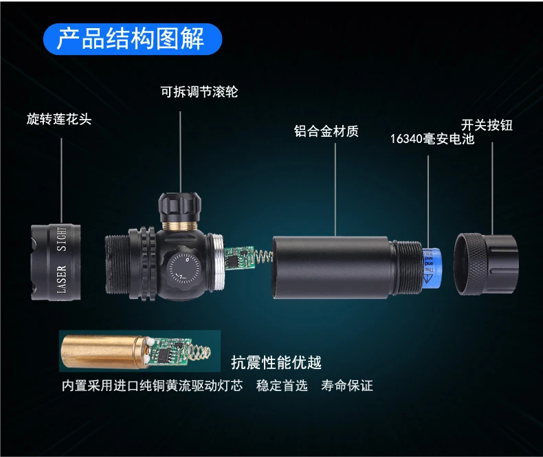 | green light 11mm guide rail version +2 batteries(绿光11mm导轨版+2电池) | USD $10.63 | 999999 piece available |