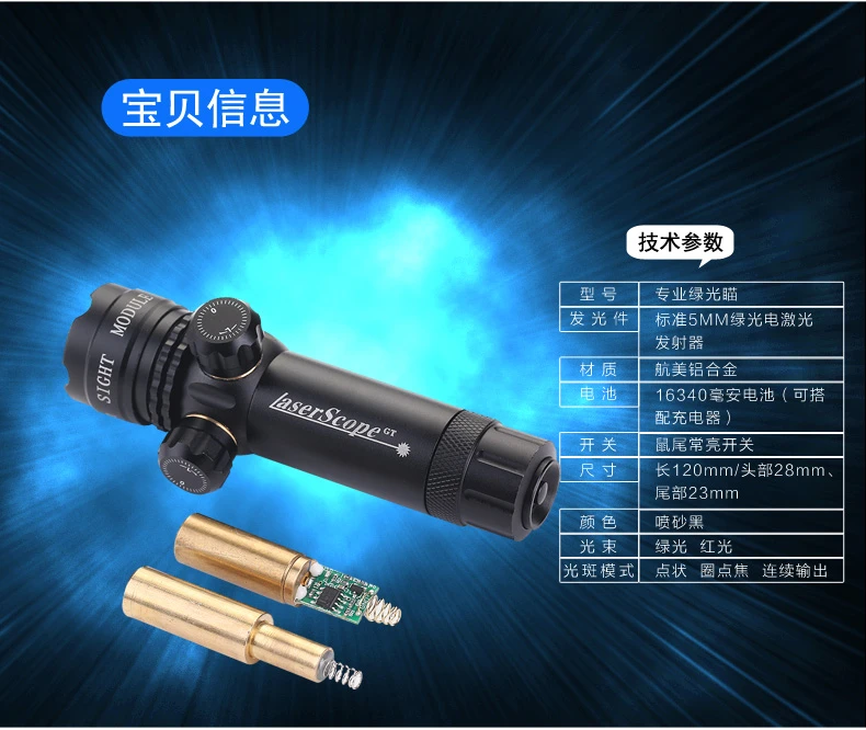 | long green light 20mm guide rail version +2 batteries(长款绿光20mm导轨版+2电池) | USD $10.82 | 999999 piece available |